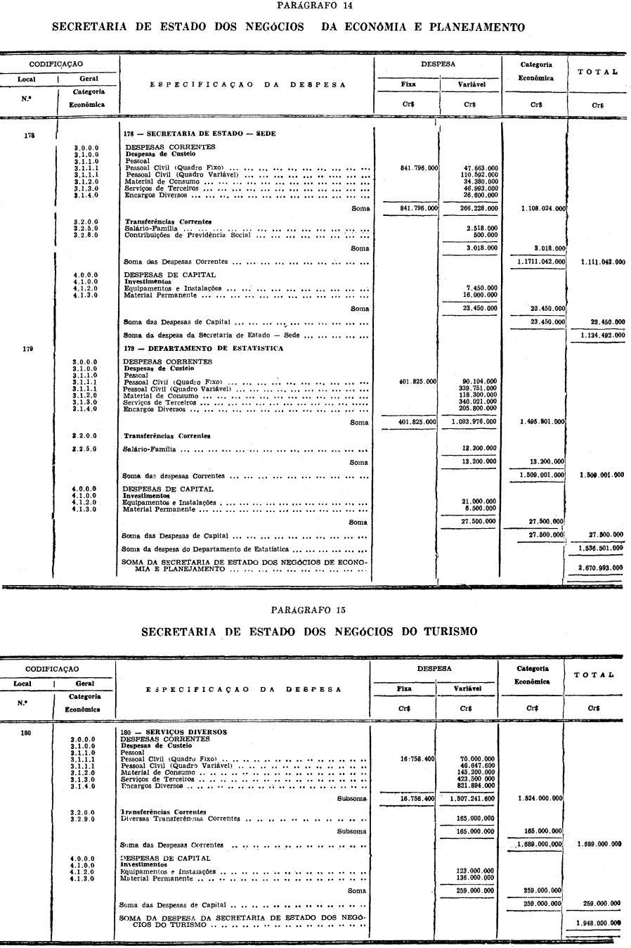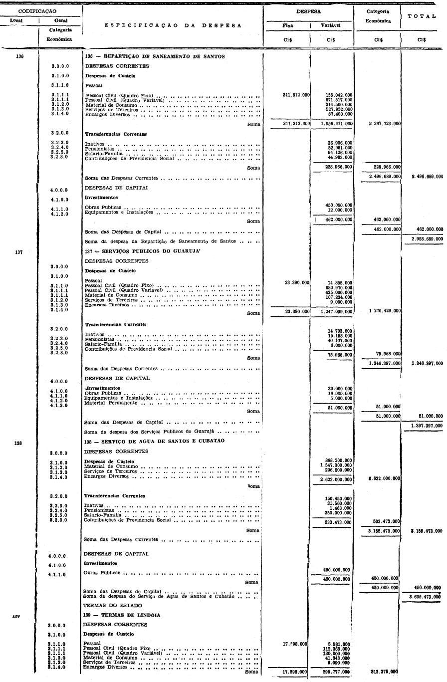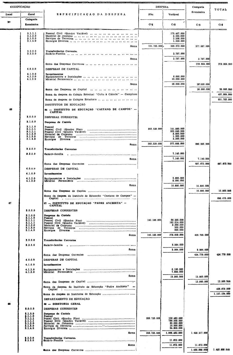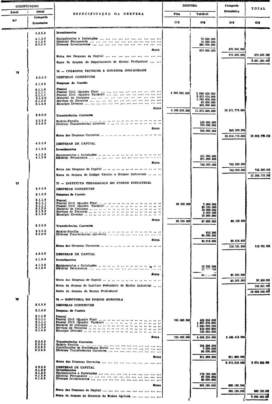 exercício financeiro de 1967, discriminado nos Quadros integrantes