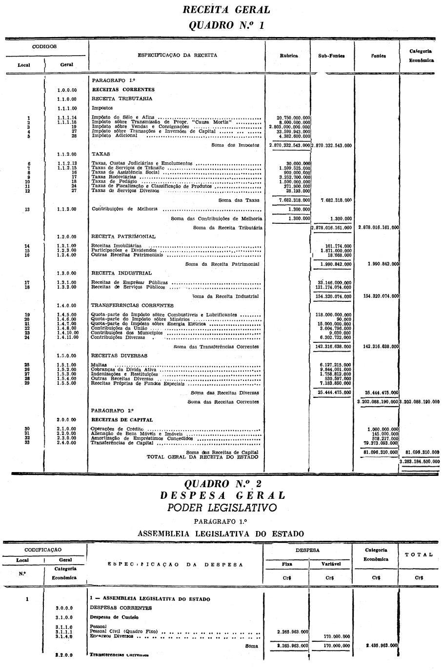 Artigo 1.º - O Orçamento Geral do Estado, para o