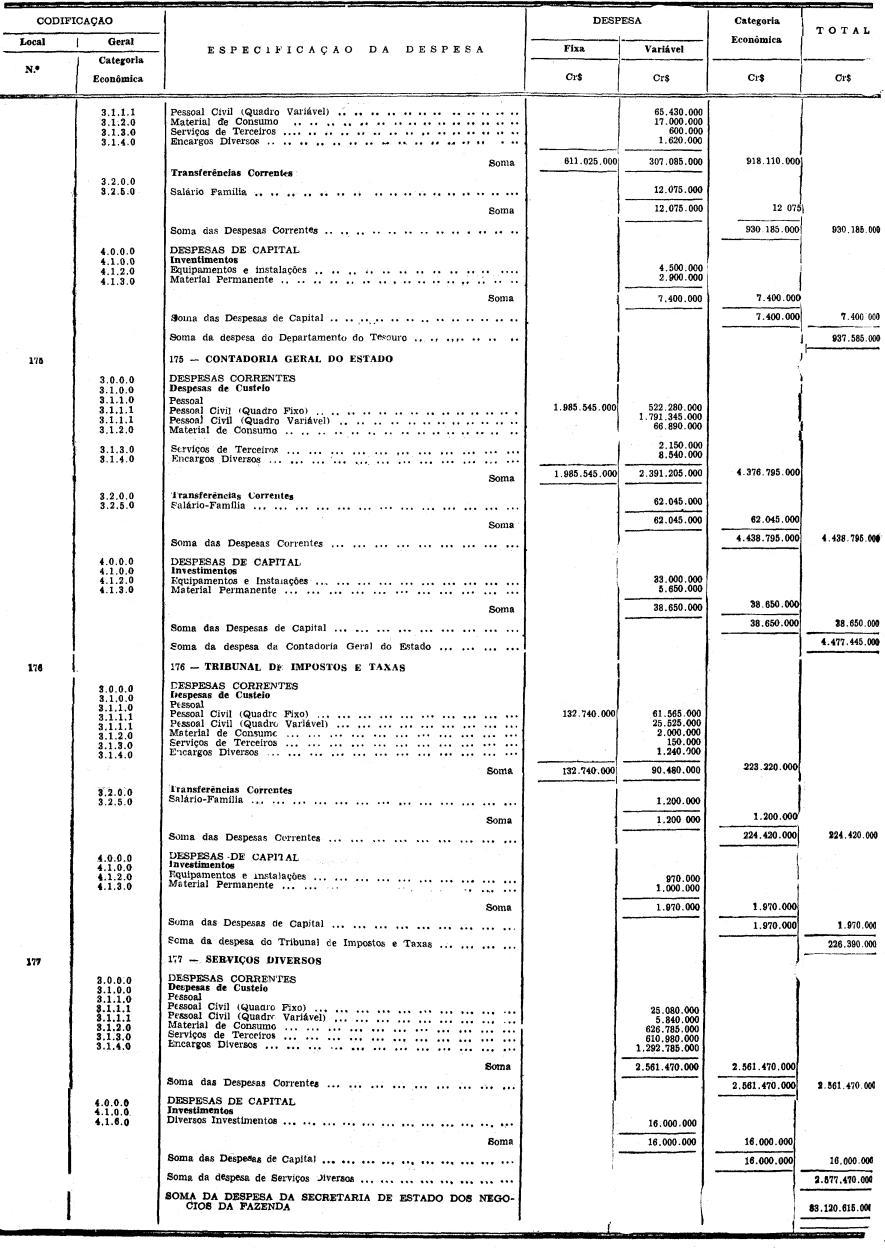 Orça a Receita e fixa a Despesa do Estado para o exercício de 1967
