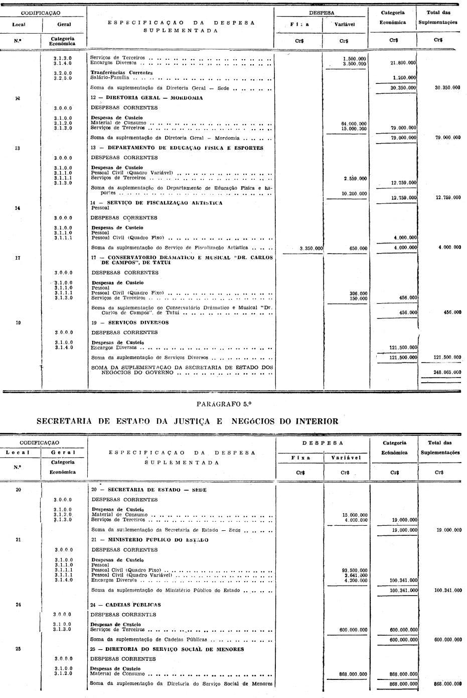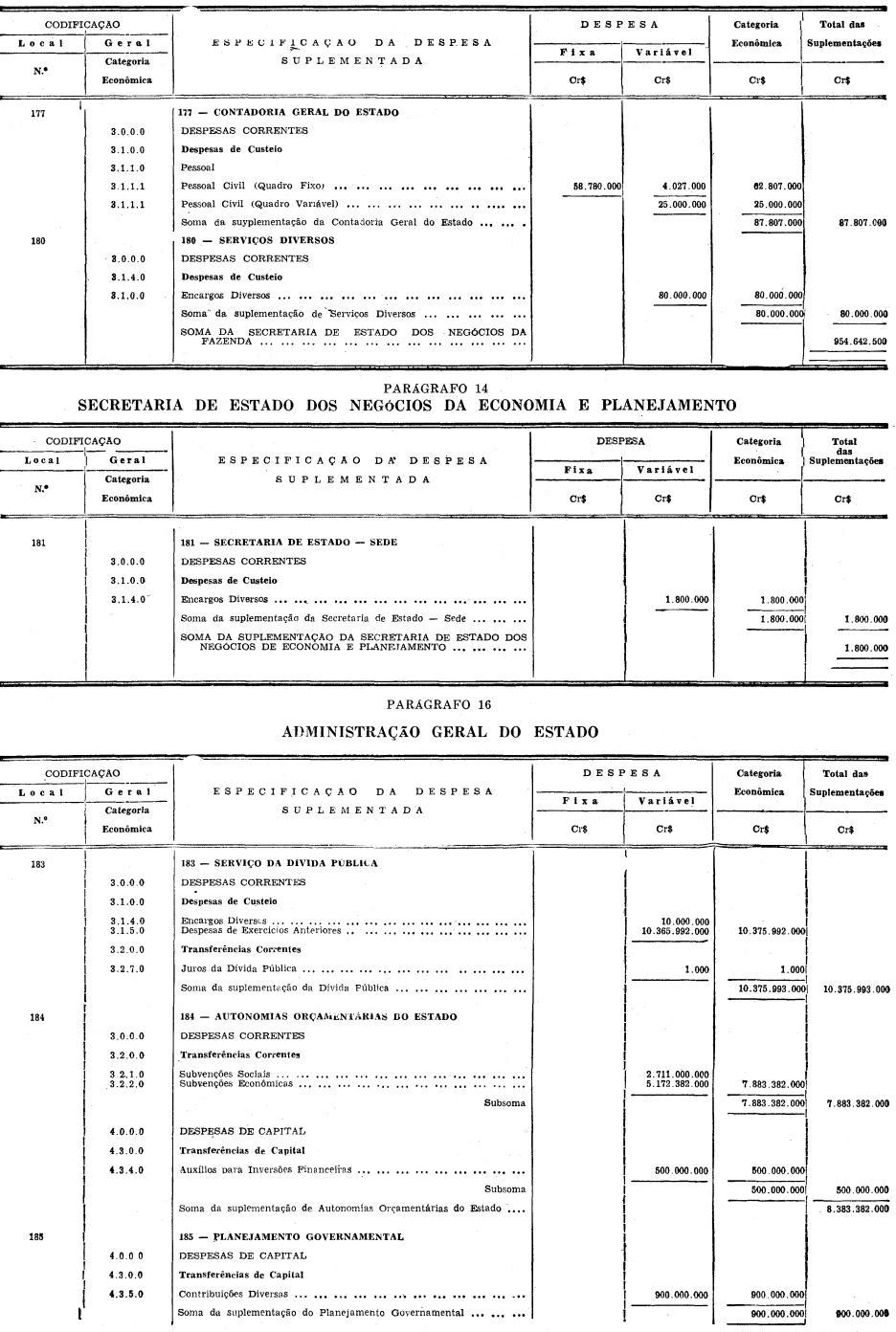 c) Cr$ 12.417.848.000 (DOZE BILHÕES, QUATROCENTOS E DEZESSETE MILHÕES, OITOCENTOS E QUARENTA E OITO MIL CRUZEIROS), provenientes de parte do crédito especial aberto pelo Decreto n. 46.151, de 6 de abril de 1966 e autorizado pelo Artigo 3º, da Lei n. 9.206, de 29 de dezembro de 1965;