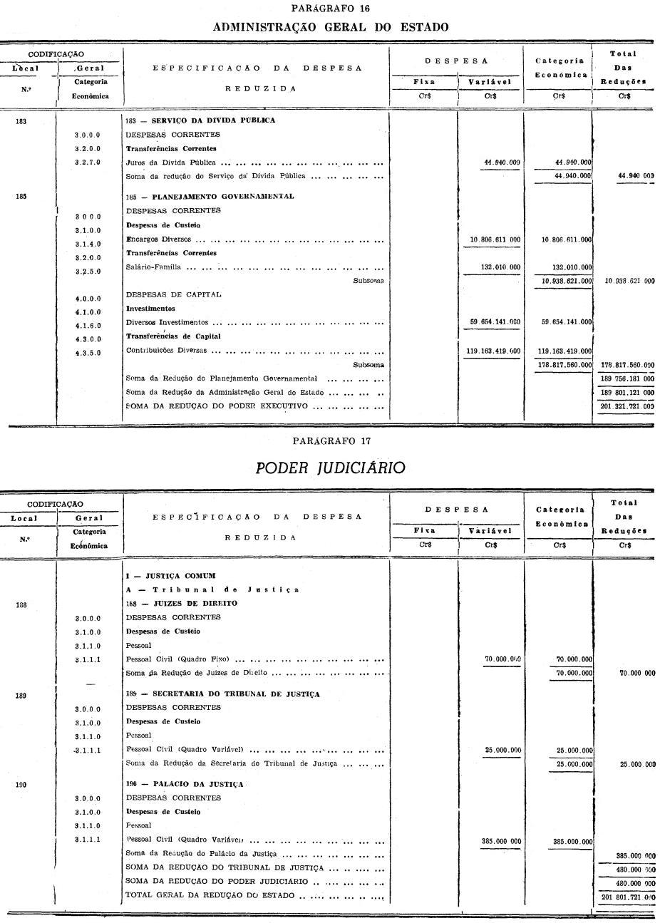 a) Cr$ 201.801.721.000 (DUZENTOS E UM BILHÕES, OITOCENTOS E UM MILHÕES, SETECENTOS E VINTE E UM MIL CRUZEIROS), provenientes das reduções de que trata o Artigo 2º;