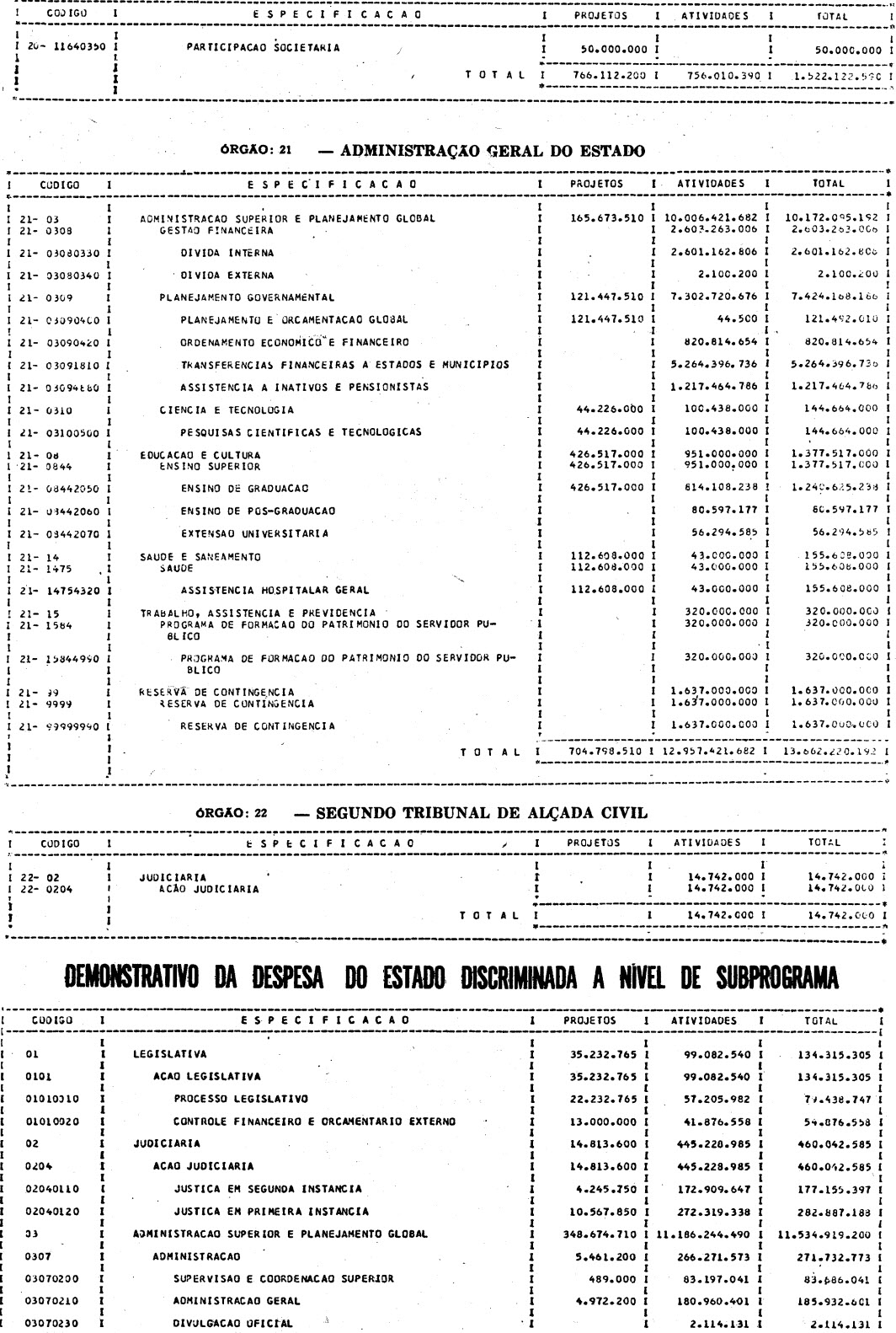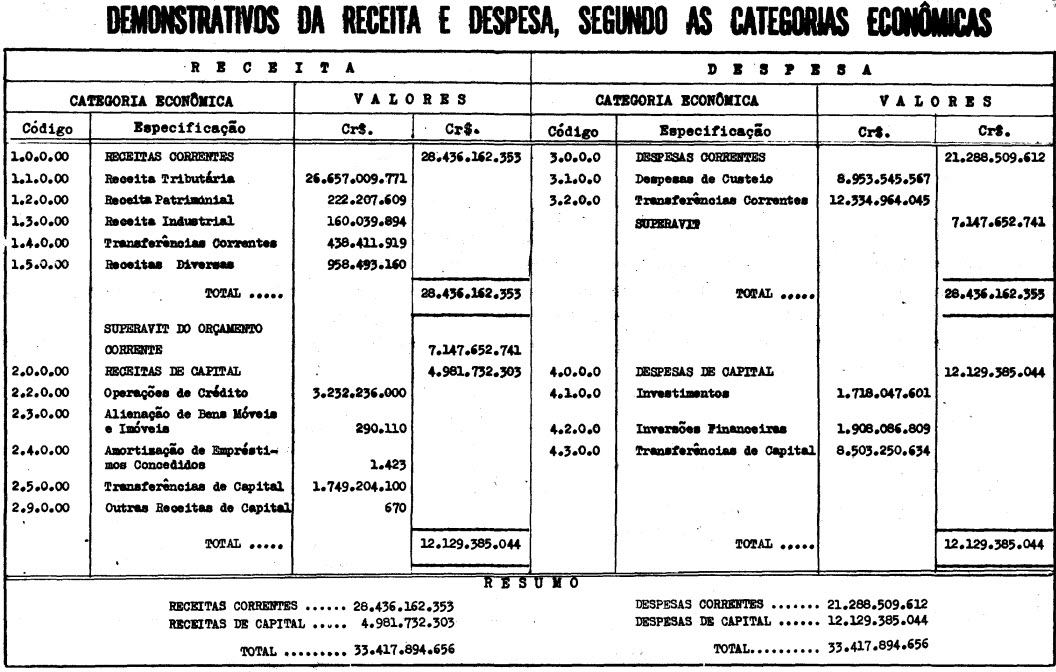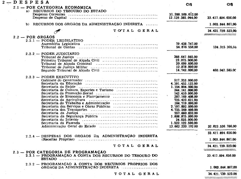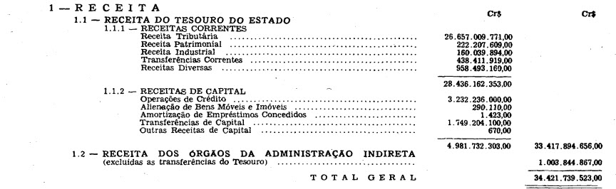 Receita e fixa a Despesa em valores iguais a Cr$ 34.421.739.523,00