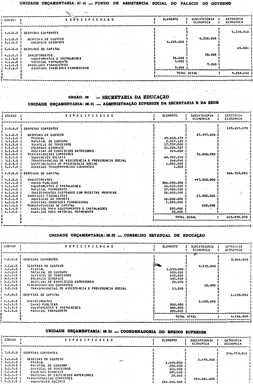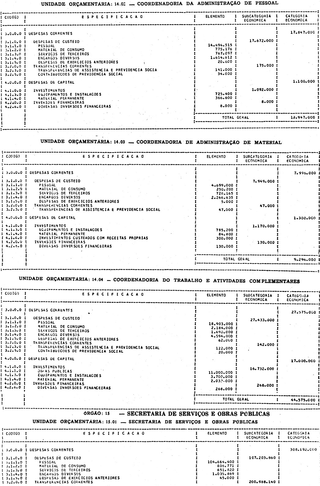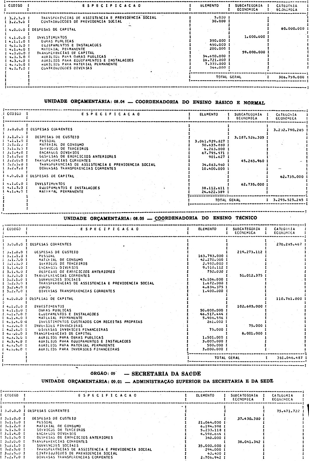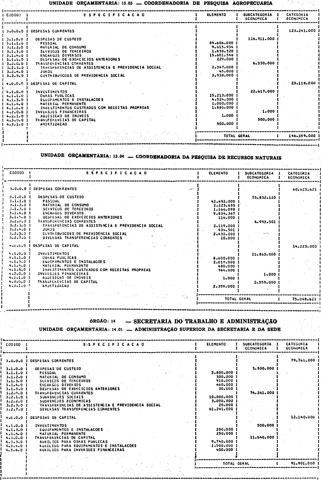 Artigo 3.º - A Despesa será realizada de acordo com o seguinte desdobramento por Categorias Econômicas, Órgãos e Categorias de Programação:
