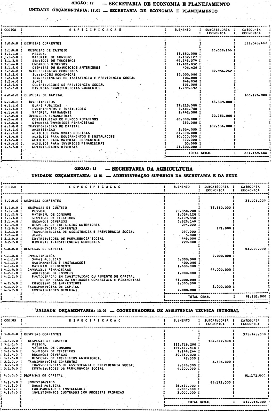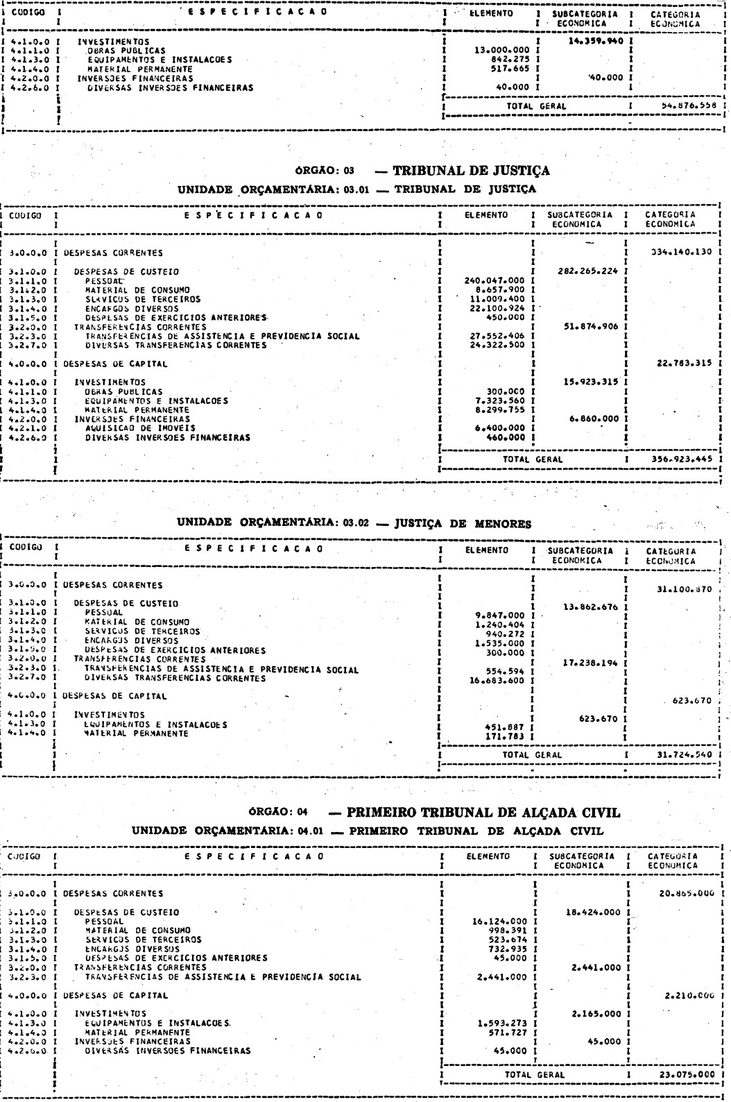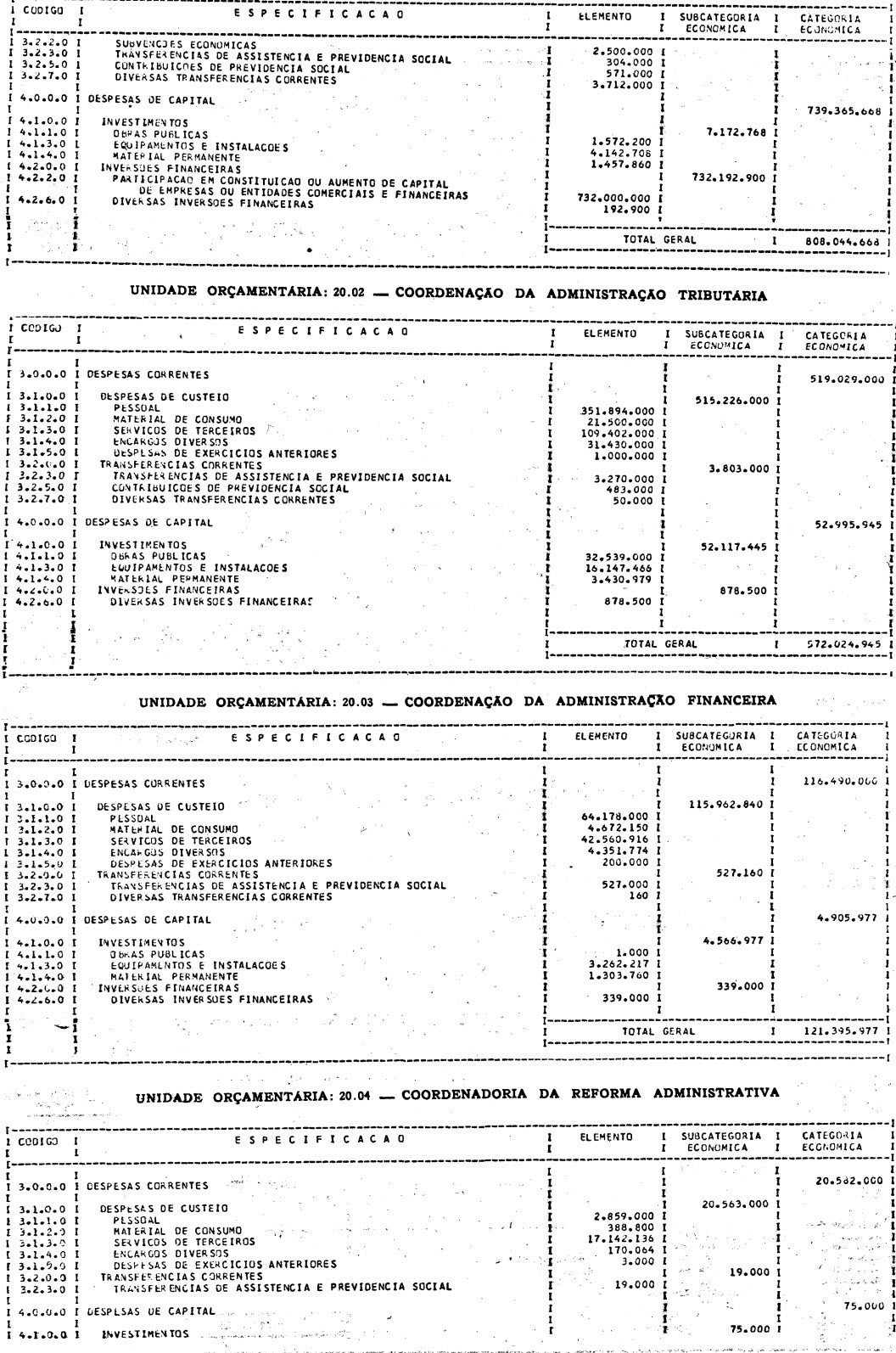 Artigo 3.º - A Despesa será realizada de acordo com o seguinte desdobramento por Categorias Econômicas, Órgãos e Categorias de Programação:
