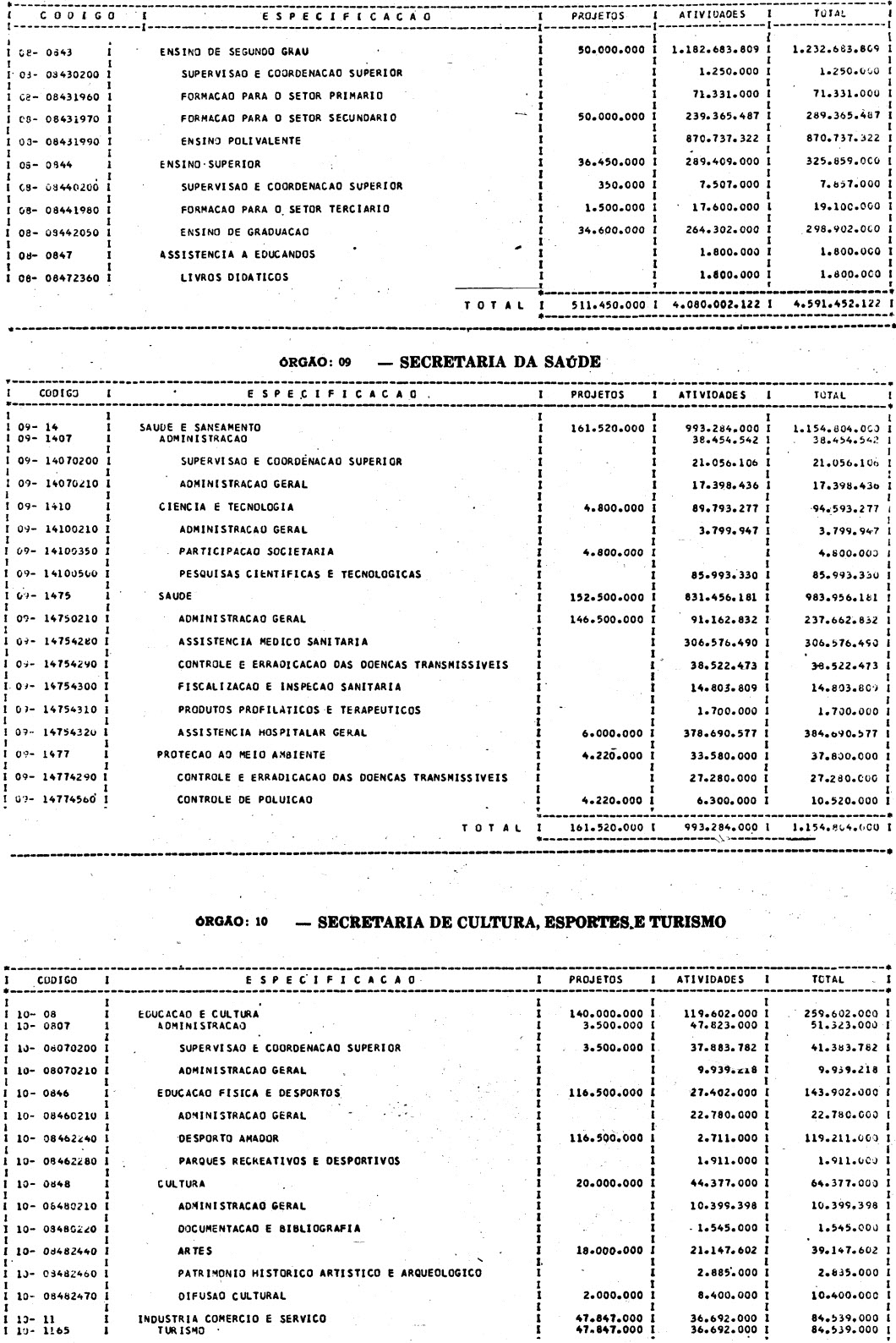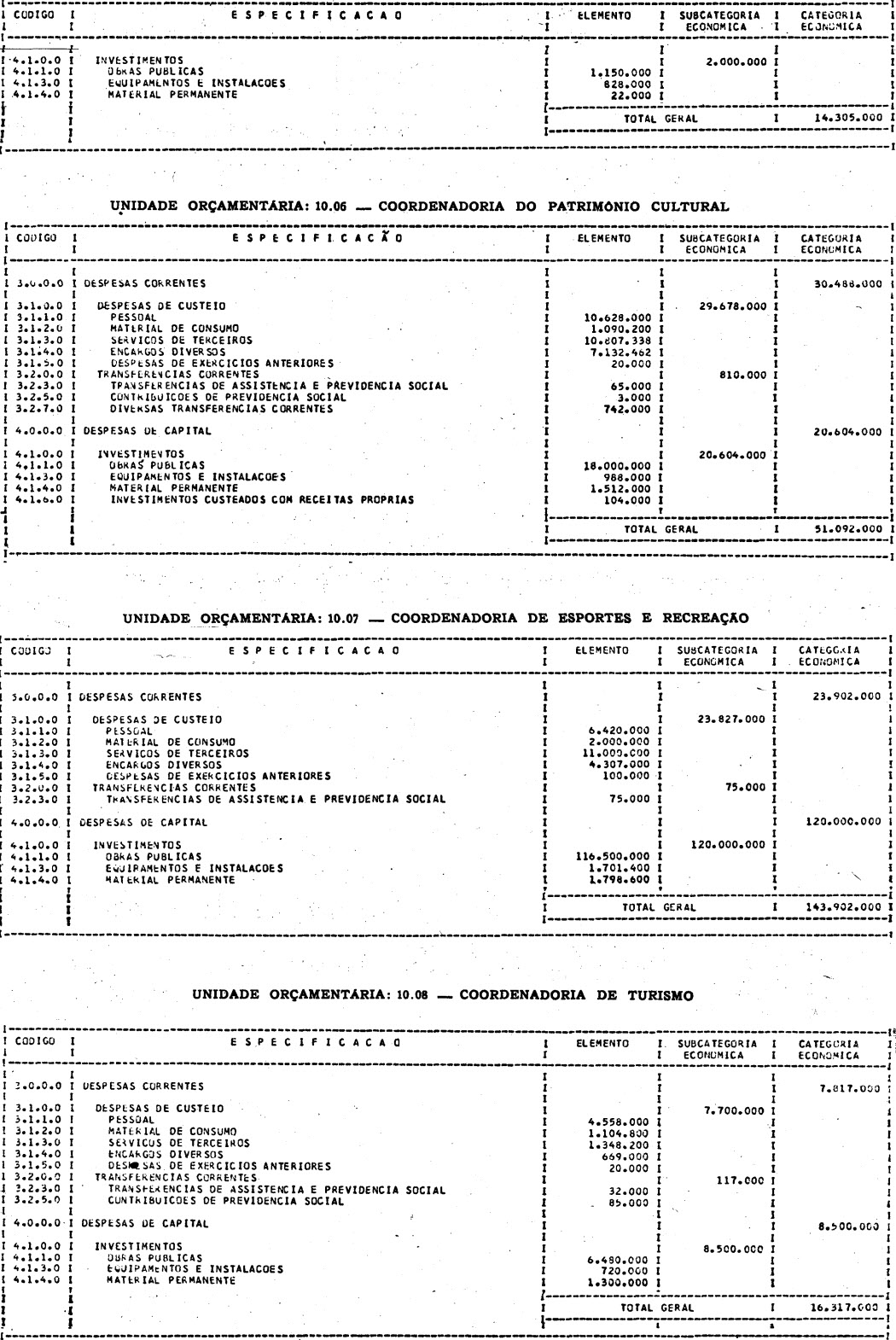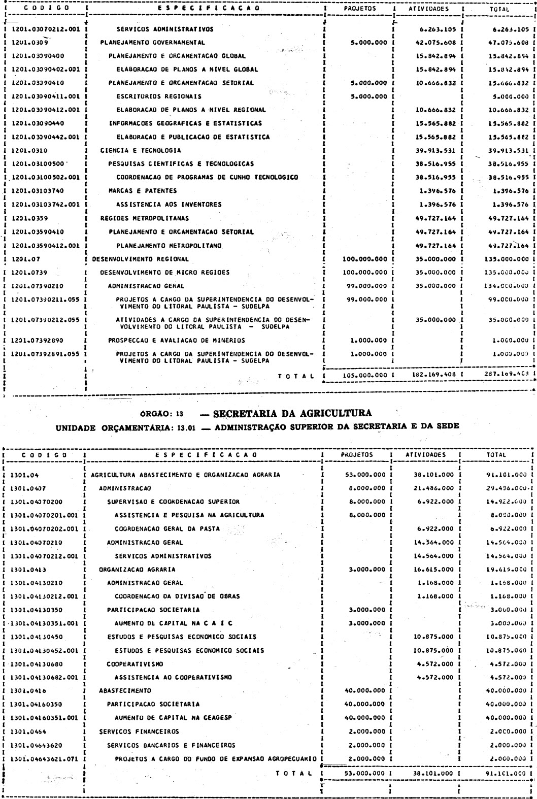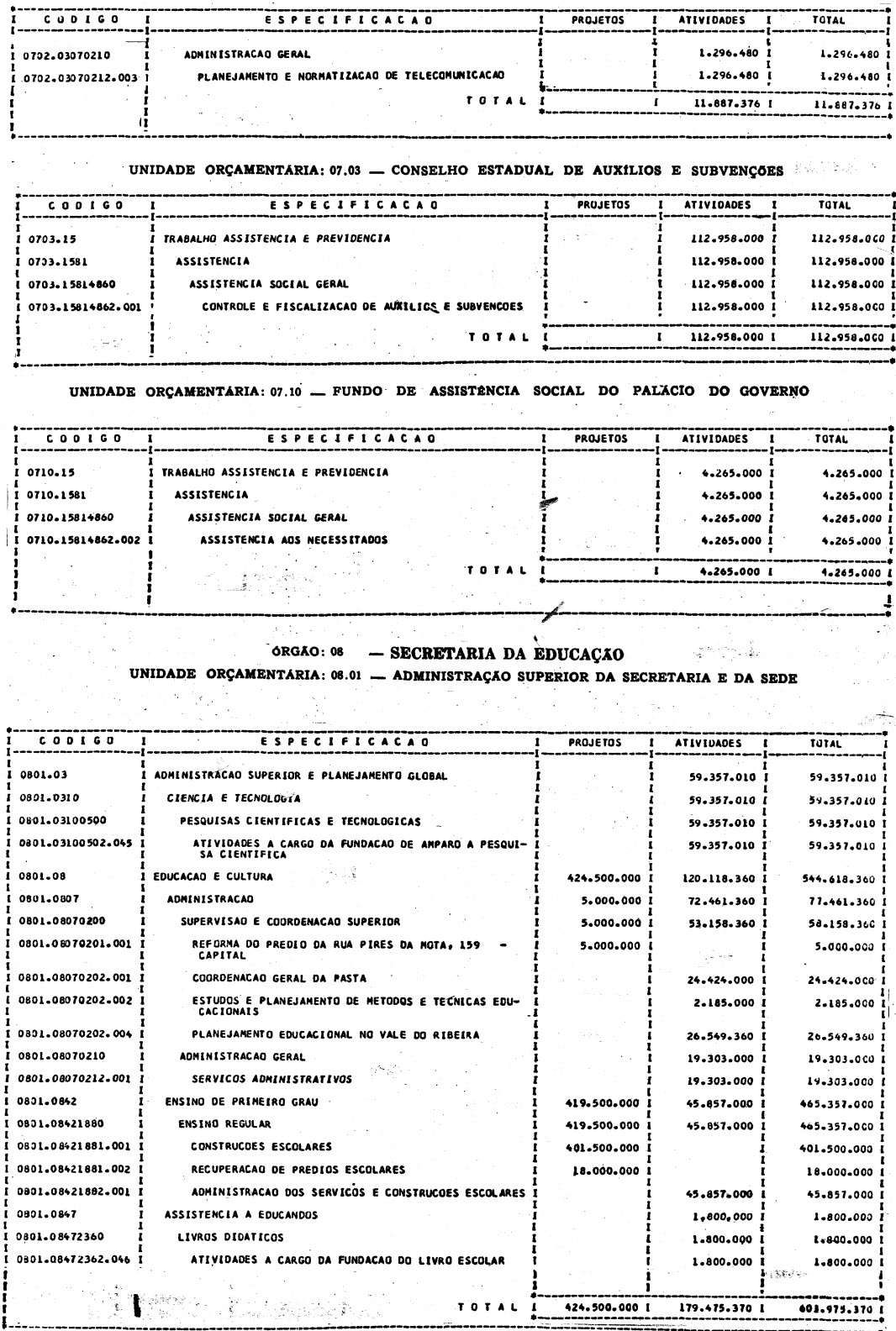 Artigo 3.º - A Despesa será realizada de acordo com o seguinte desdobramento por Categorias Econômicas, Órgãos e Categorias de Programação: