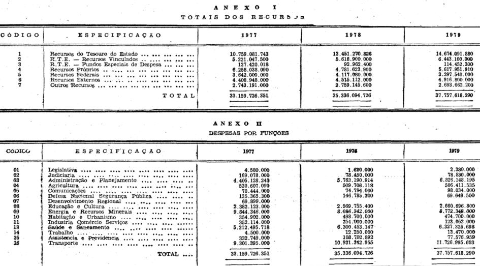 Artigo 2º - Os recursos previstos para o financiamento do Orçamento Plurianual de Investimentos, para o triênio de 1977 a 1979, estão distribuídos conforme o Anexo I, que integra esta lei.
