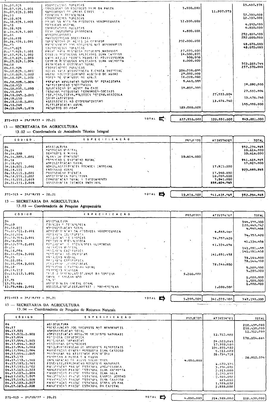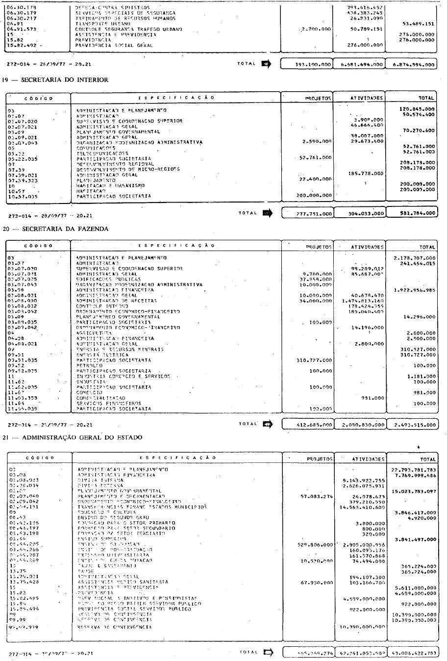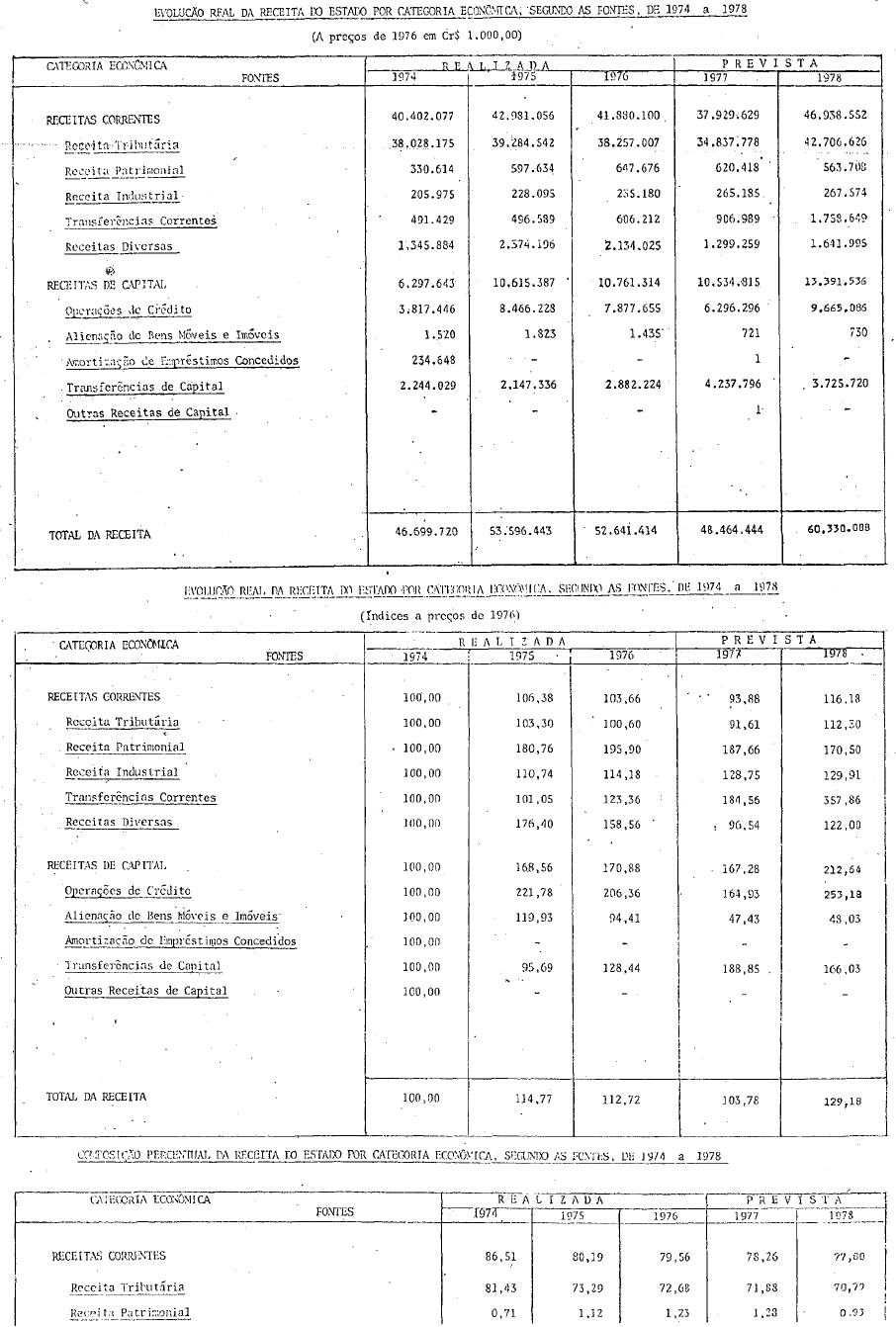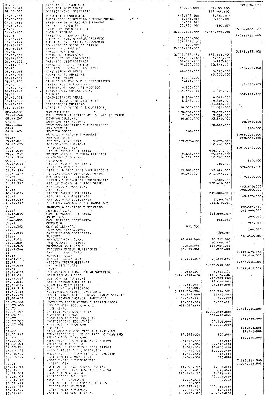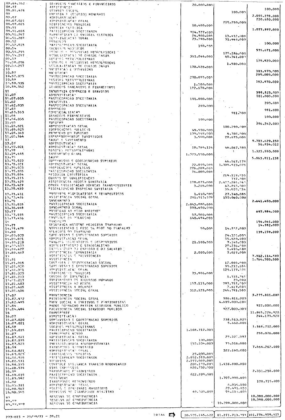 Artigo 1.º - O Orçamento-Programa do Estado para o exercício de 1978, discriminado nos quadros anexos desta lei, orça a Receita e fixa a Despesa em valores iguais a Cr$ 107.766.768.465,00 (cento e sete bilhões, setecentos e sessenta e seis milhões, setecentos e sessenta e oito mil e quatrocentos e sessenta e cinco cruzeiros).