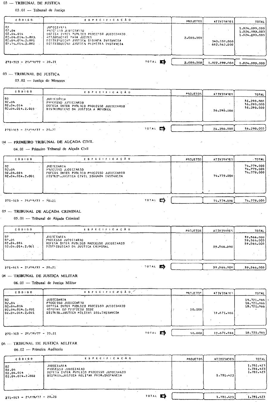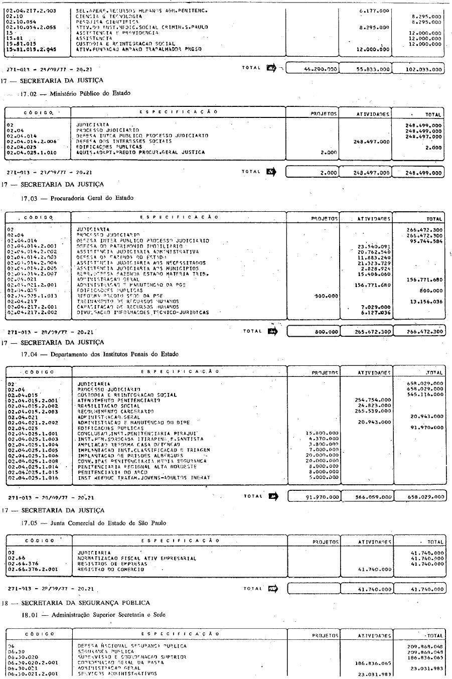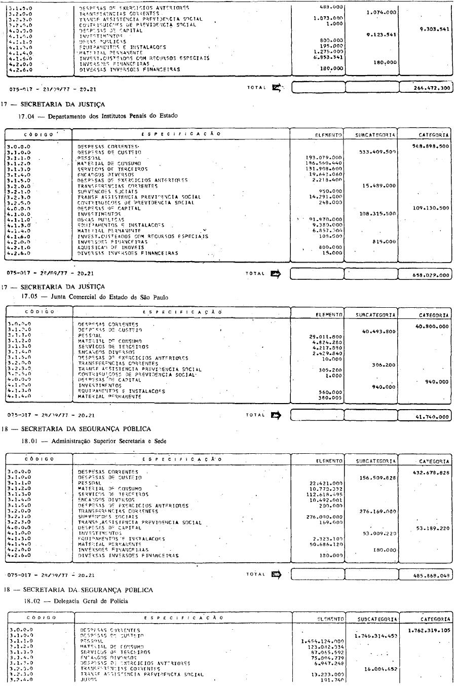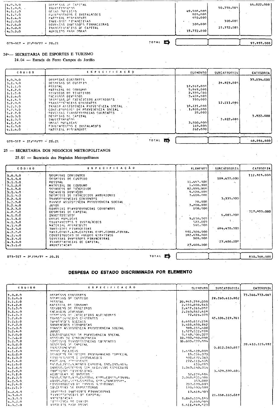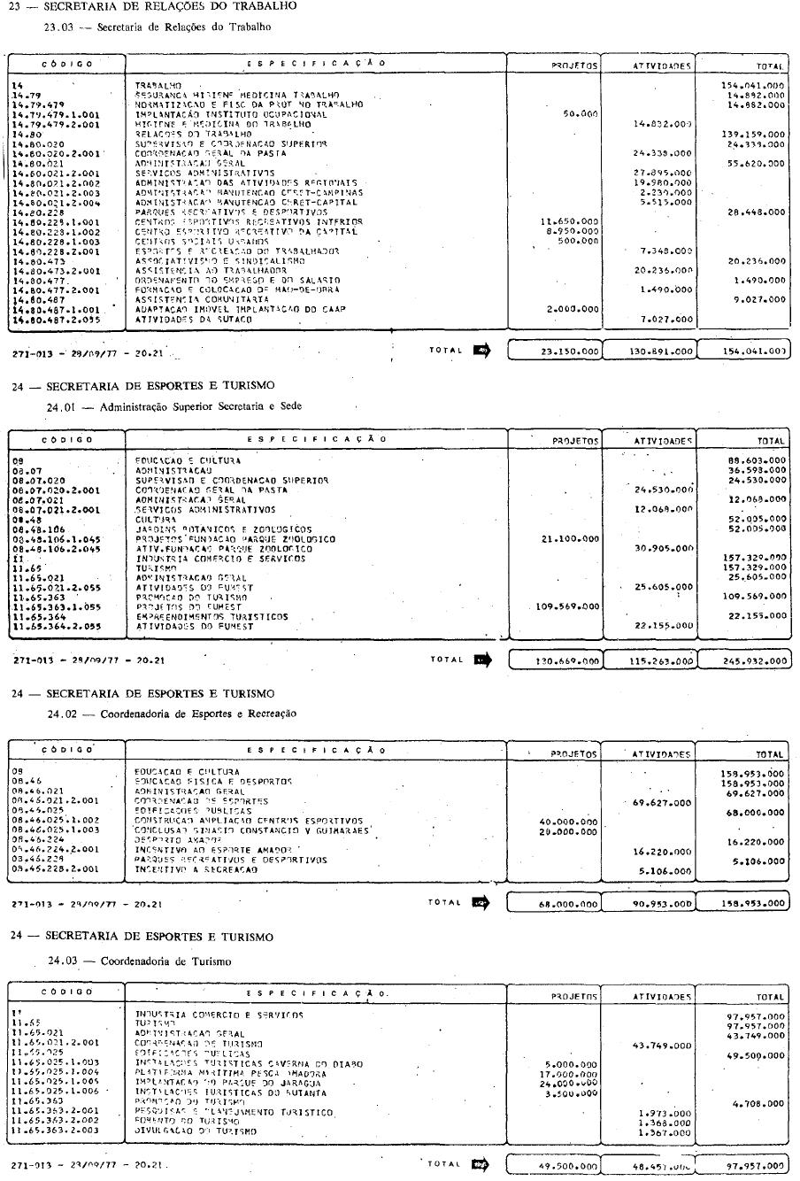 Artigo 1.º - O Orçamento-Programa do Estado para o exercício de 1978, discriminado nos quadros anexos desta lei, orça a Receita e fixa a Despesa em valores iguais a Cr$ 107.766.768.465,00 (cento e sete bilhões, setecentos e sessenta e seis milhões, setecentos e sessenta e oito mil e quatrocentos e sessenta e cinco cruzeiros).