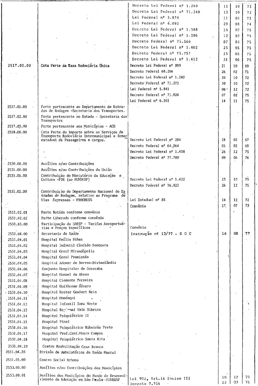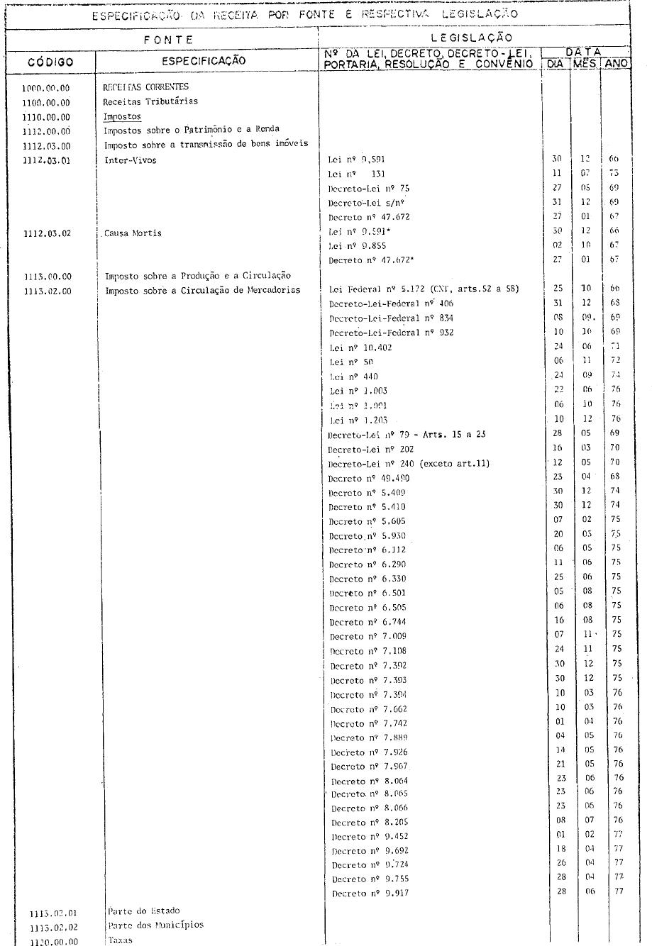 Artigo 2.º - Arrecadar-se-á a Receita na conformidade da legislação em vigor e das especificações dos quadros integrantes desta lei, observada a seguinte classificação: