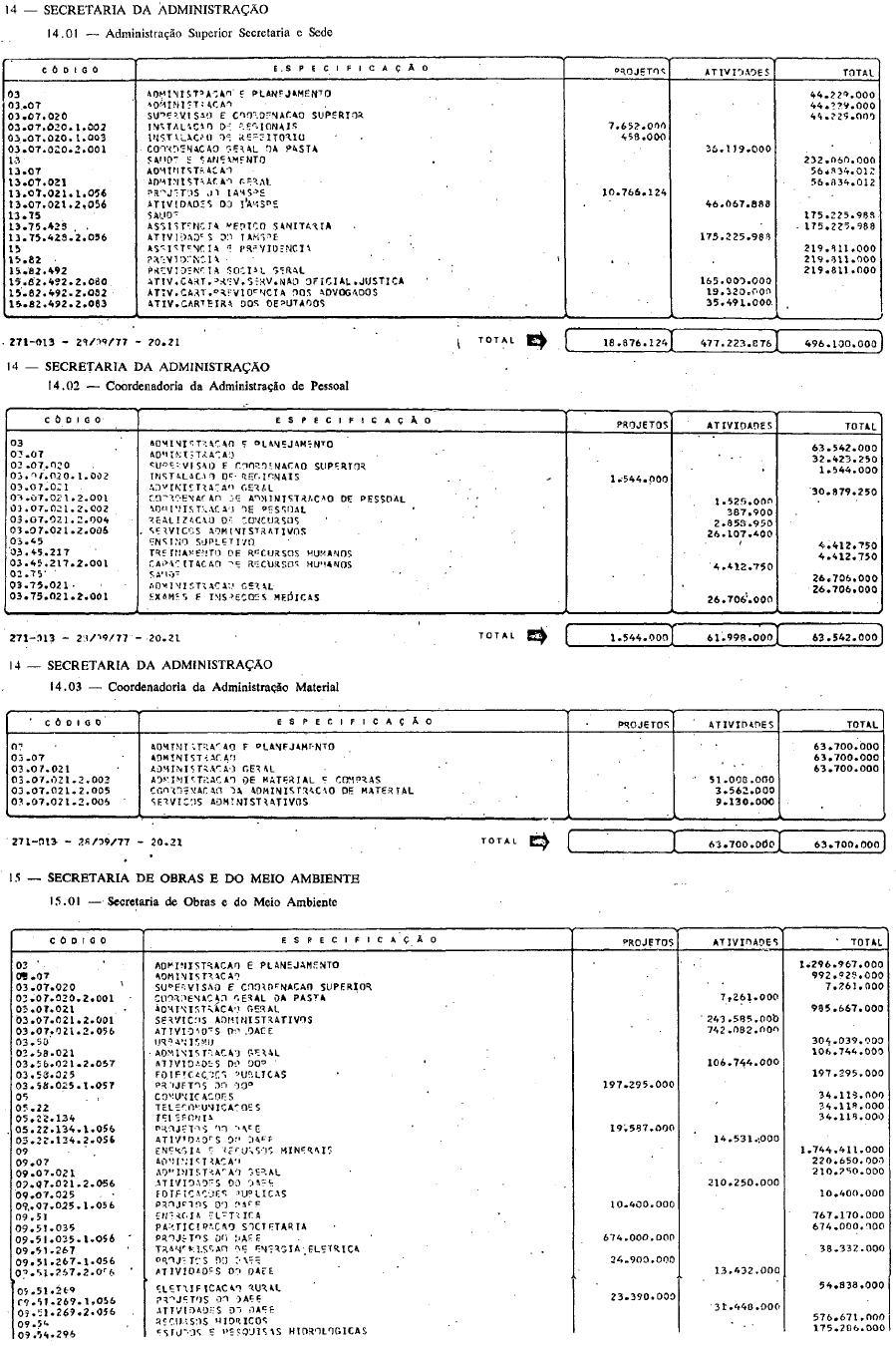 II - para atender às "Despesas Correntes e de Capital", utilizando recursos consignados à "Administração Geral do Estado" nas programações: 03 - Administração e Planejamento; 09 - Planejamento Governamental; 040 - Planejamento e Orçamentação; 1001 - Projetos Estratégicos e 2001 - Atividades Estratégicas.