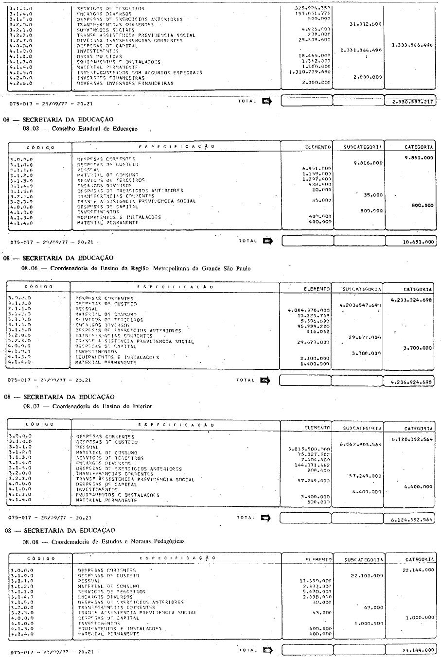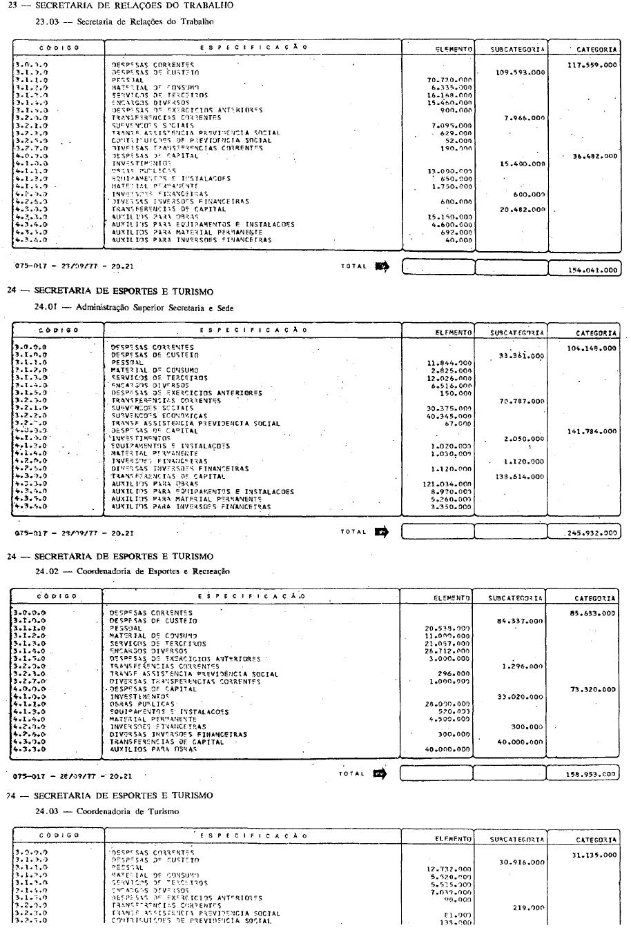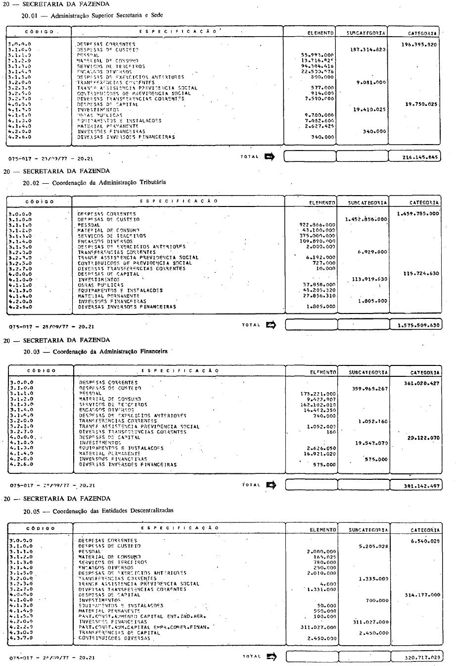 Artigo 3.º - A Despesa será realizada de acordo com o seguinte desdobramento por Categorias Econômicas, Órgãos e Categorias de Programação: