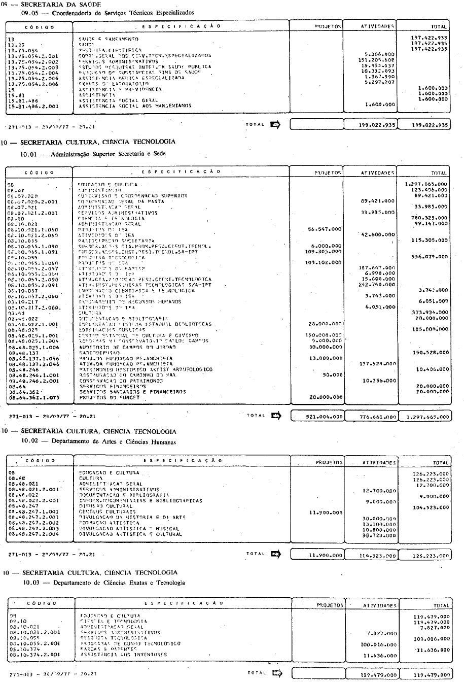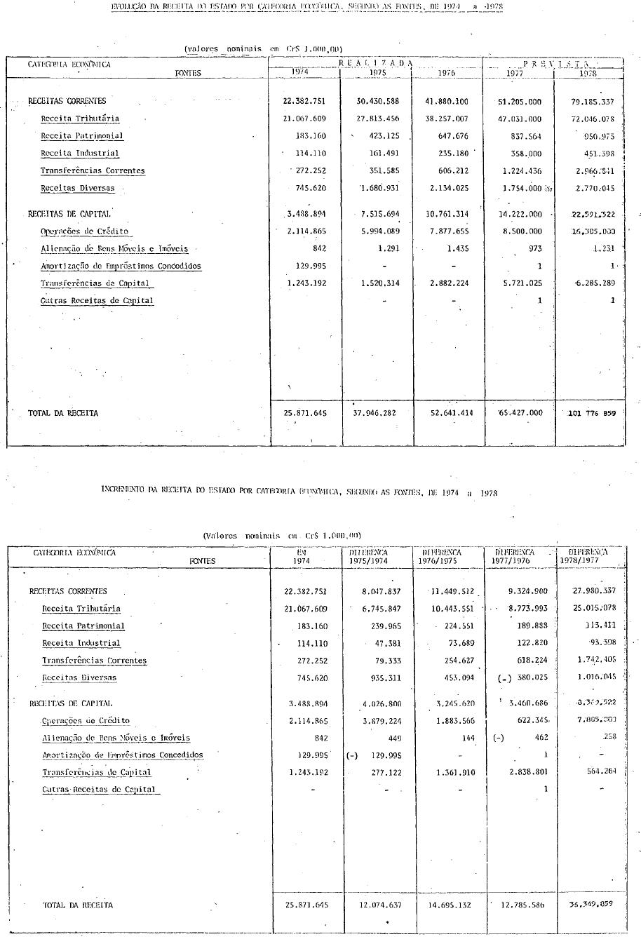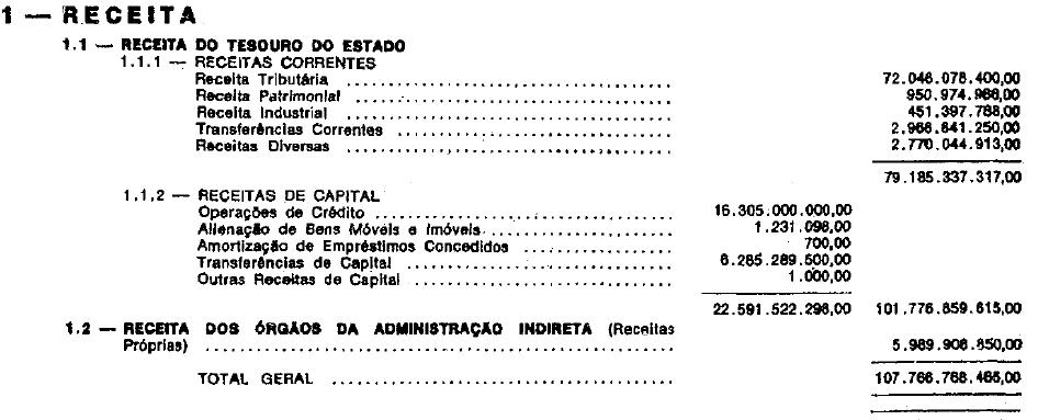 Artigo 1.º - O Orçamento-Programa do Estado para o exercício de 1978, discriminado nos quadros anexos desta lei, orça a Receita e fixa a Despesa em valores iguais a Cr$ 107.766.768.465,00 (cento e sete bilhões, setecentos e sessenta e seis milhões, setecentos e sessenta e oito mil e quatrocentos e sessenta e cinco cruzeiros).