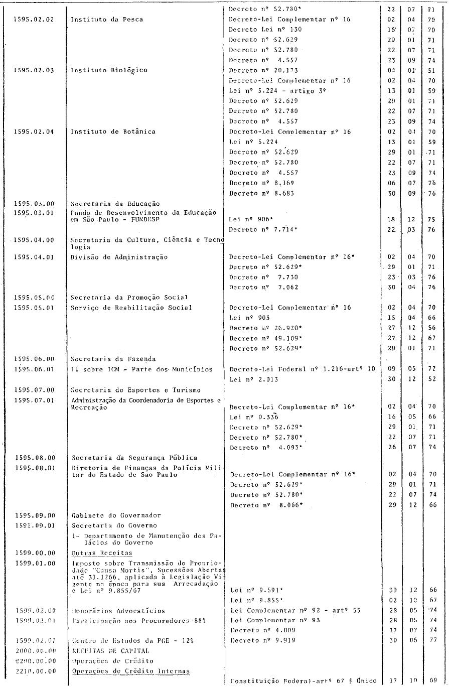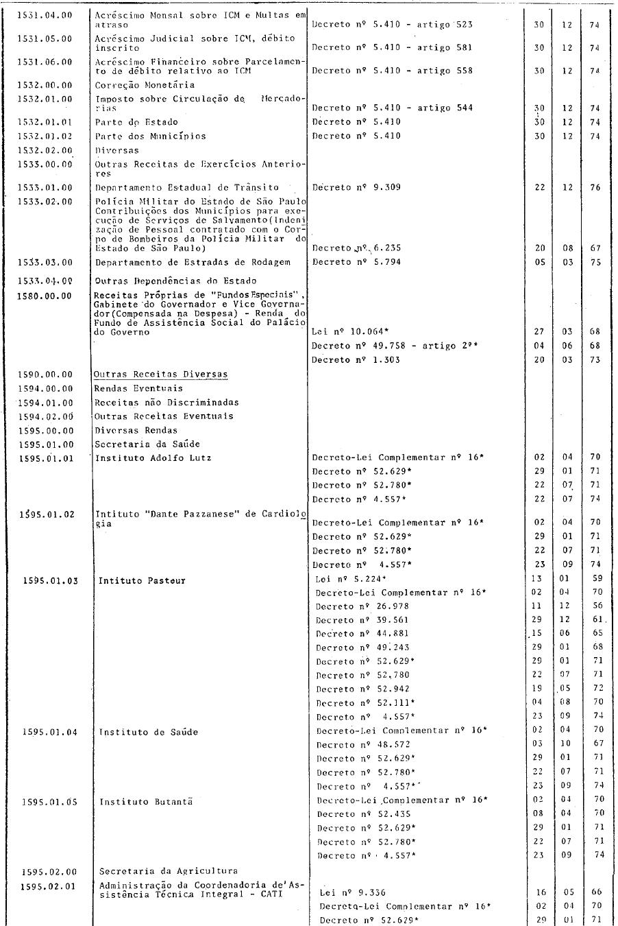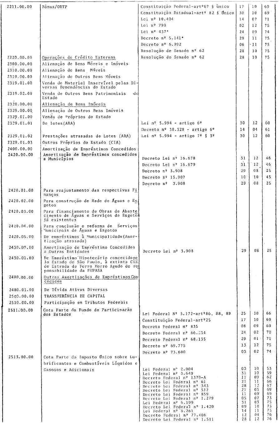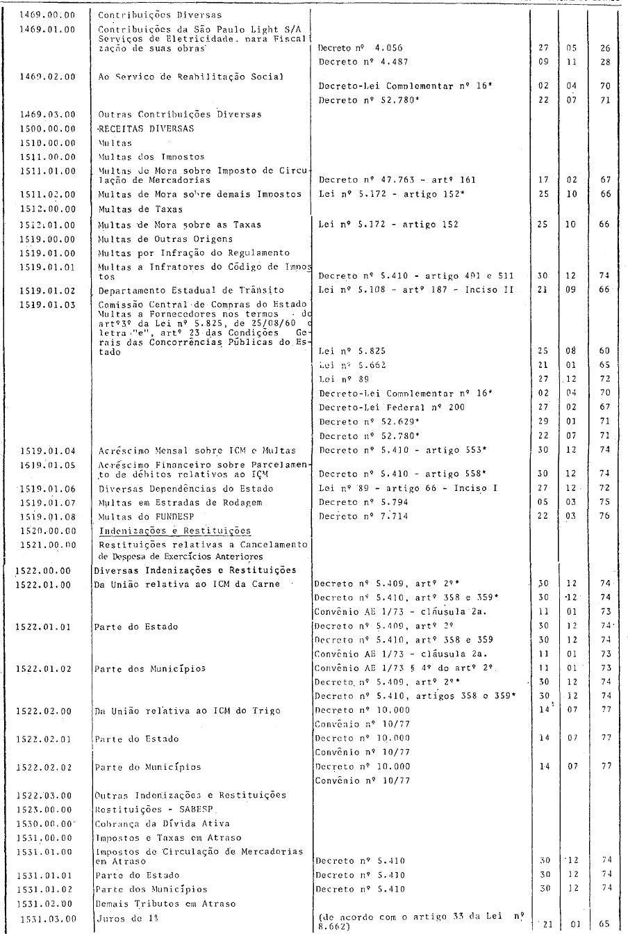 Artigo 2.º - Arrecadar-se-á a Receita na conformidade da legislação em vigor e das especificações dos quadros integrantes desta lei, observada a seguinte classificação:
