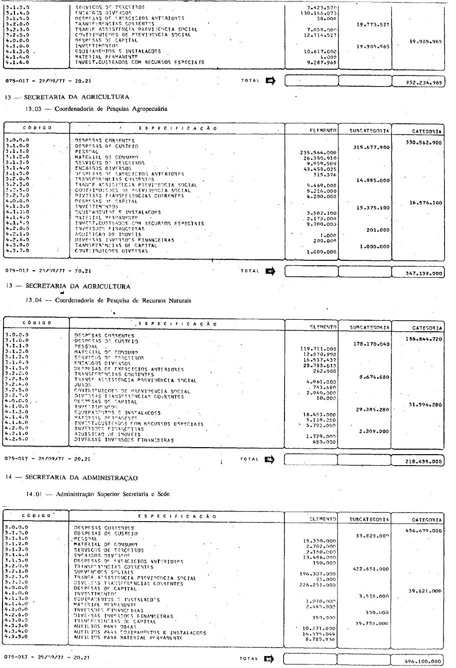 Artigo 3.º - A Despesa será realizada de acordo com o seguinte desdobramento por Categorias Econômicas, Órgãos e Categorias de Programação: