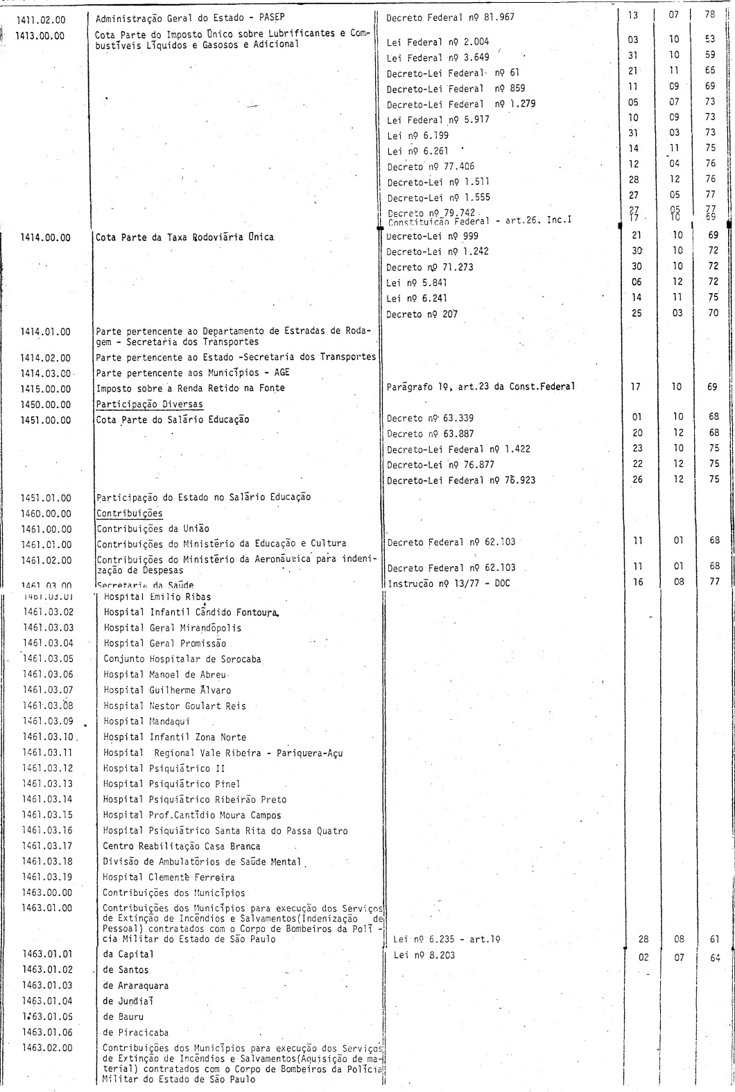 de 1979, discriminado nos quadros de I a X, que integram esta lei, e