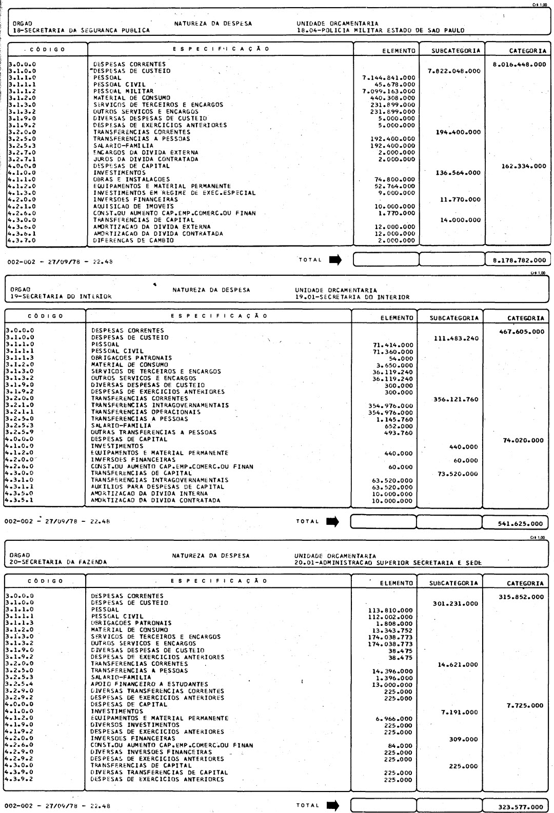 Artigo 3.º - A Despesa será realizada de acordo com o seguinte desdobramento por Categorias Econômicas, Órgãos e Categorias de Programação: