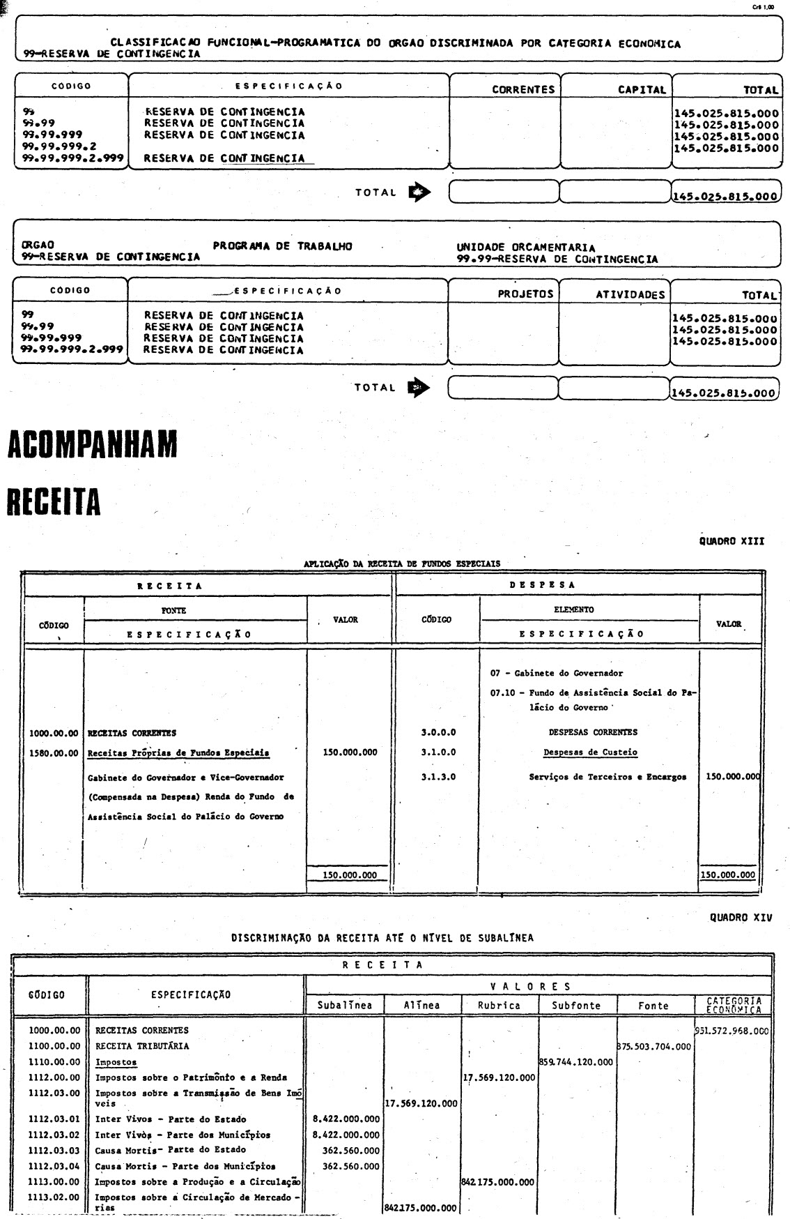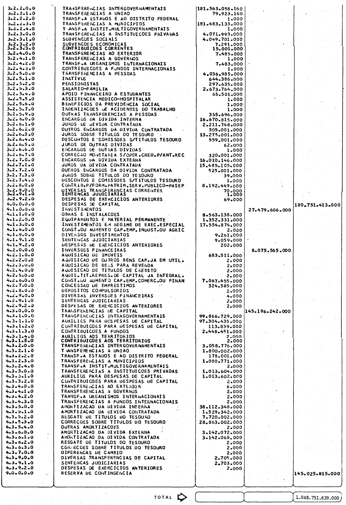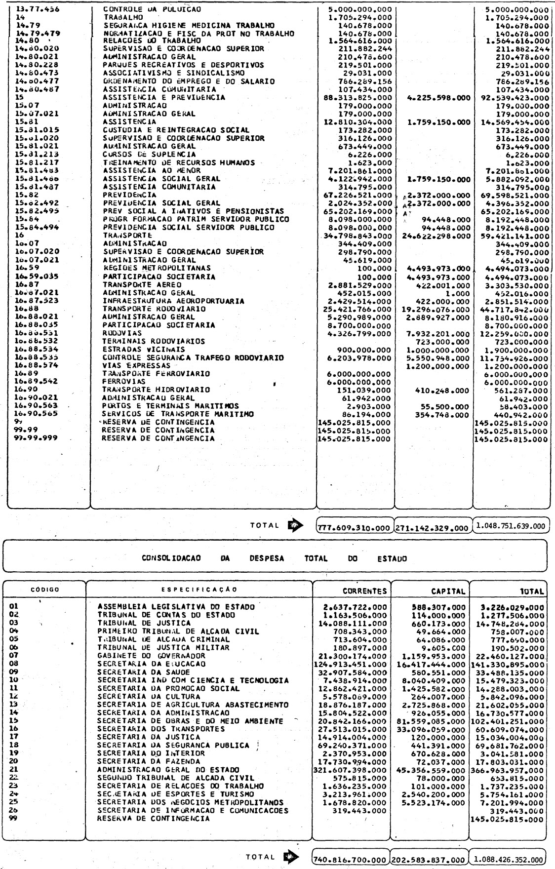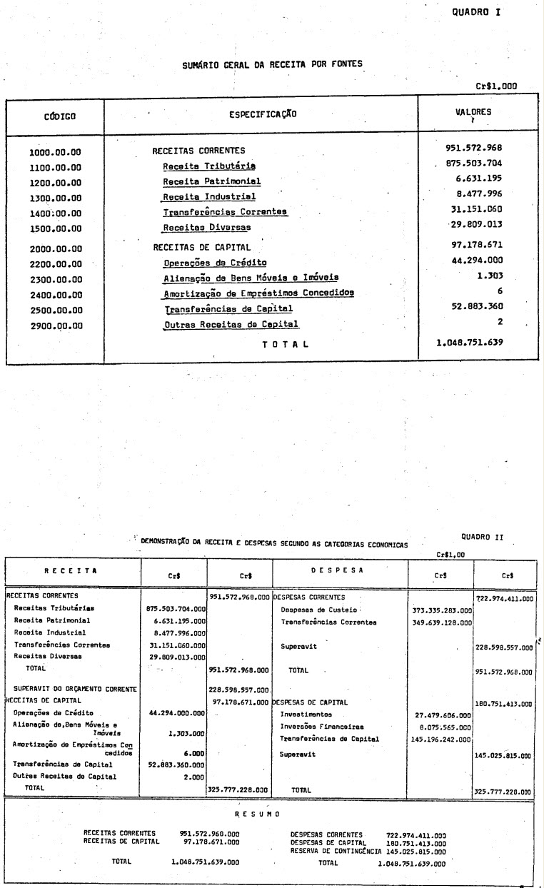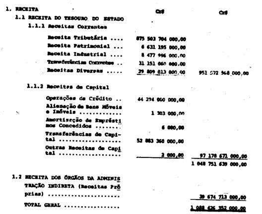 orça a Receita e fixa a Despesa em valores iguais a Cr$ 1.088.426.352.000,00 (hum
