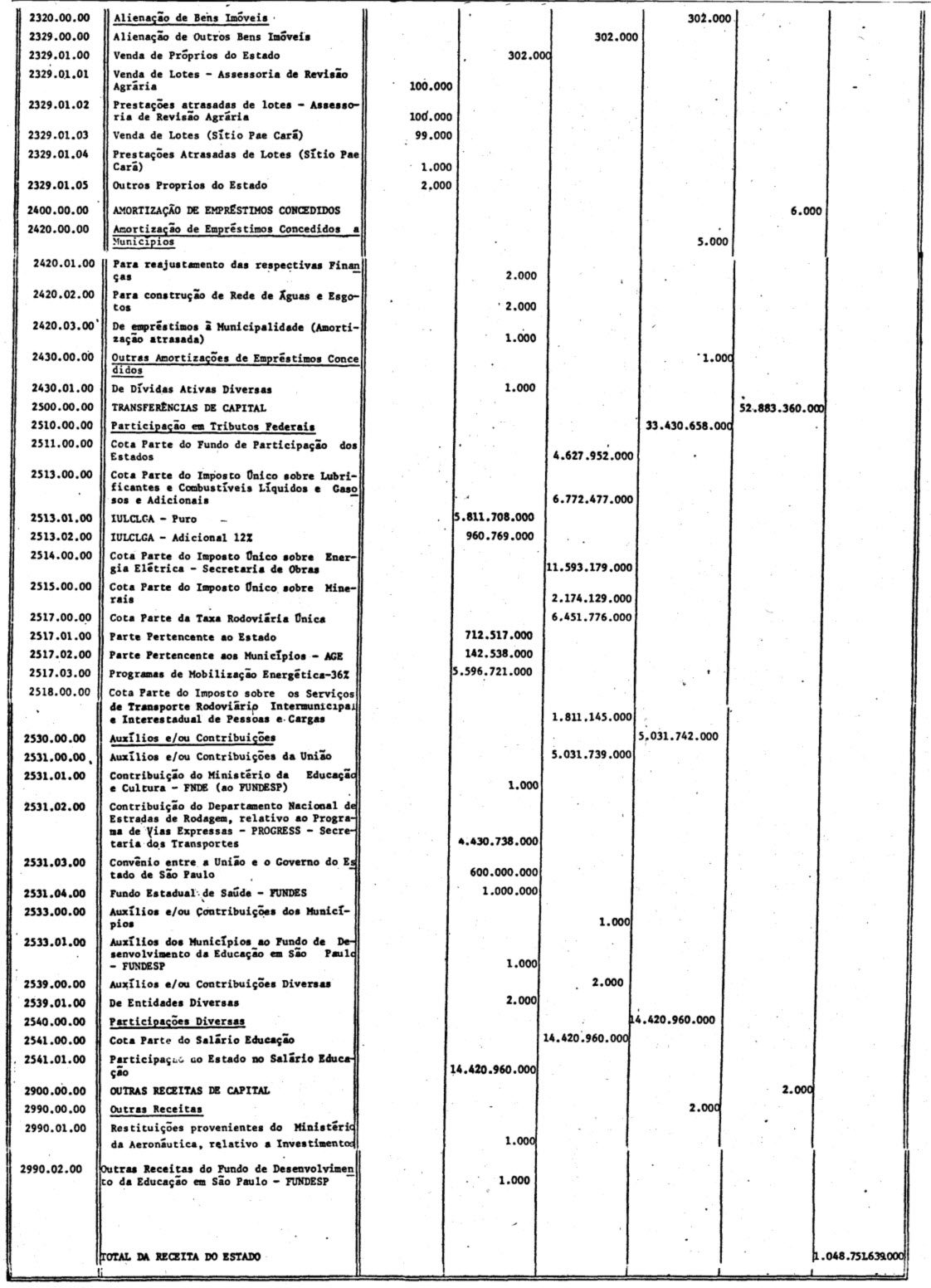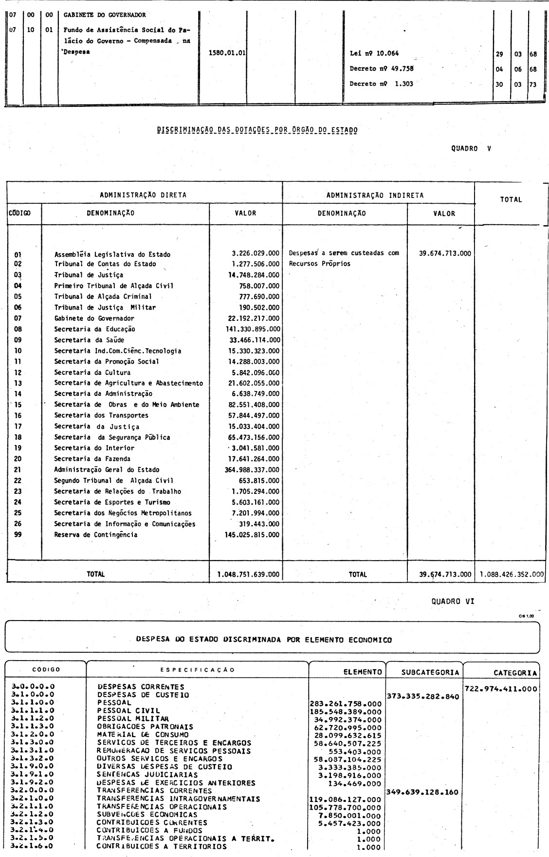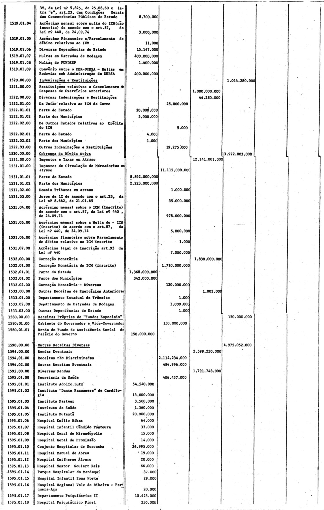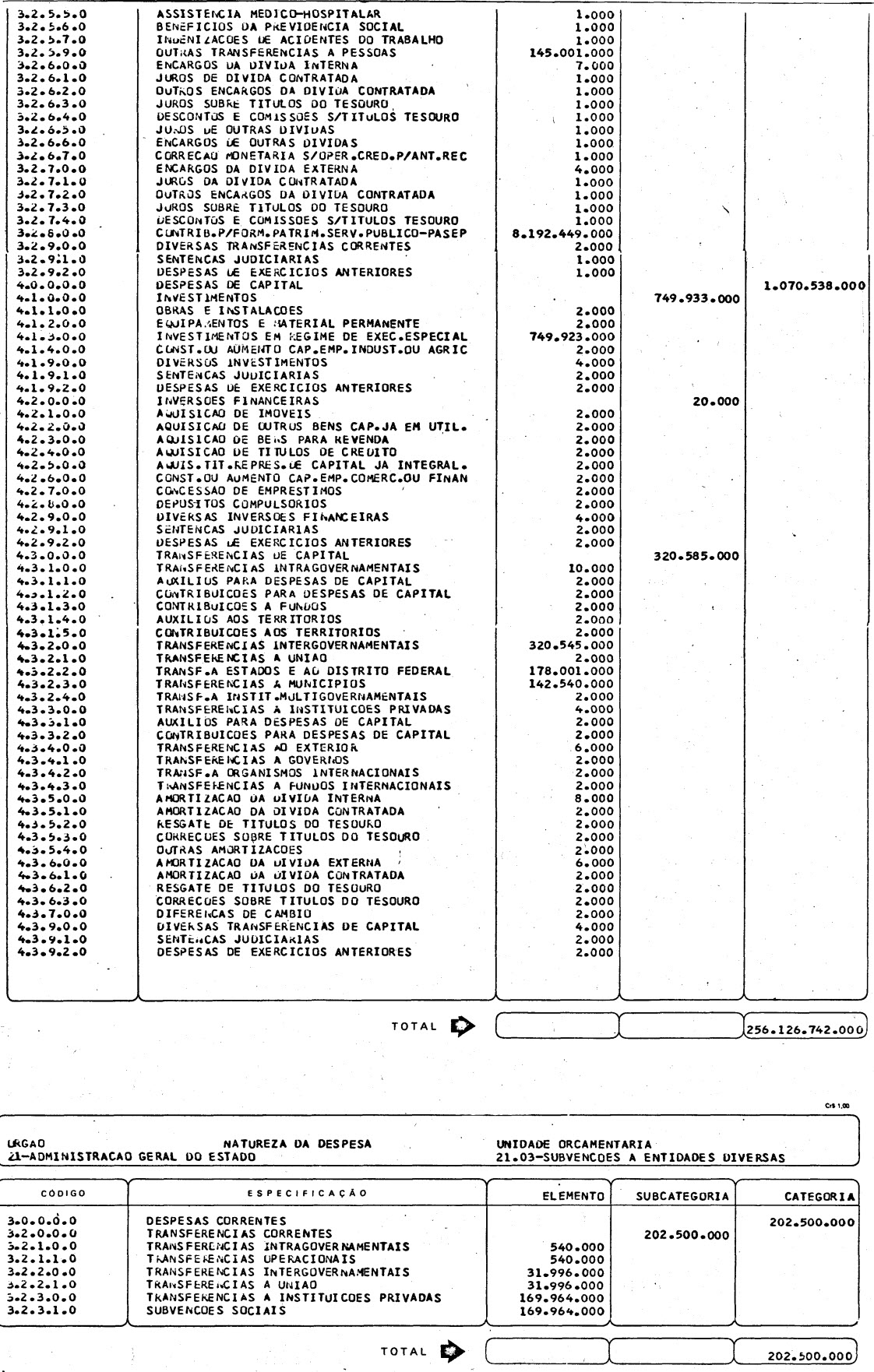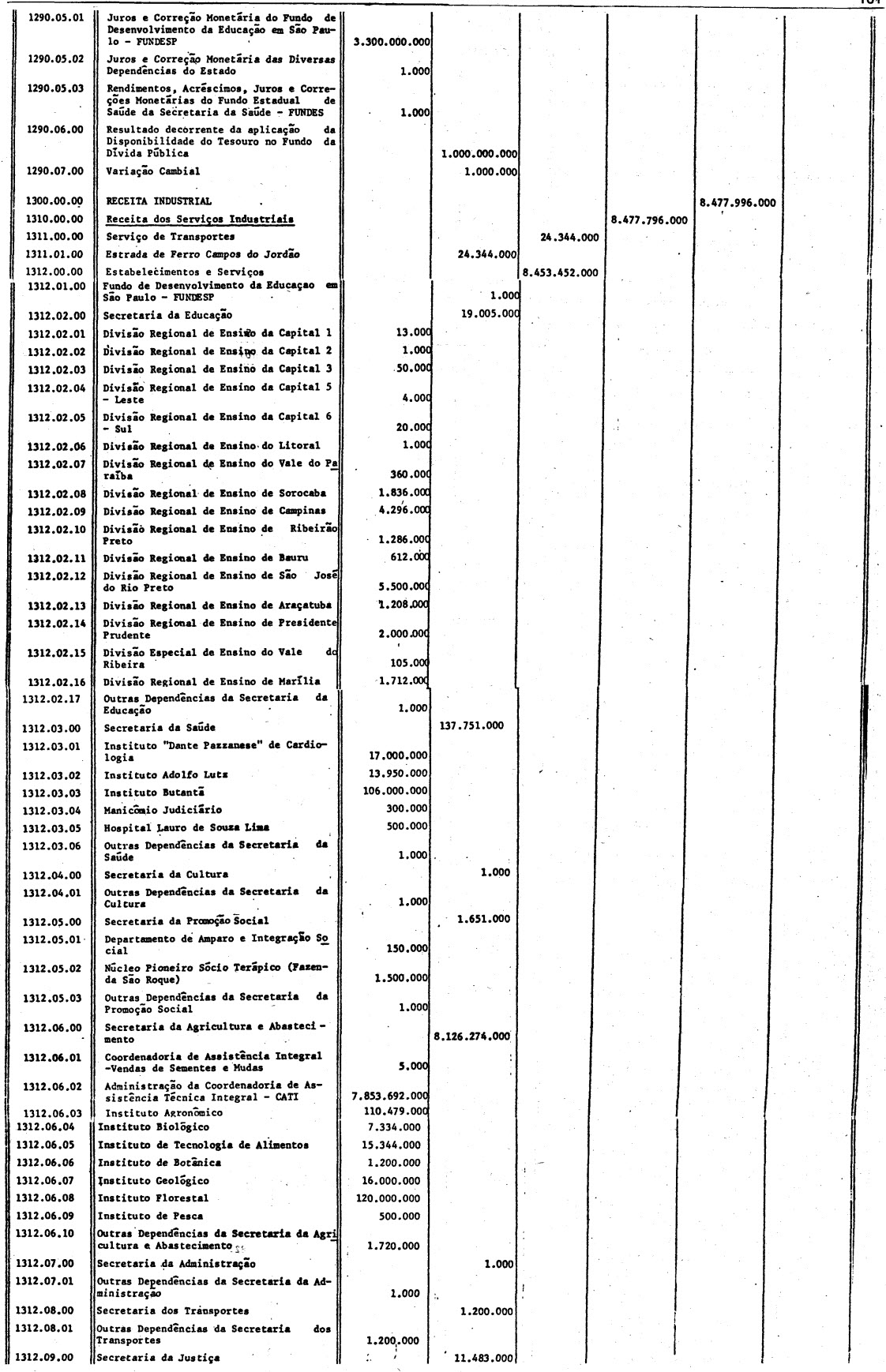 orça a Receita e fixa a Despesa em valores iguais a Cr$ 1.088.426.352.000,00 (hum