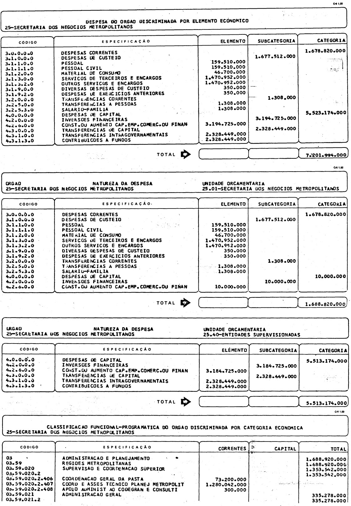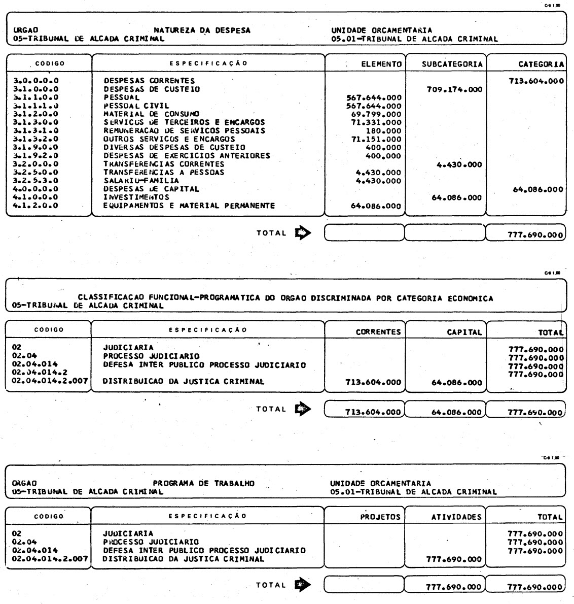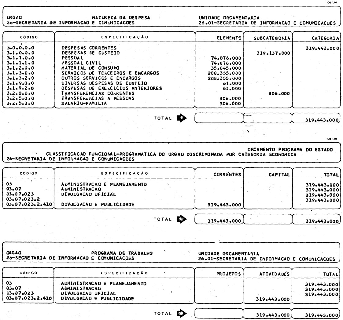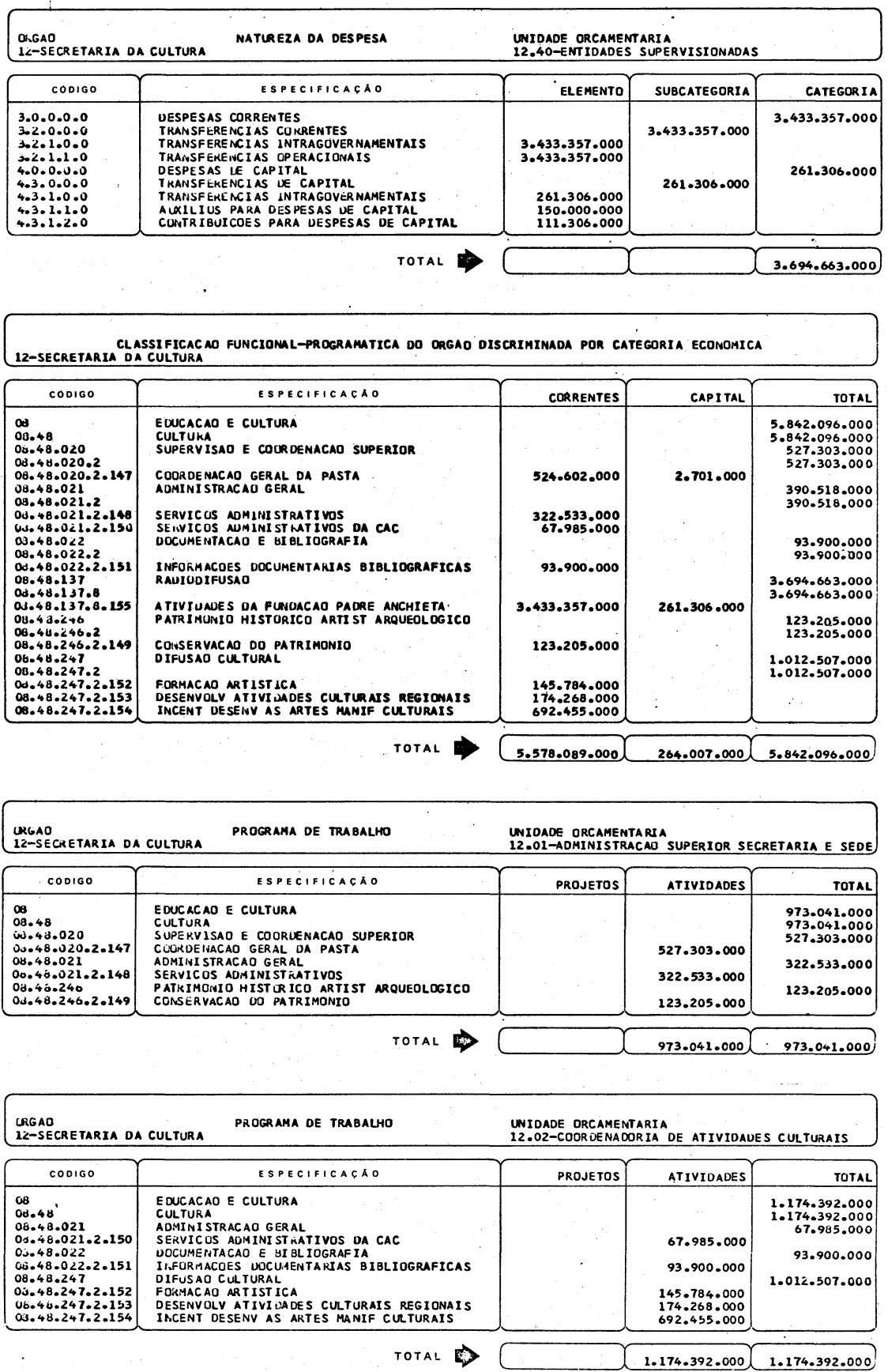orça a Receita e fixa a Despesa em valores iguais a Cr$ 1.088.426.352.000,00 (hum