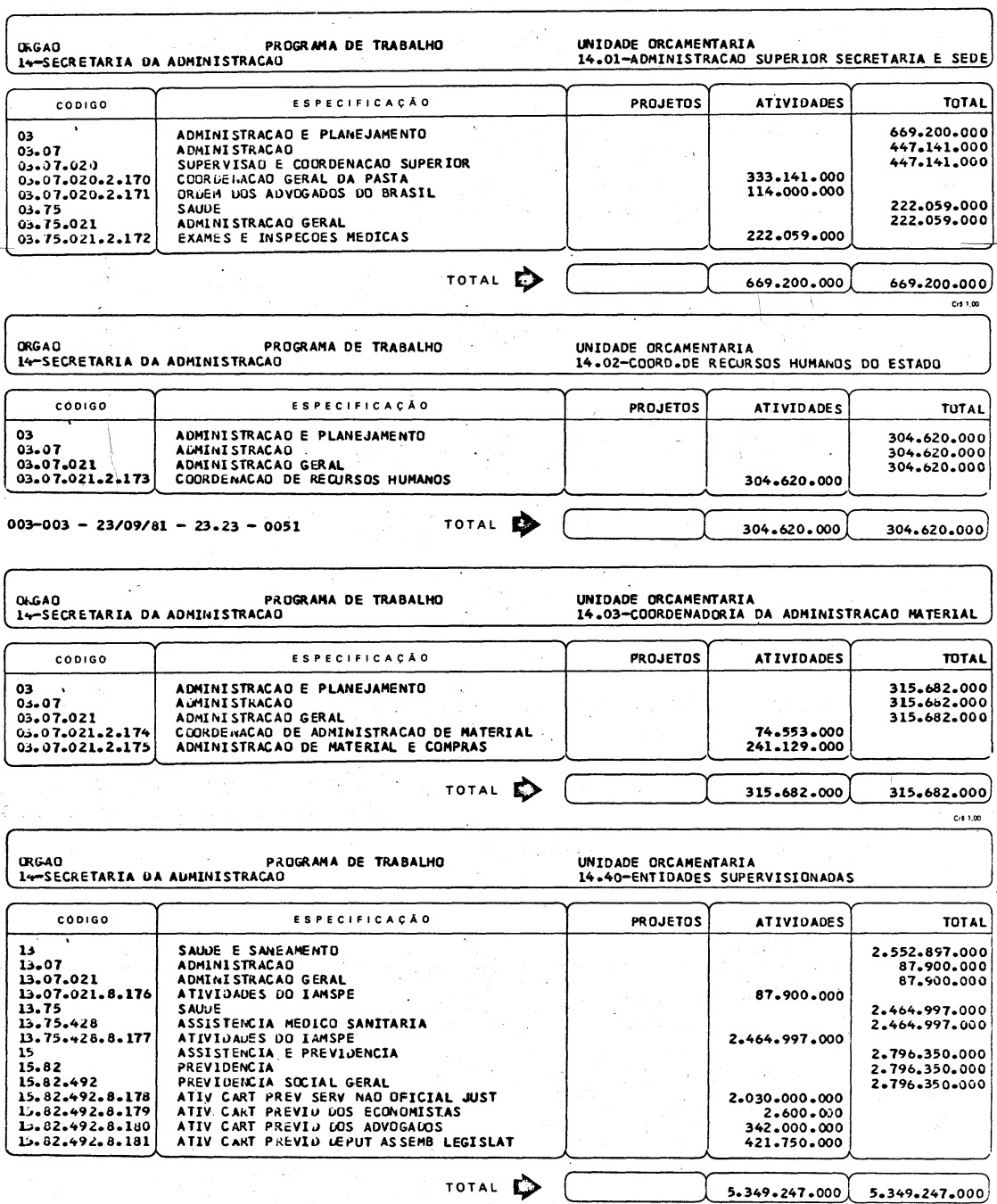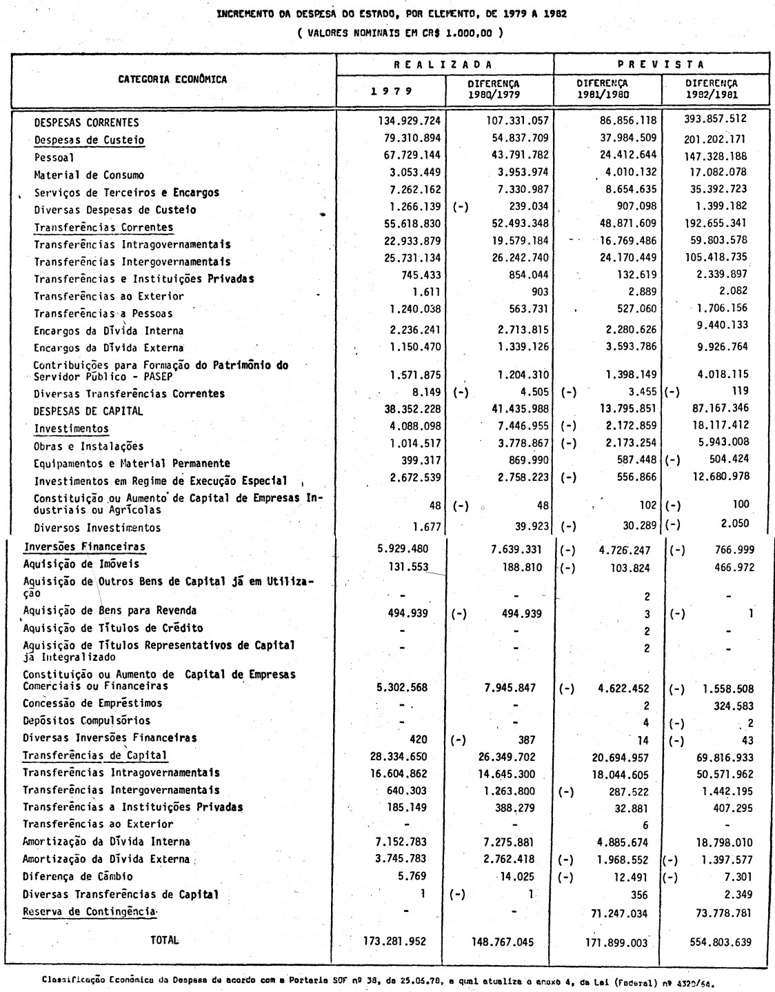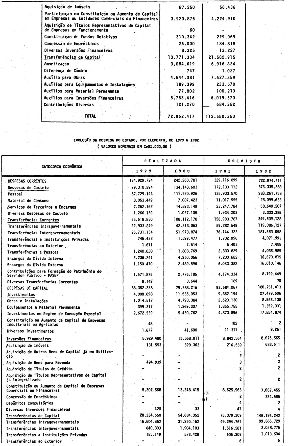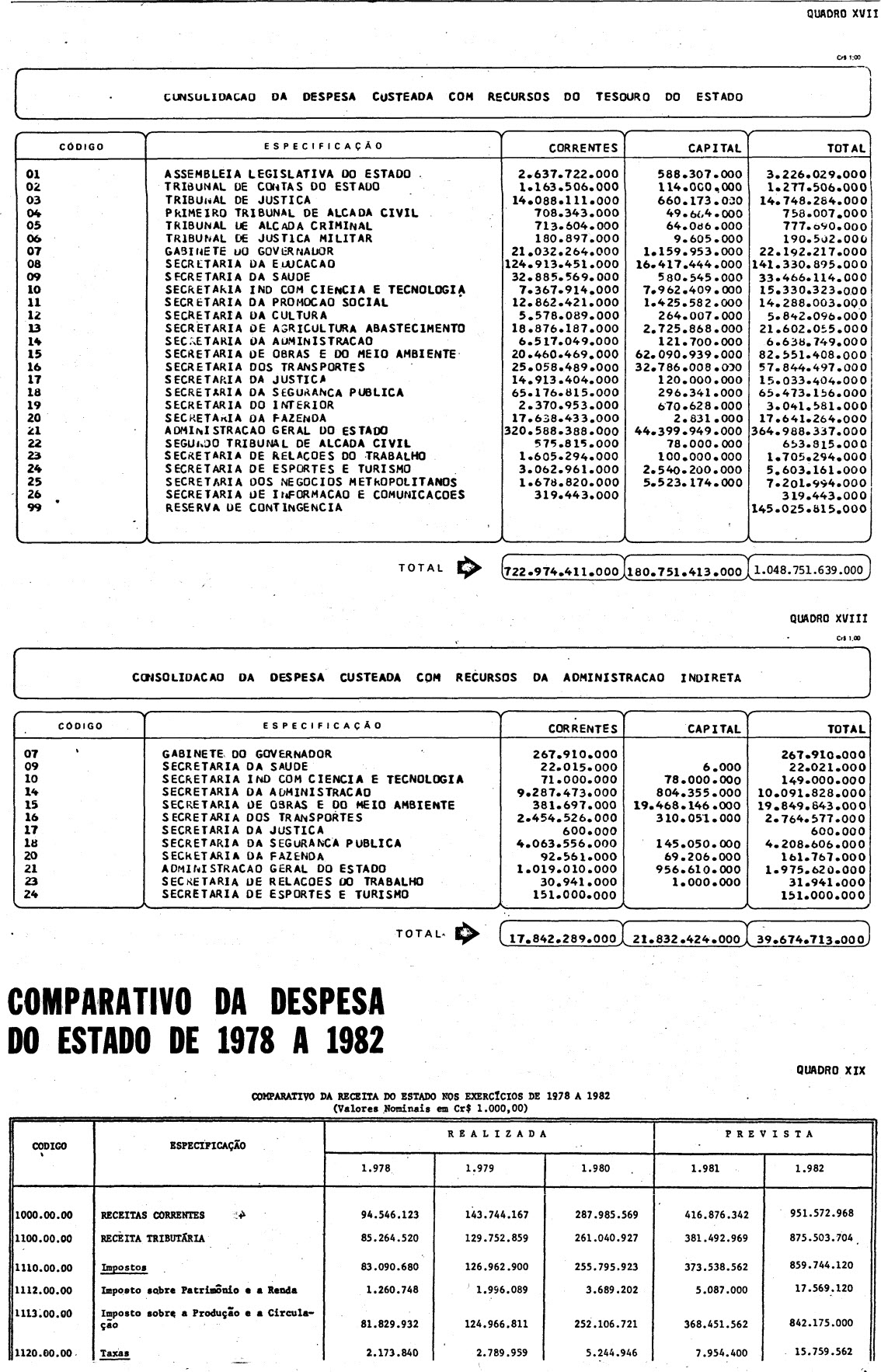 Orça a Receita e fixa a Despesa do Orçamento-Programa do Estado para o Exercício de 1982