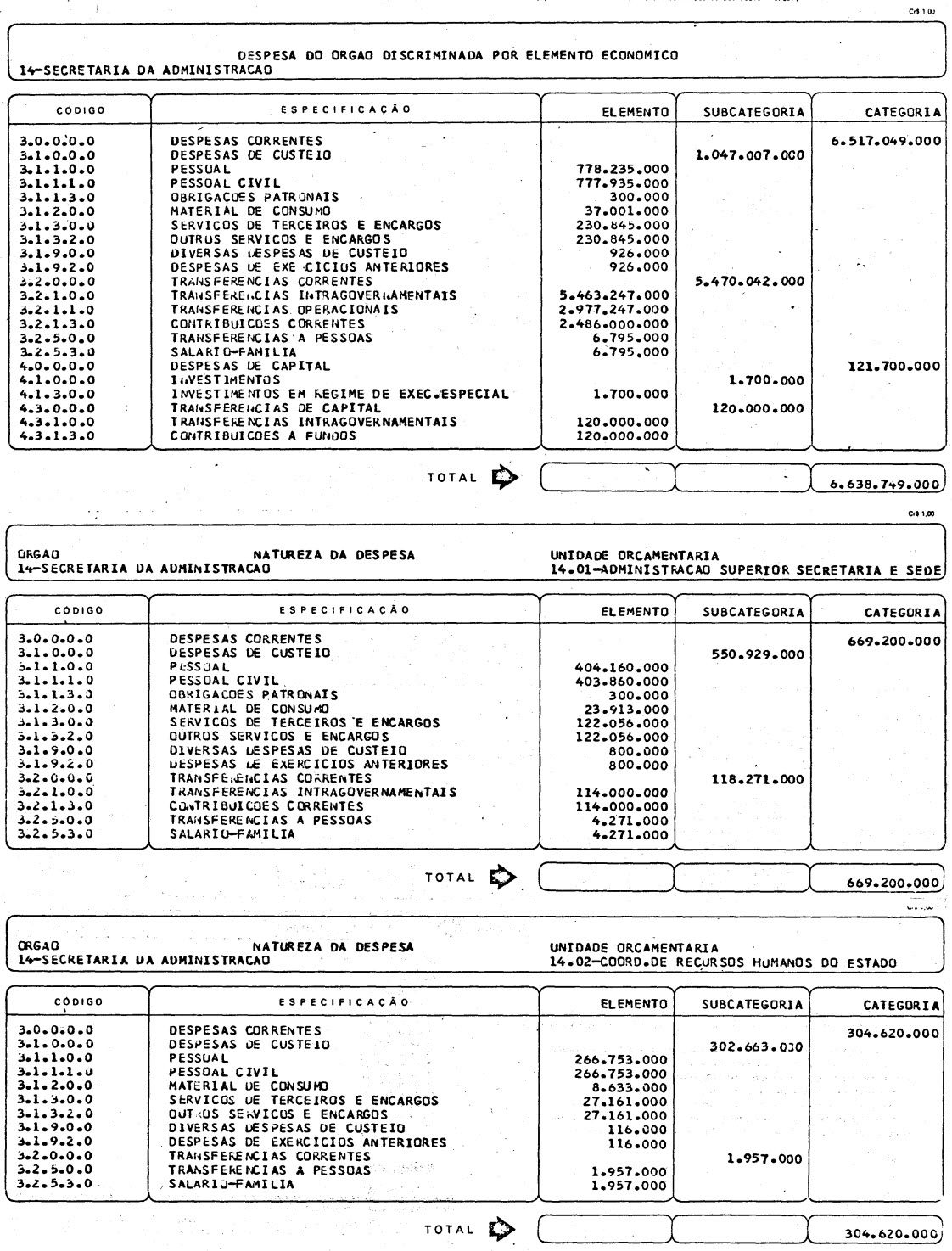042 - Ordenamento Econômico Financeiro, 2 319 - Serviços Gerais do Estado, à
