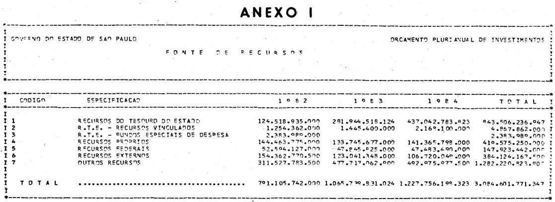 Artigo 2º - Os recursos previstos para o financiamento do Orçamento Plurianual de Investimentos, para o triênio de 1982 a 1984, estão distribuídos conforme o Anexo I, que integra esta lei.