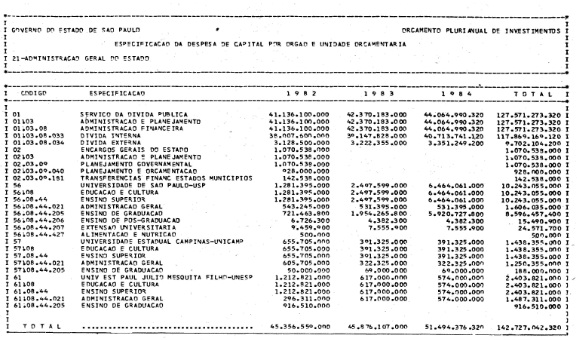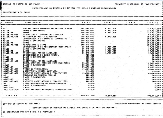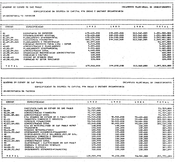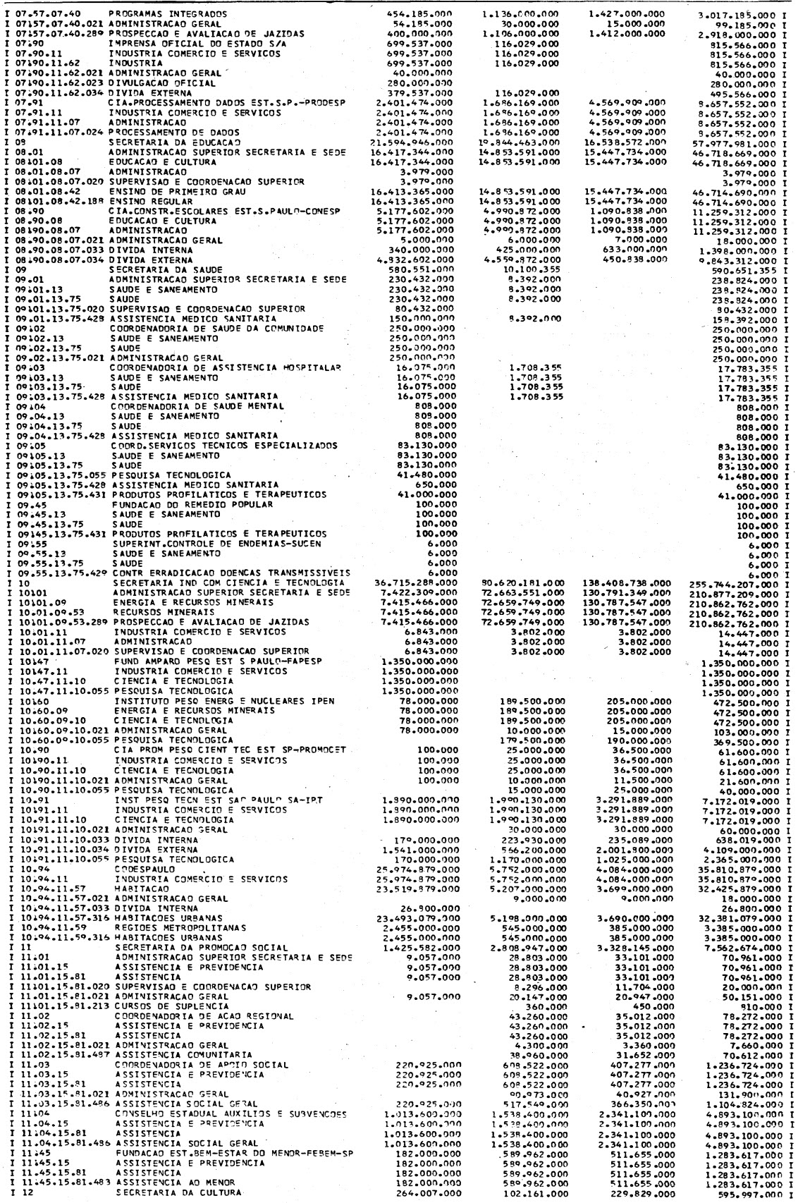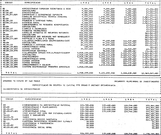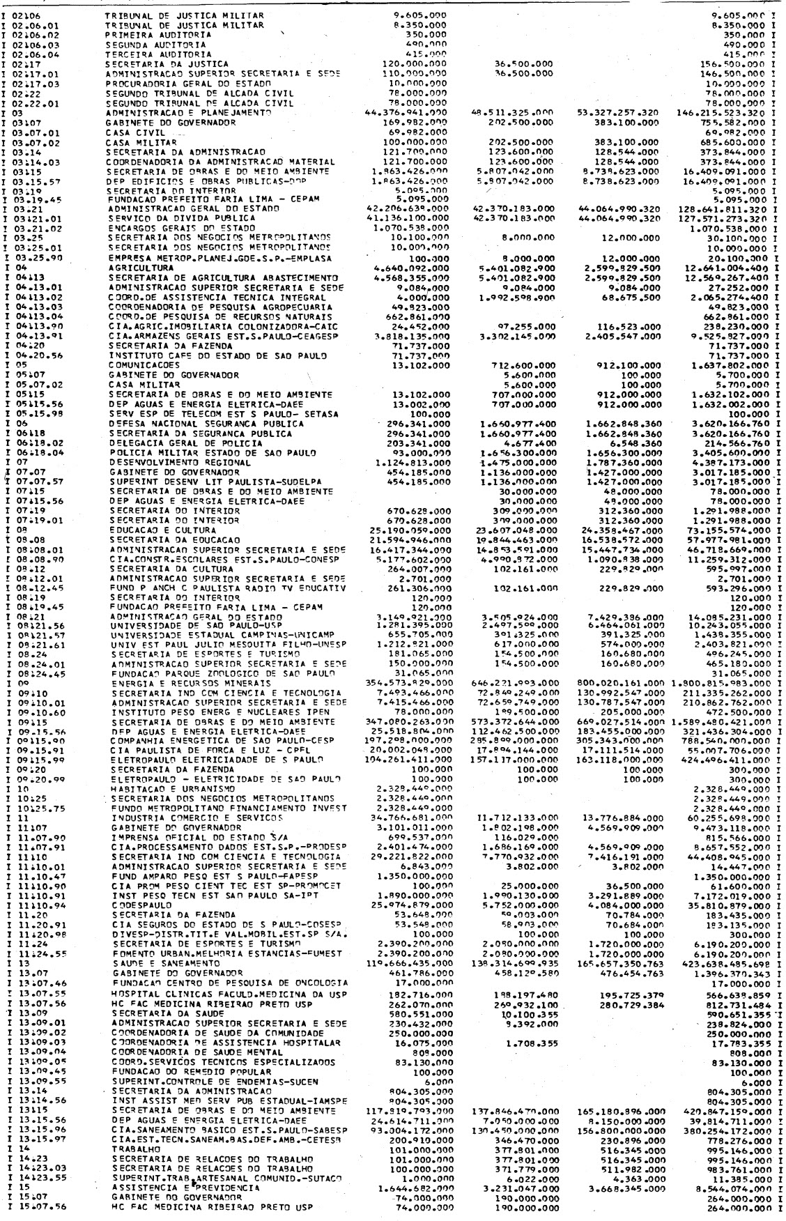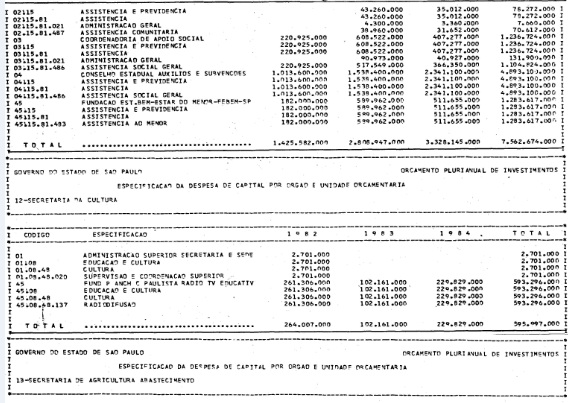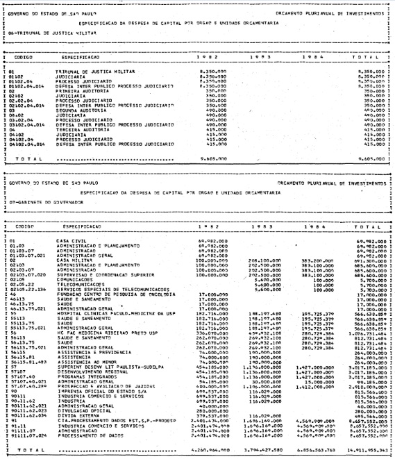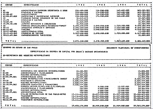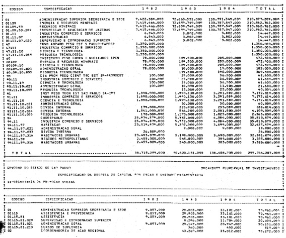 Artigo 1º - Os recursos do Orçamento Plurianual de Investimentos, para o triênio de 1982 a 1984, são estimados em CrS 3.084.601.771.347,00 (três trilhões, oitenta e quatro bilhões. seiscentos e um milhões, setecentos e setenta e um mil e trezentos e quarenta e sete cruzeiros) e, em igual montante, no mesmo período, os dispêndios.