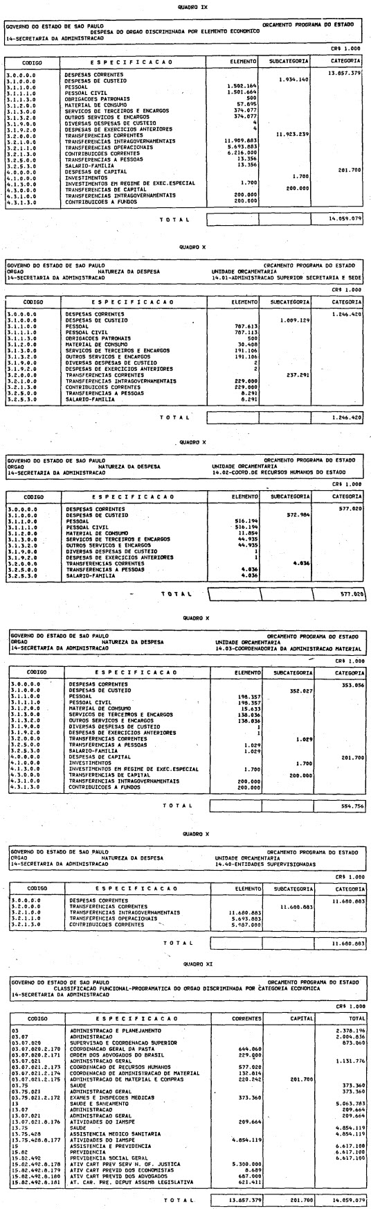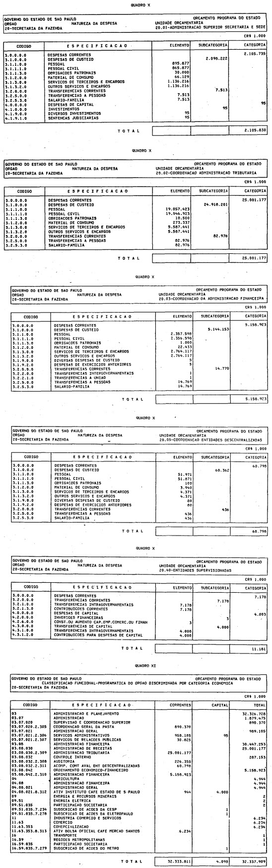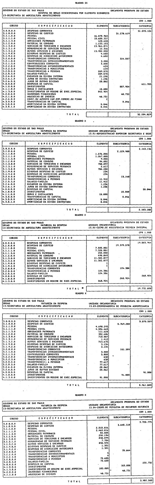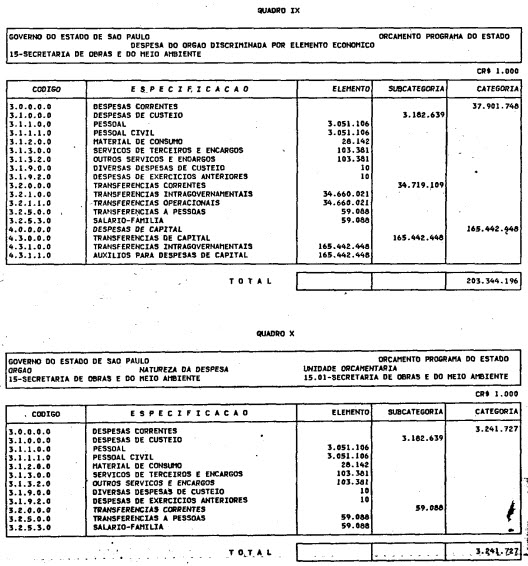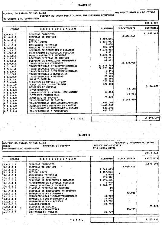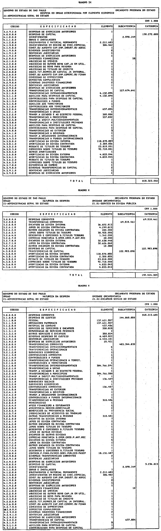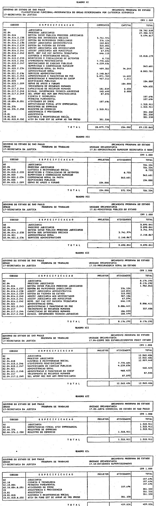 com o seguinte desdobramento por Categoria Econômicas, Órgãos e Categorias de