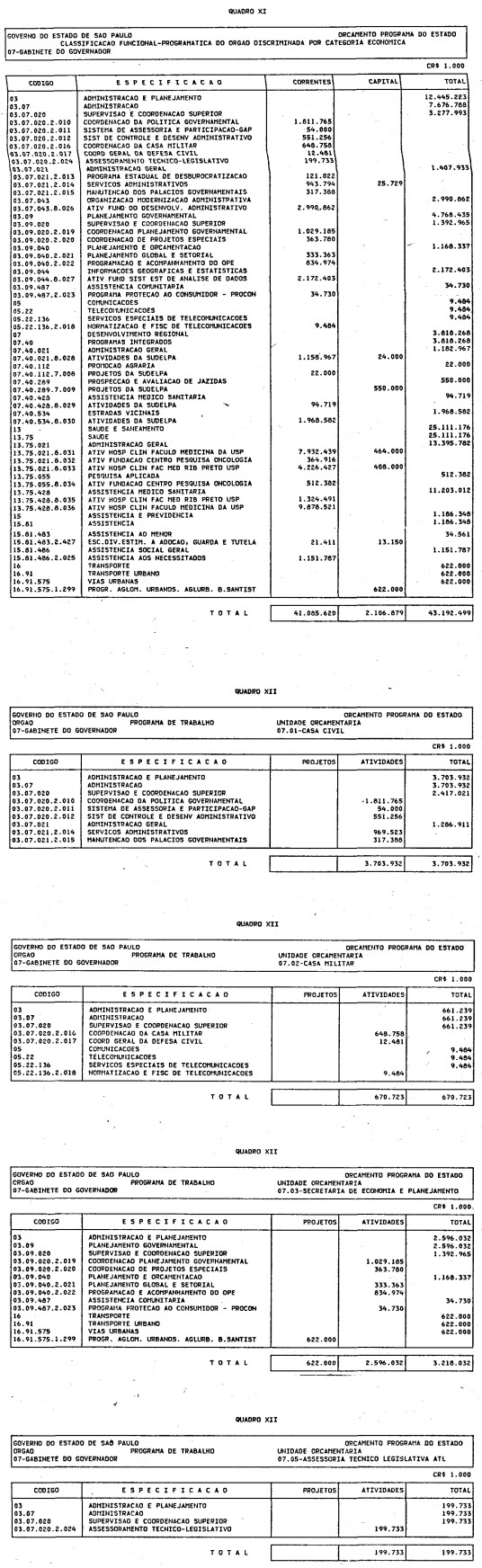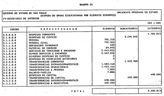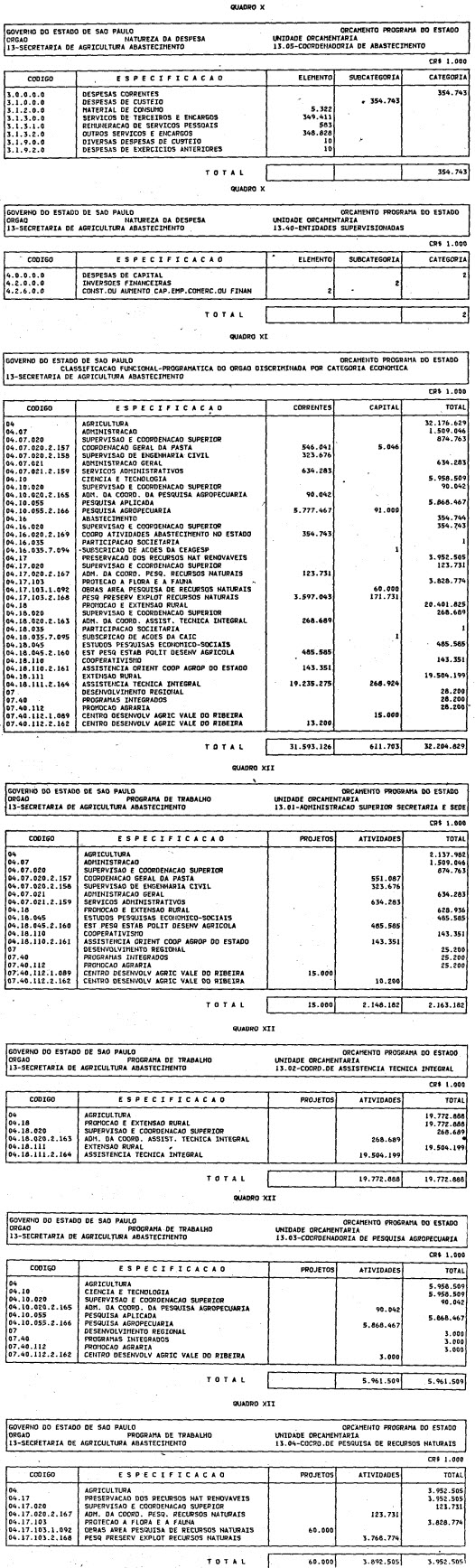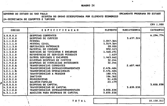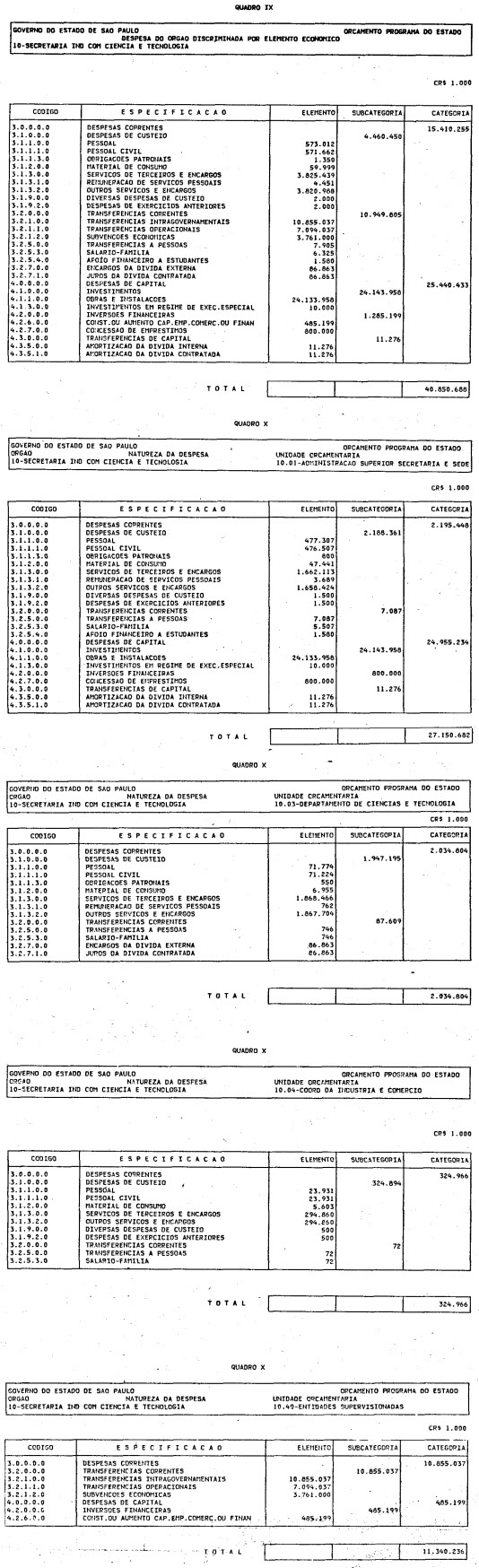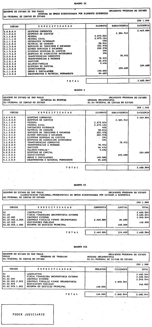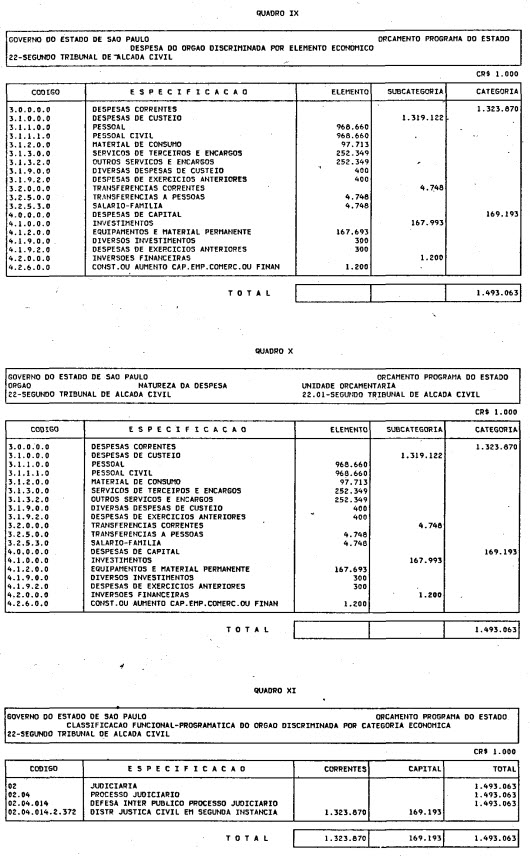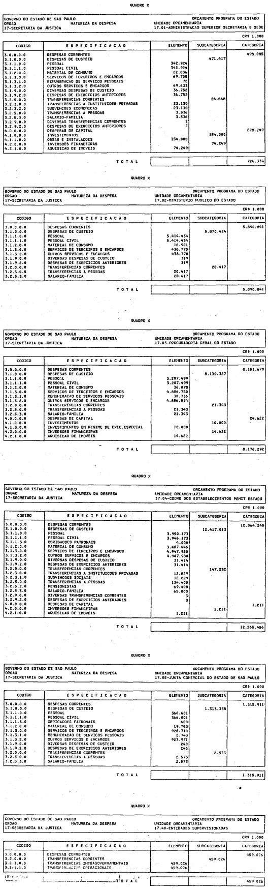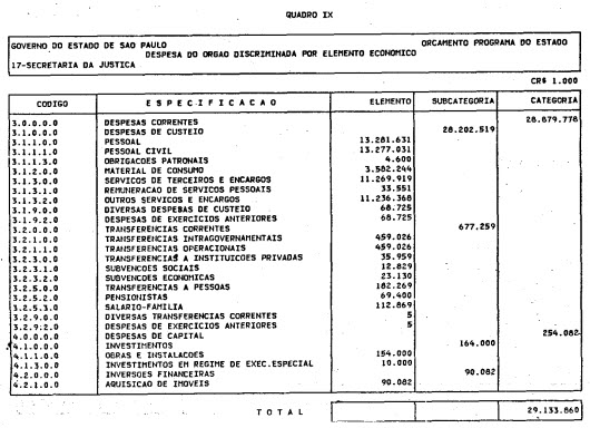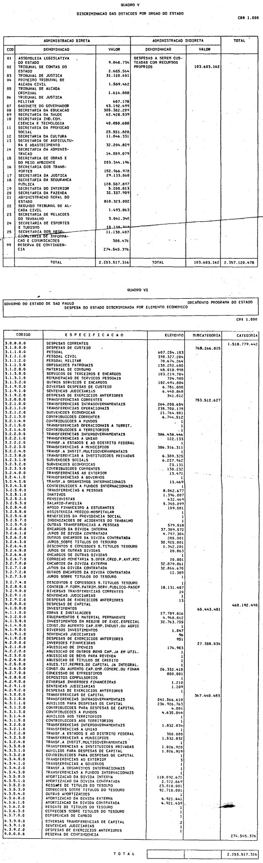 com o seguinte desdobramento por Categoria Econômicas, Órgãos e Categorias de