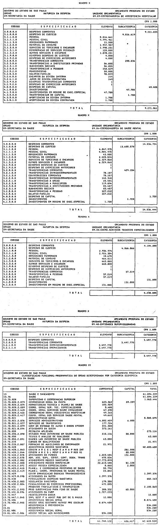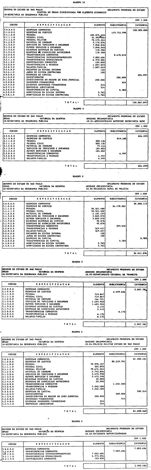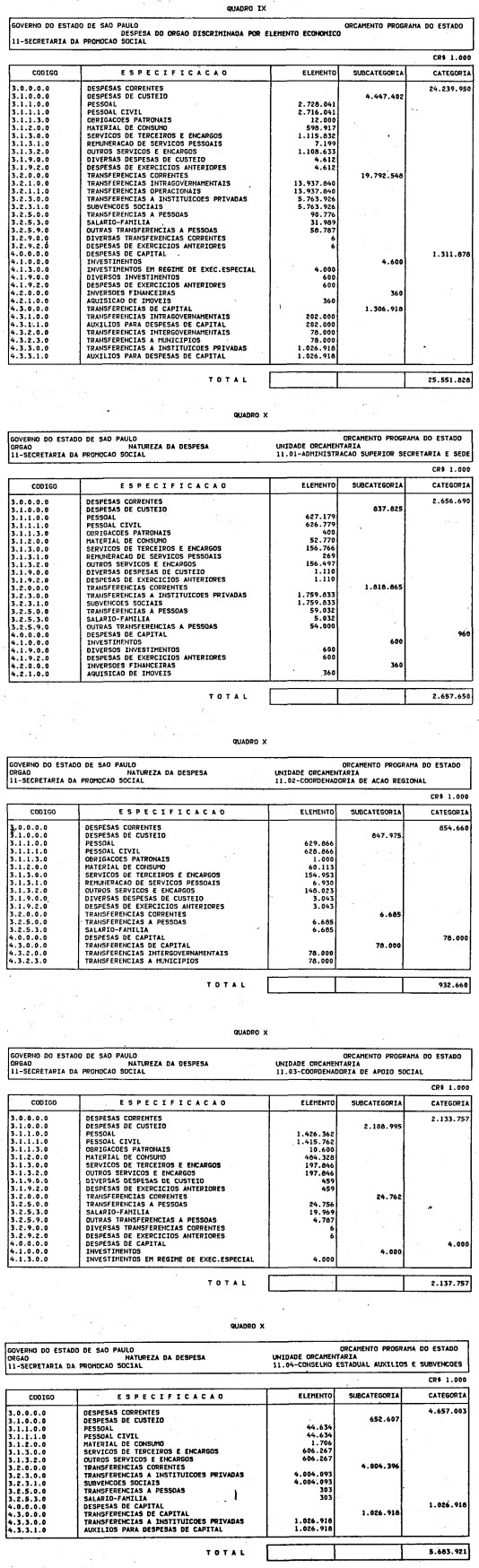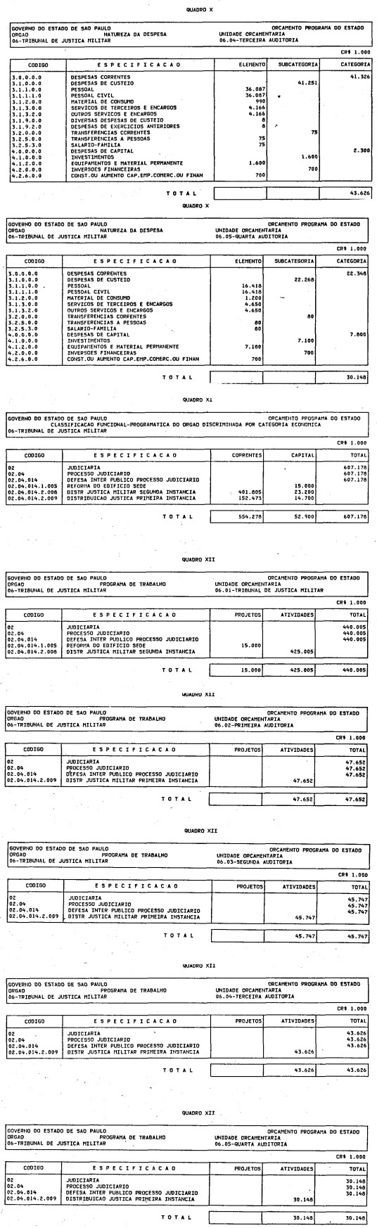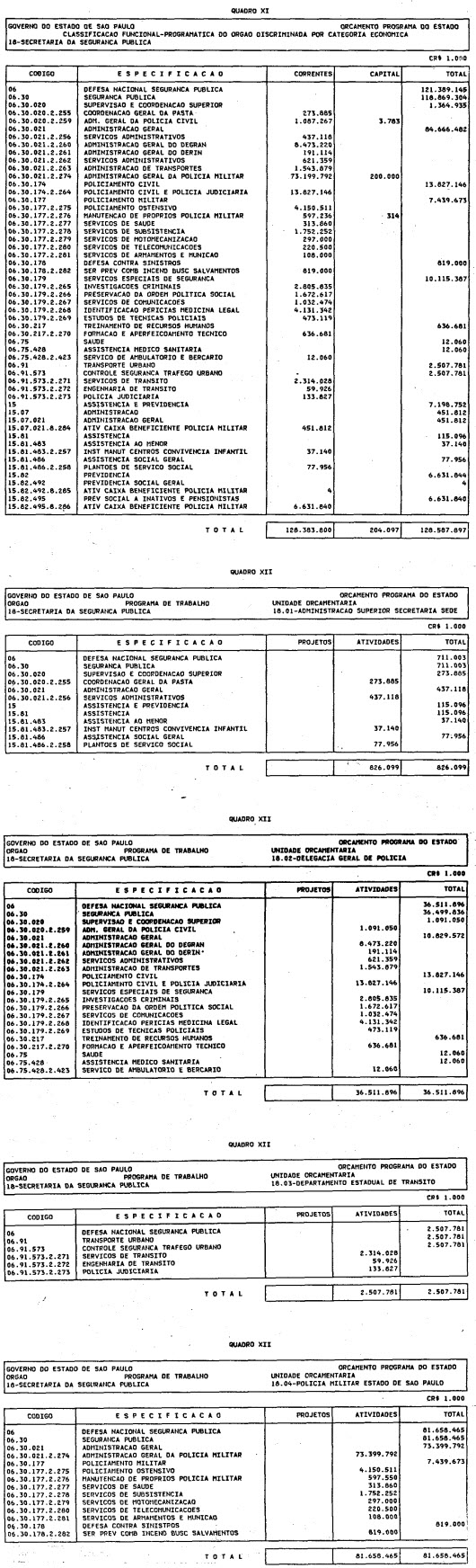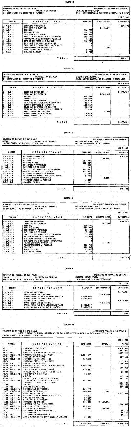 com o seguinte desdobramento por Categoria Econômicas, Órgãos e Categorias de
