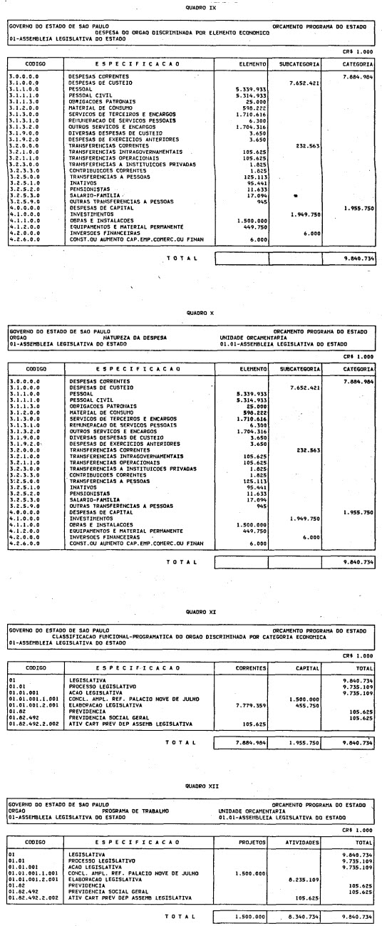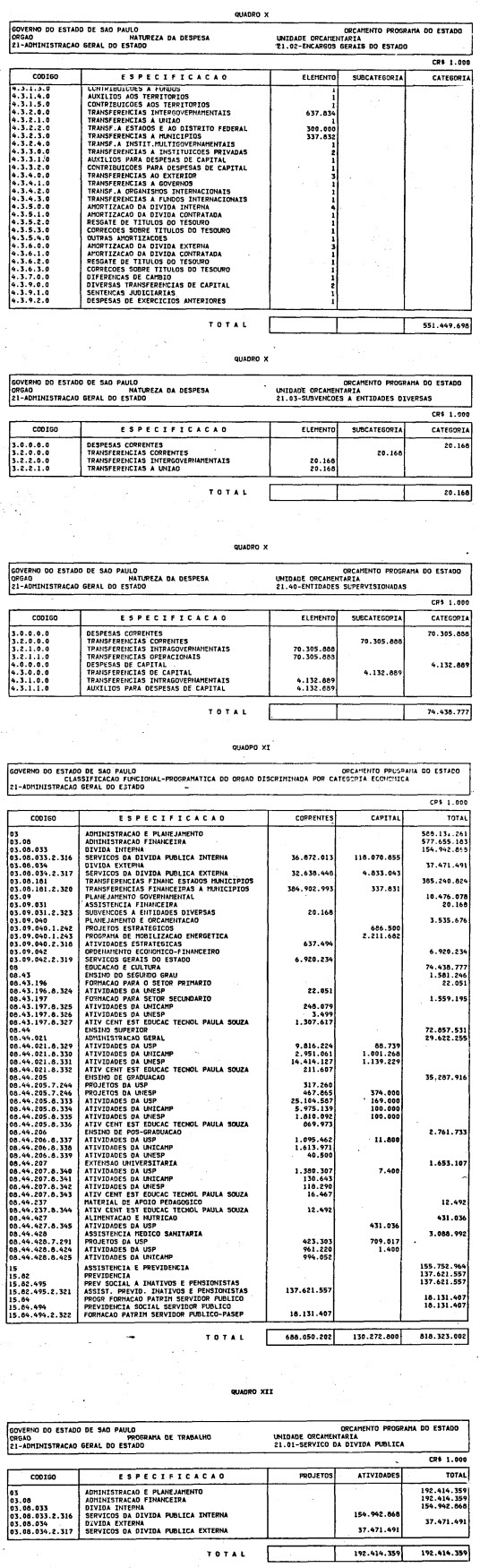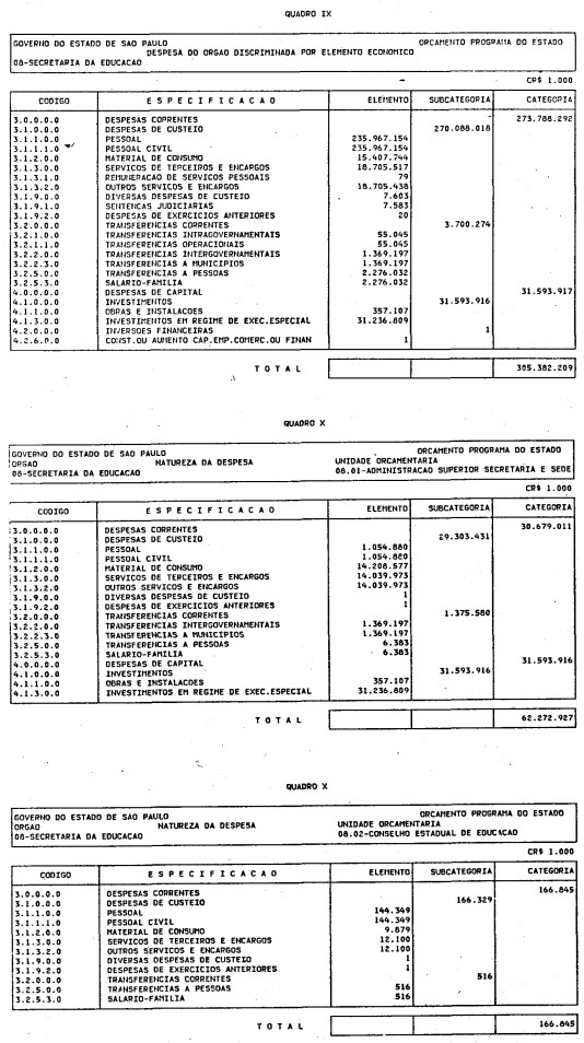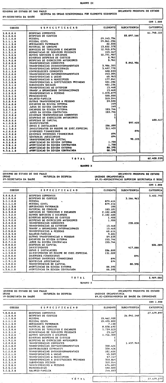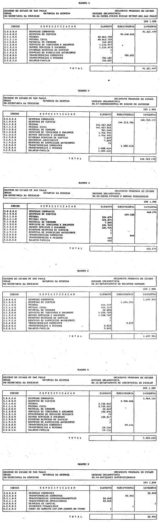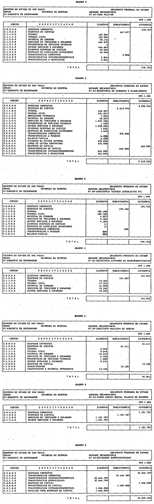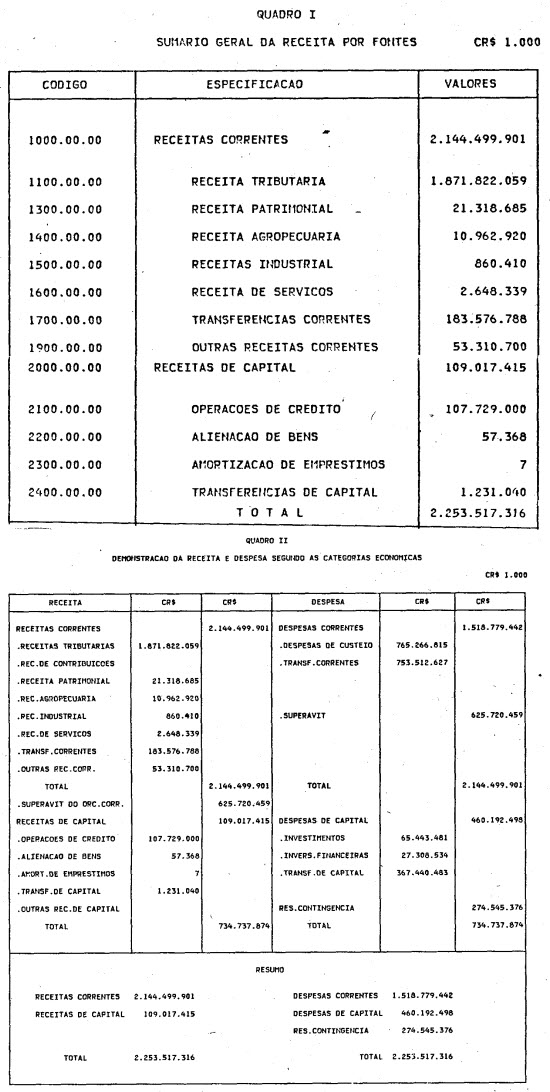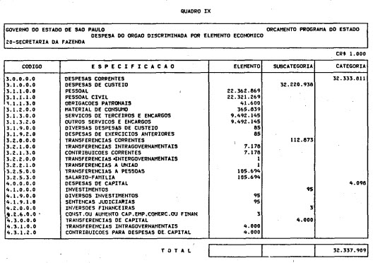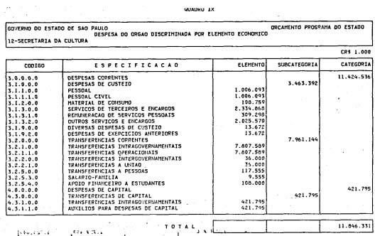 com o seguinte desdobramento por Categoria Econômicas, Órgãos e Categorias de