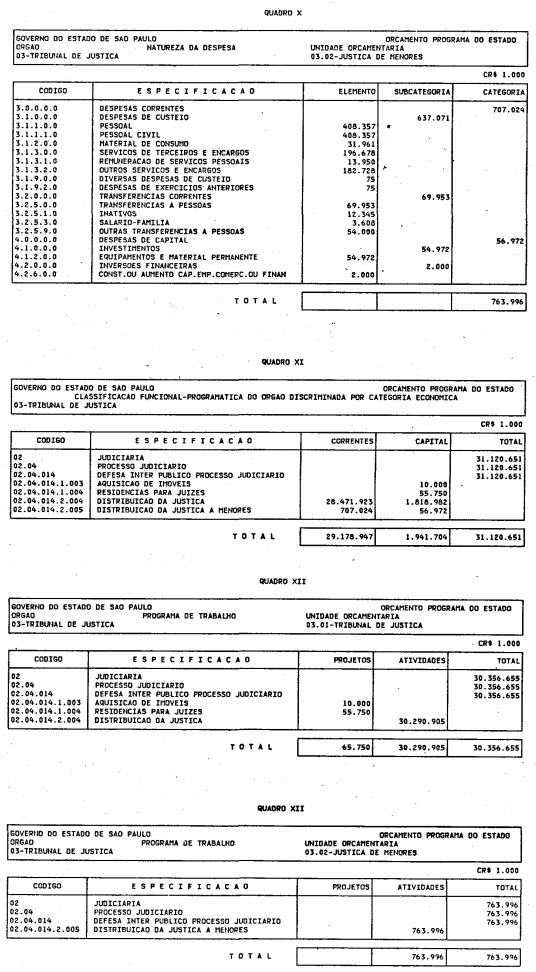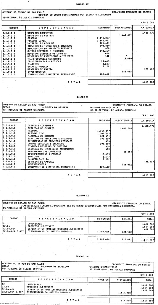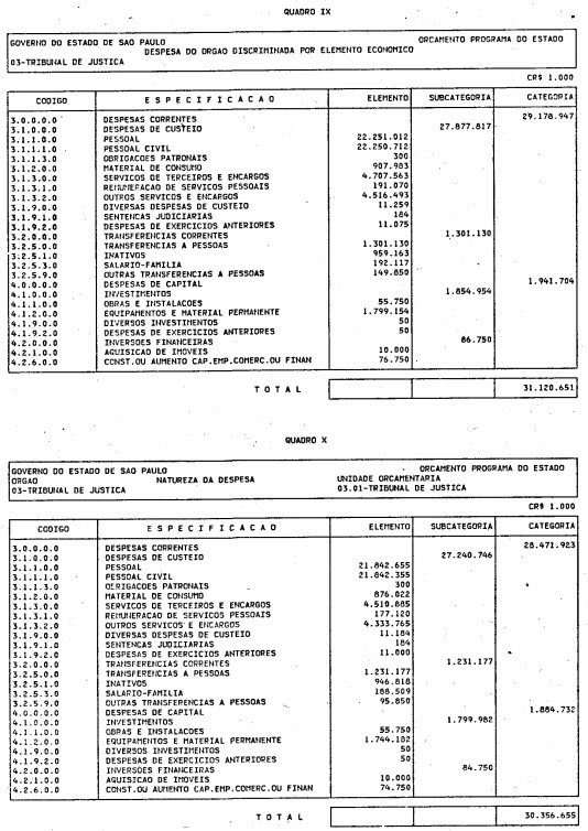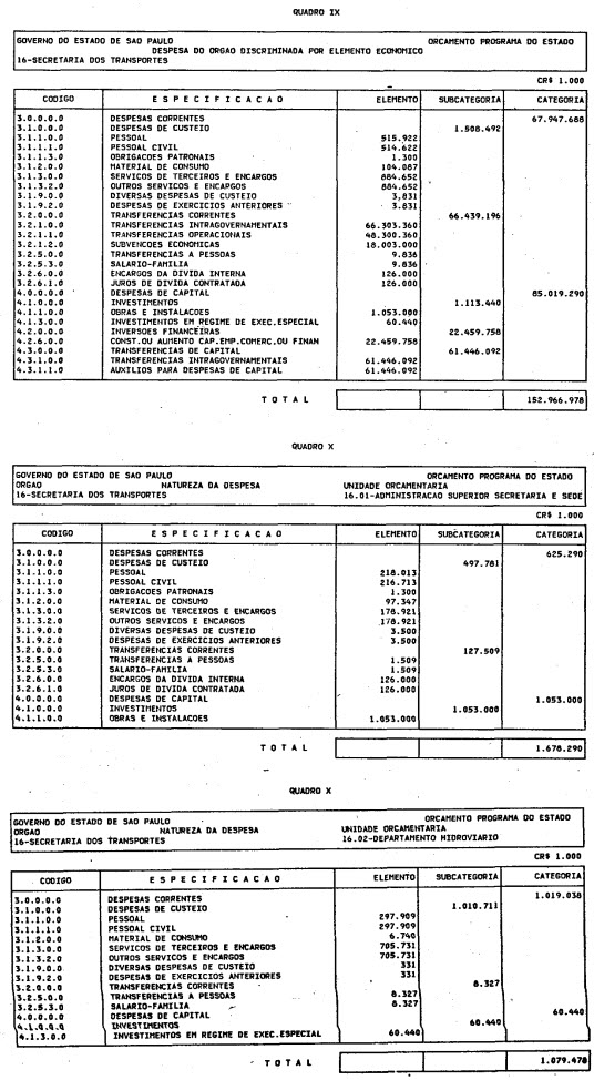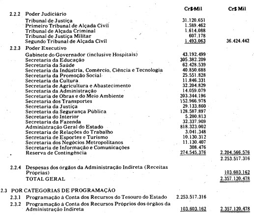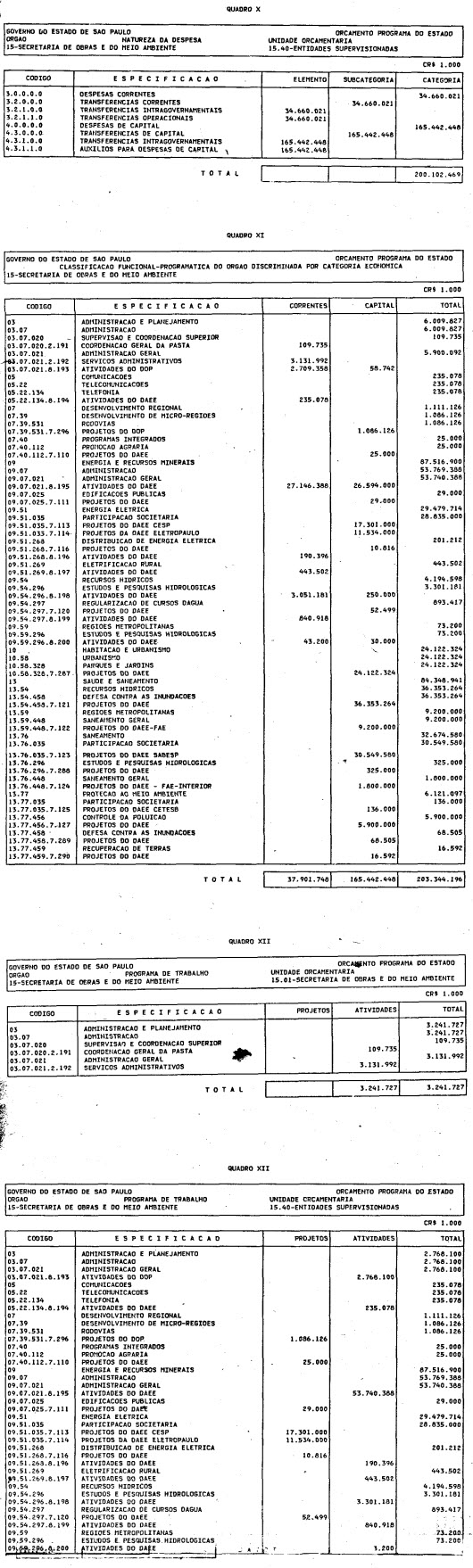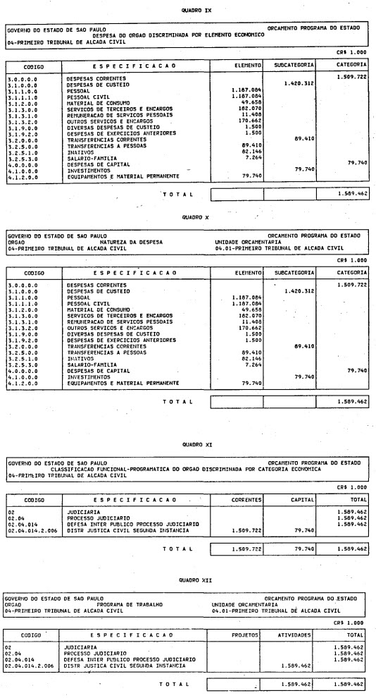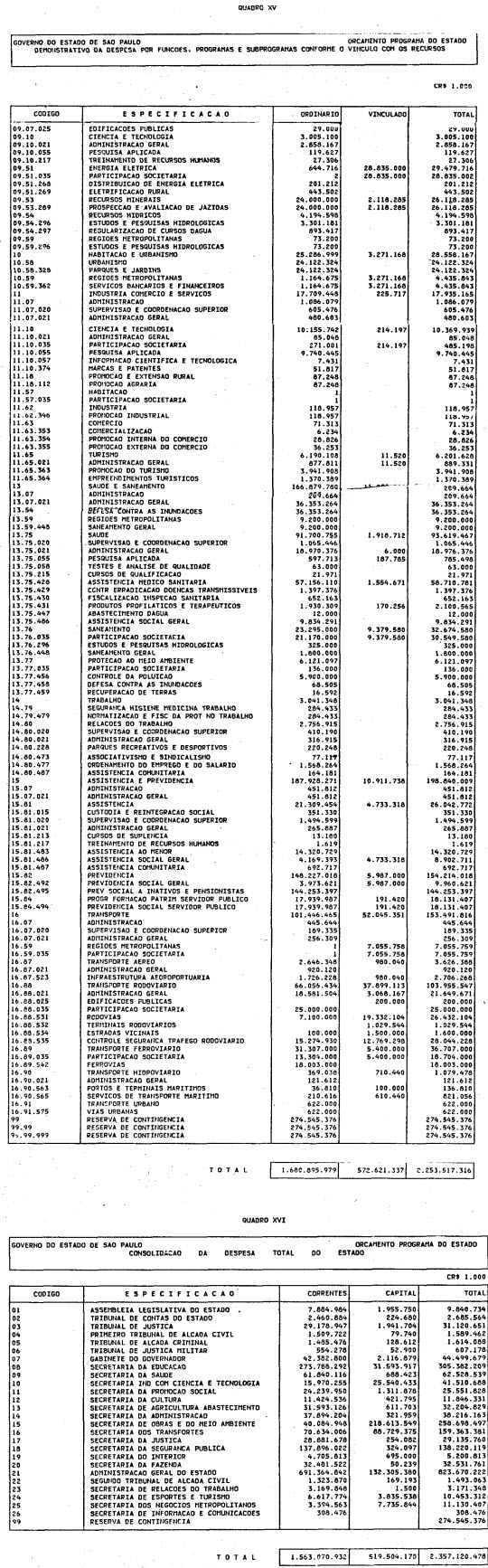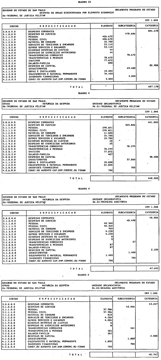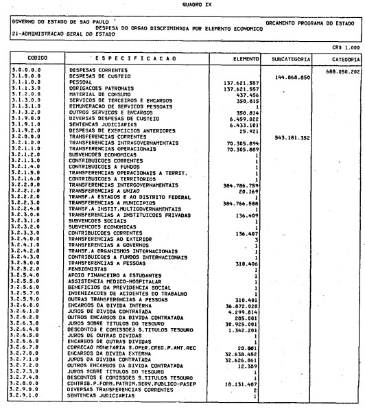 com o seguinte desdobramento por Categoria Econômicas, Órgãos e Categorias de