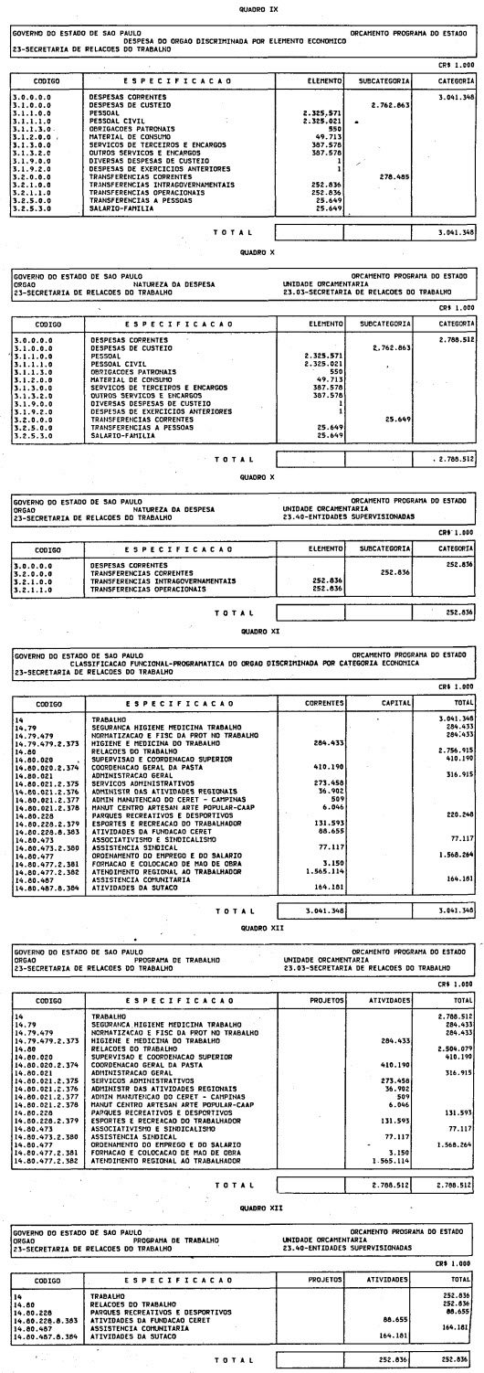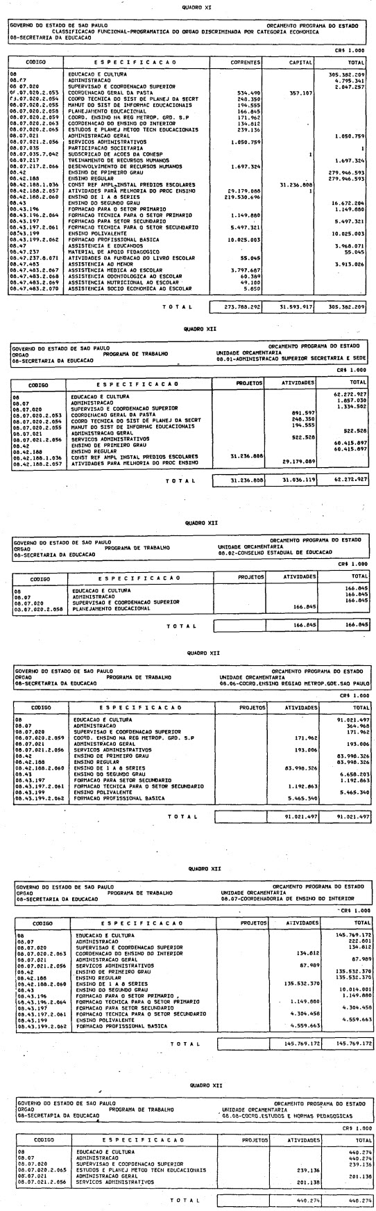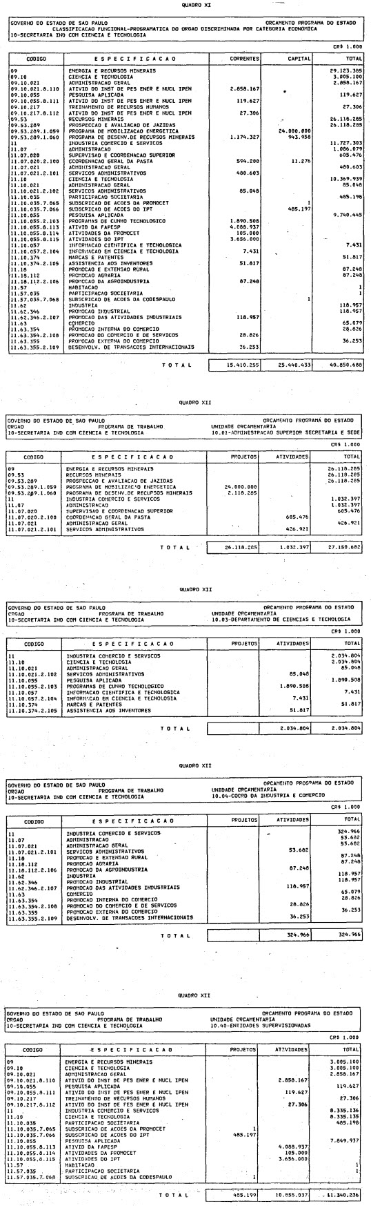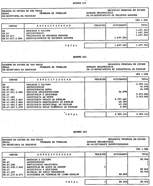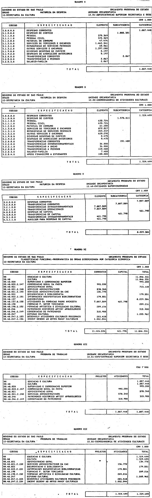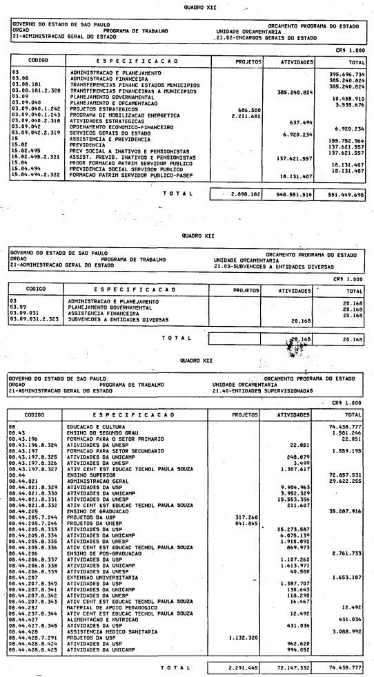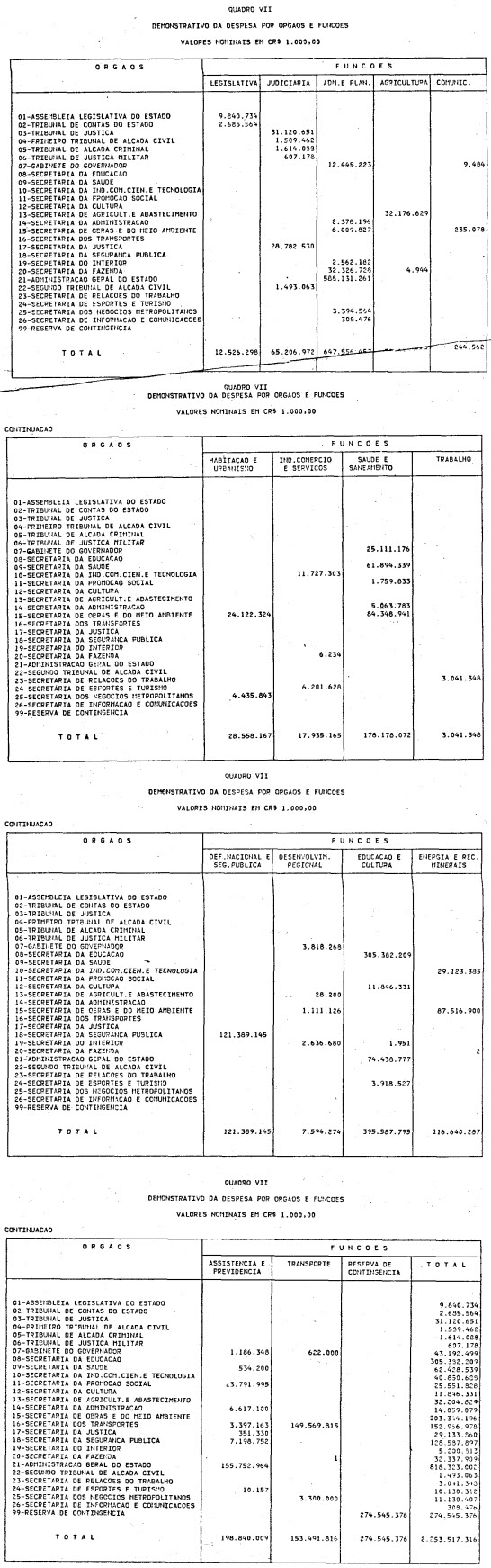 com o seguinte desdobramento por Categoria Econômicas, Órgãos e Categorias de