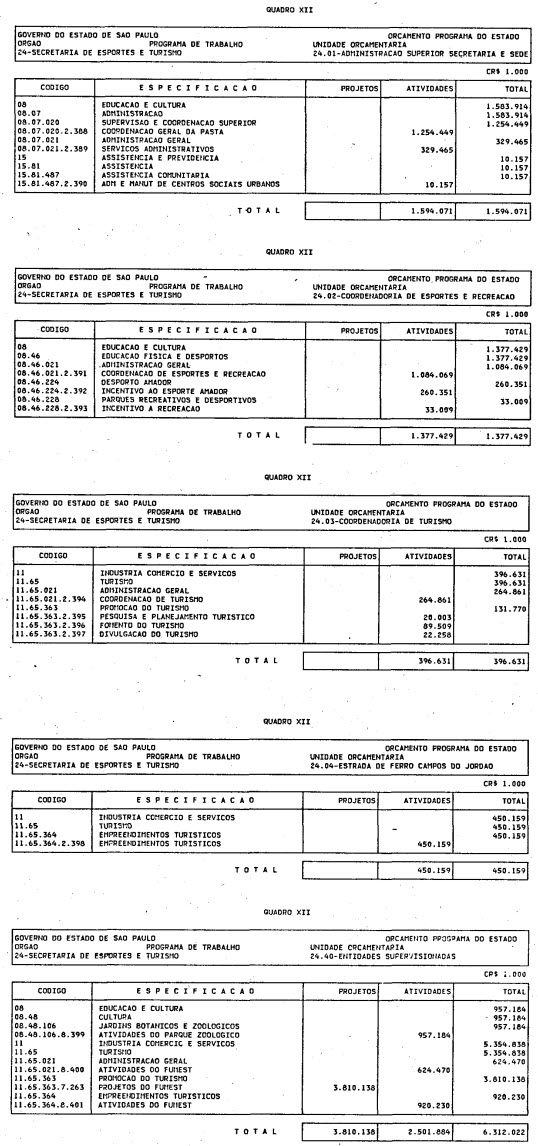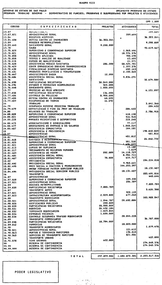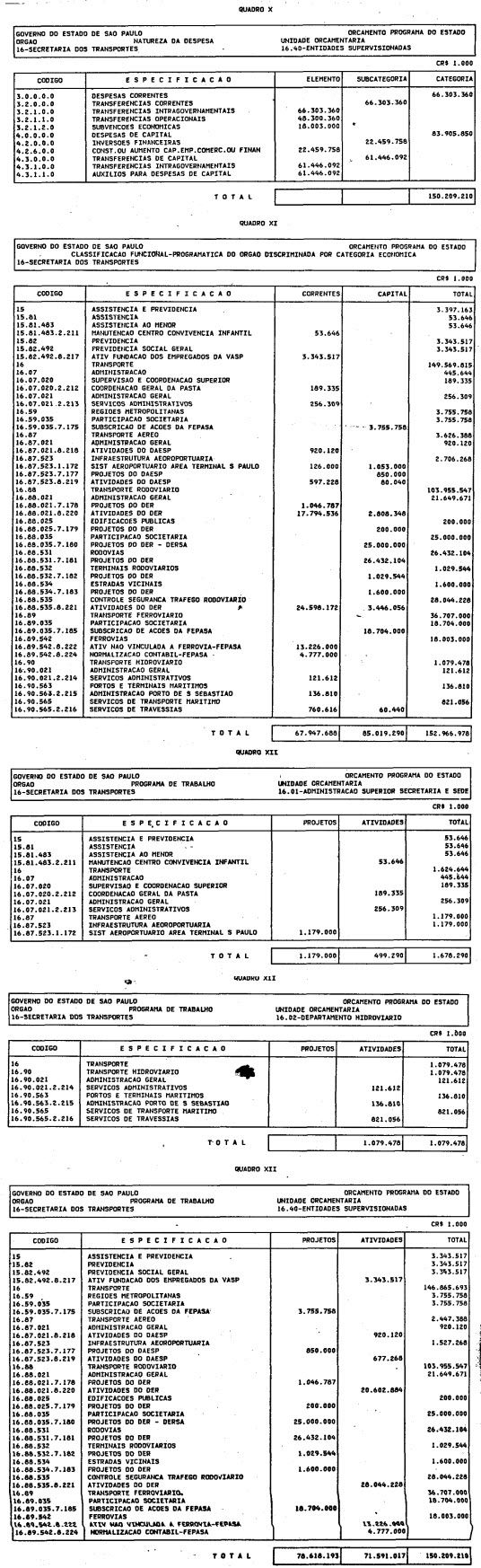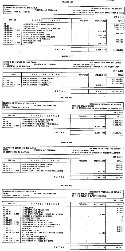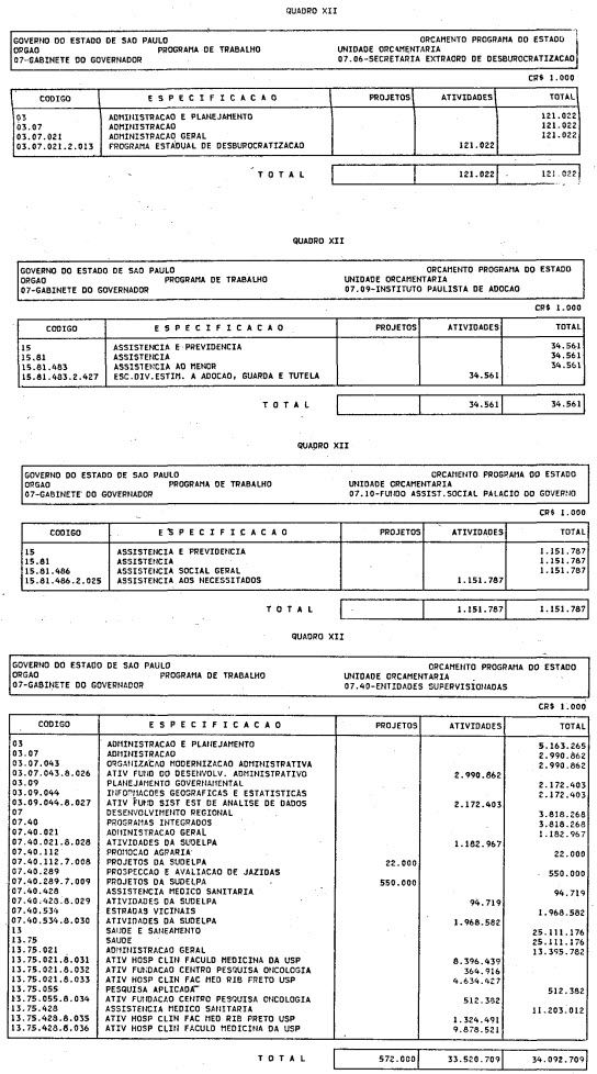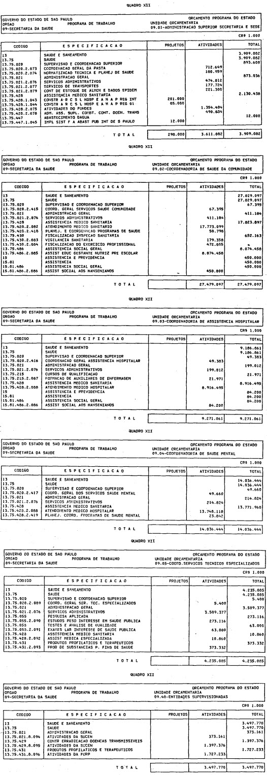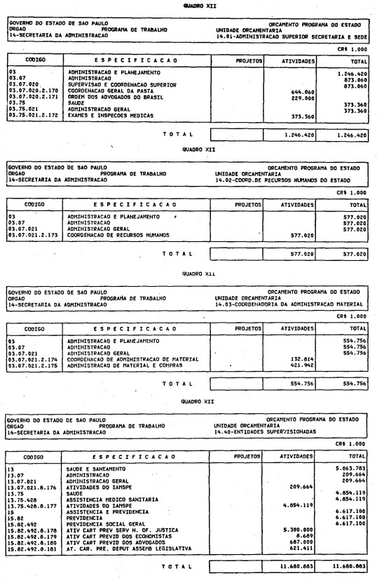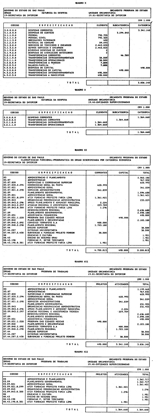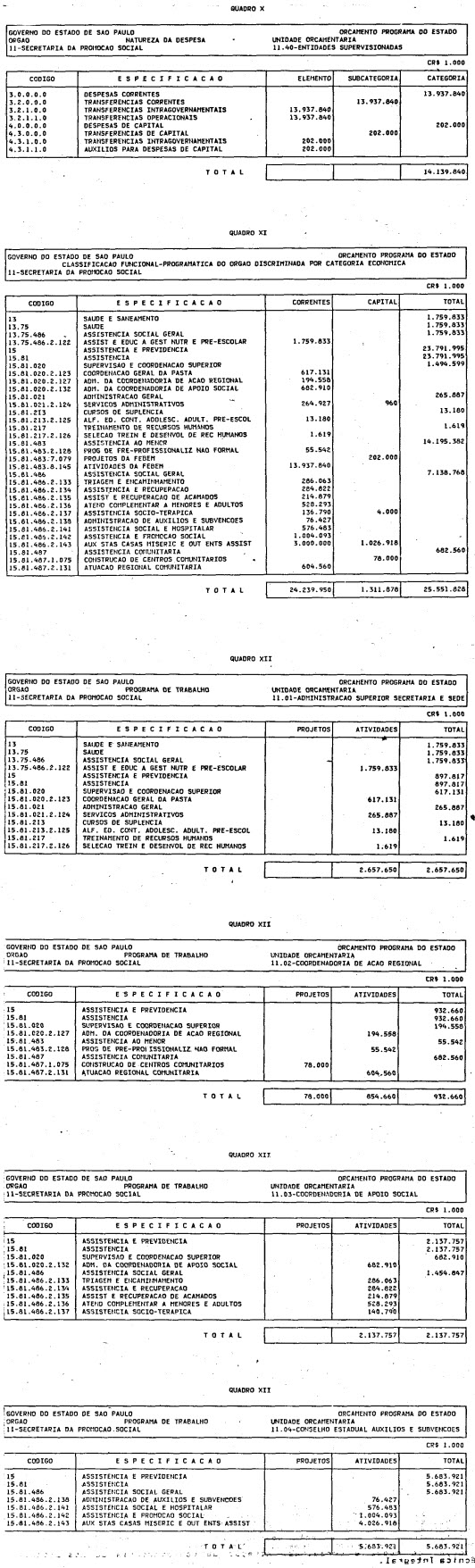 com o seguinte desdobramento por Categoria Econômicas, Órgãos e Categorias de