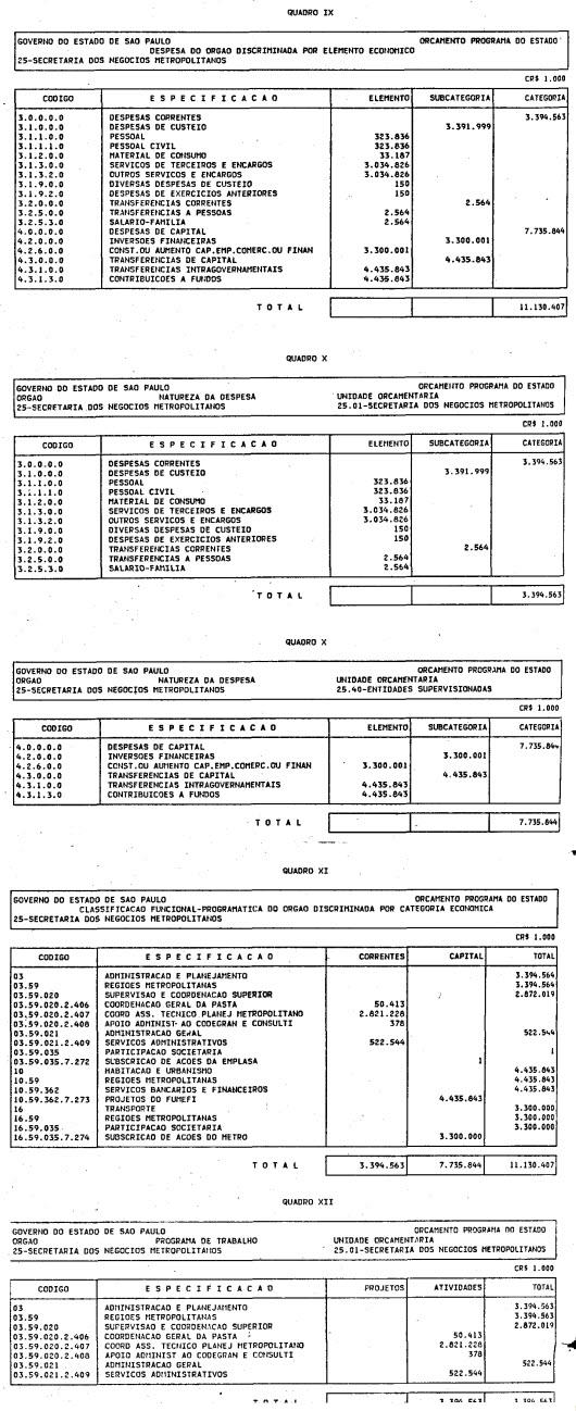 Planejamento e Administração Metropolitana da Grande São Paulo; Companhia do