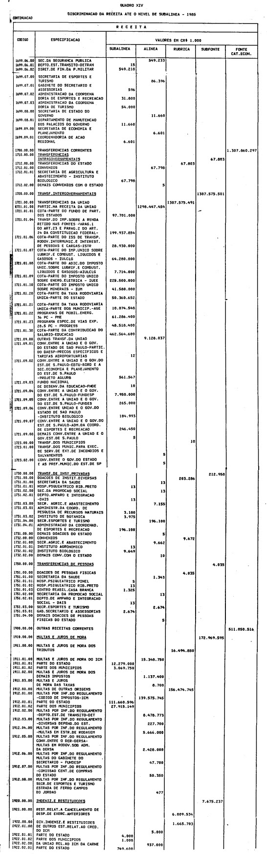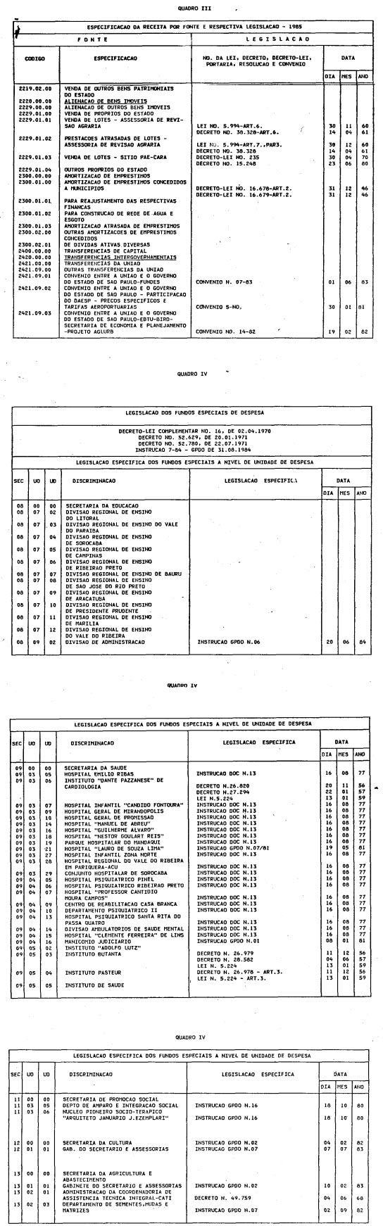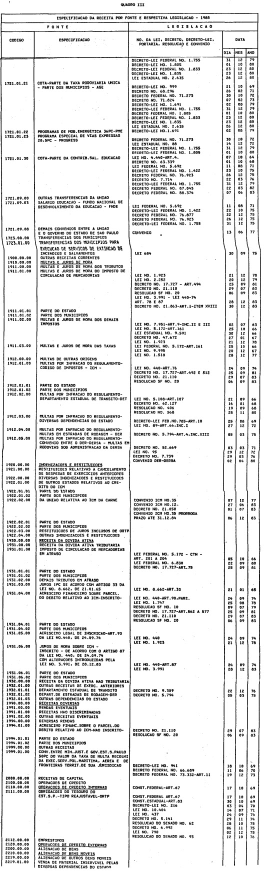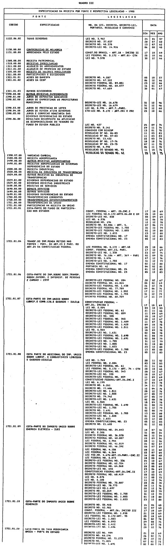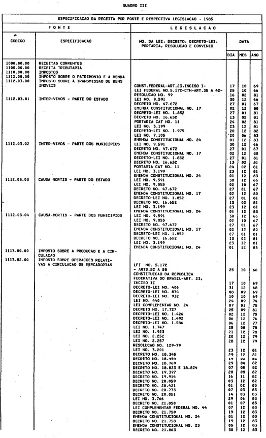 exercício de 1985, discriminado nas tabelas explicativas que