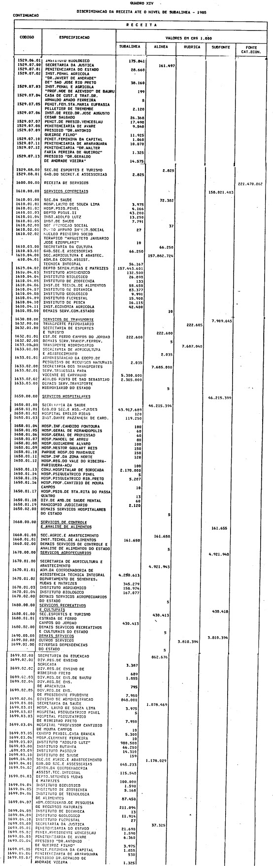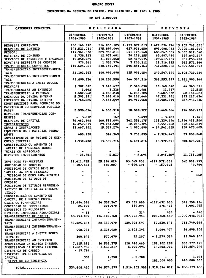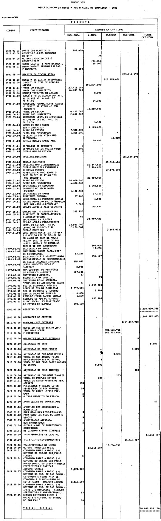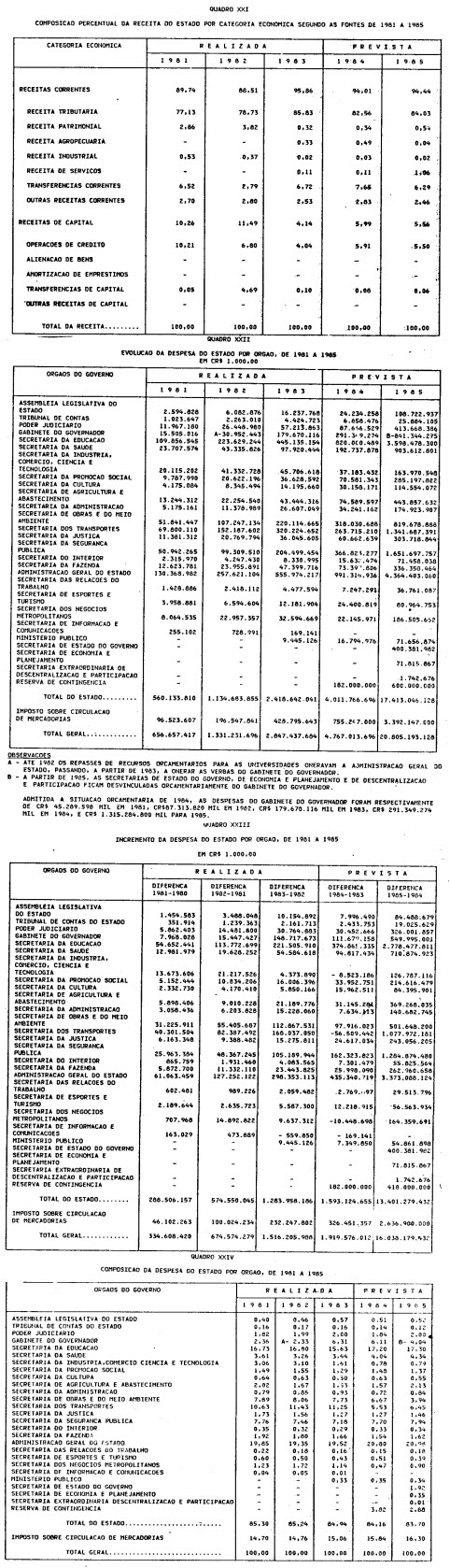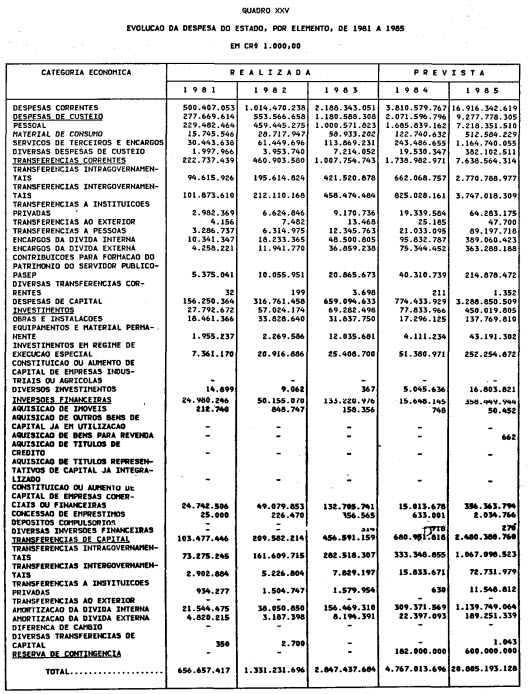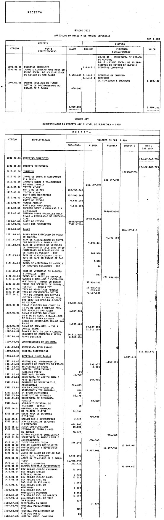 exercício de 1985, discriminado nas tabelas explicativas que