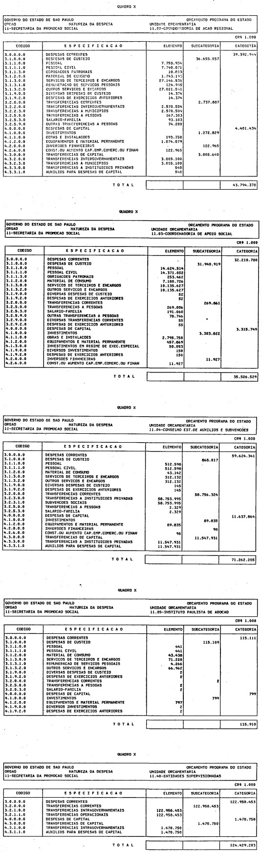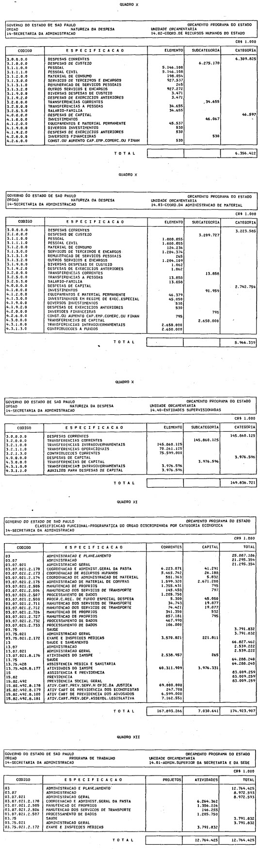 Administração Indireta, exceto os dos orgãos que