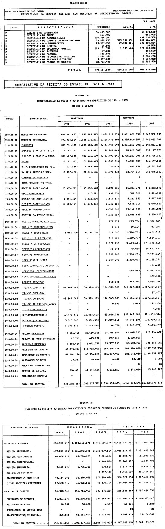 Orça a receita e fixa a despesa do Orçamento-Programa do Estado para o exercício de 1985