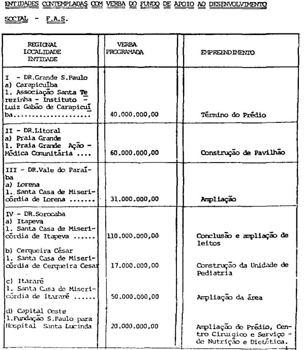 Entidades contempladas com verba do Fundo de Apoio ao Desenvolvimento Social - F.A.S.