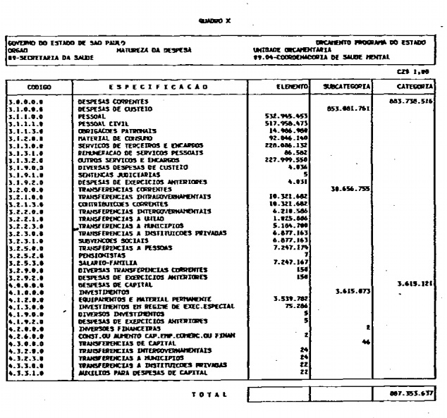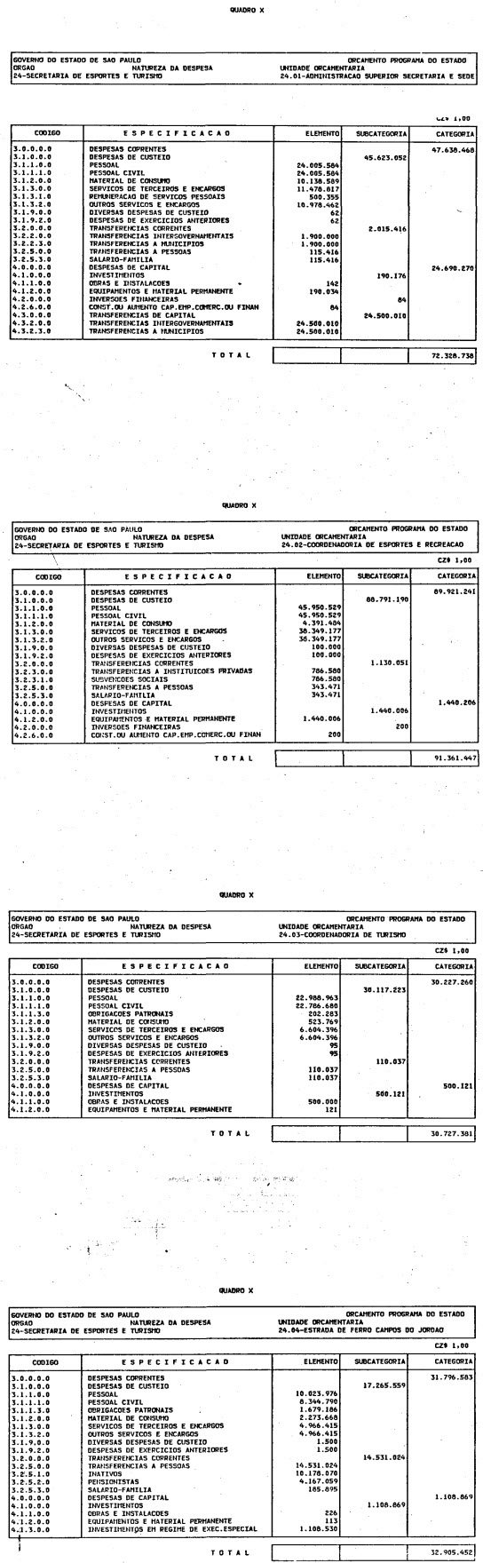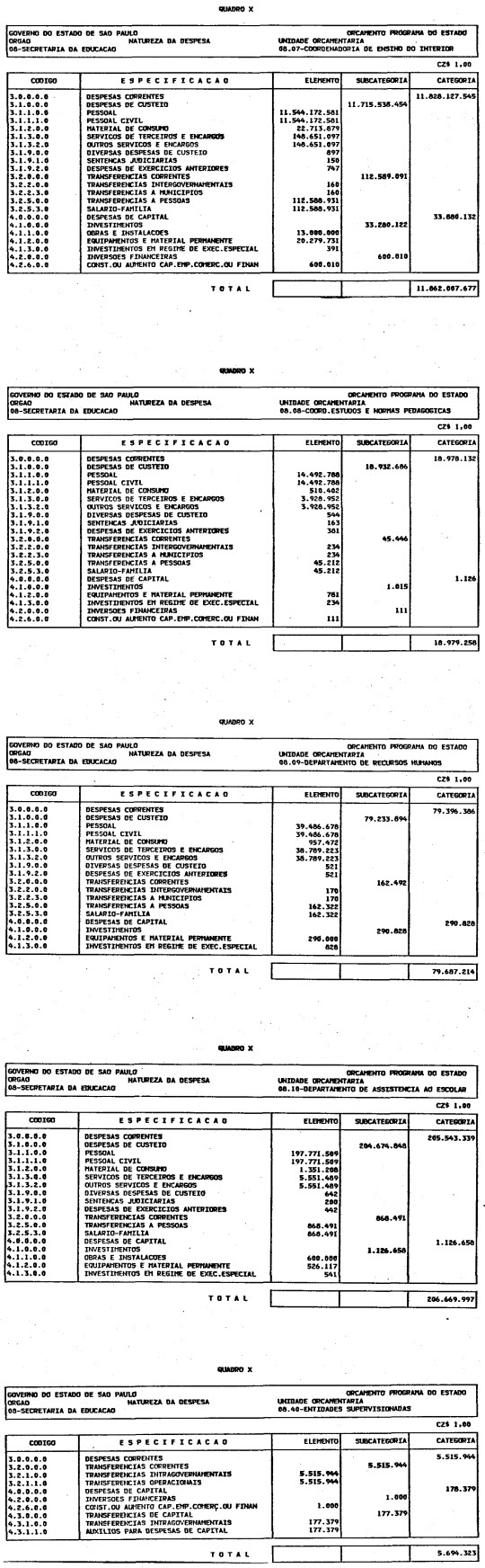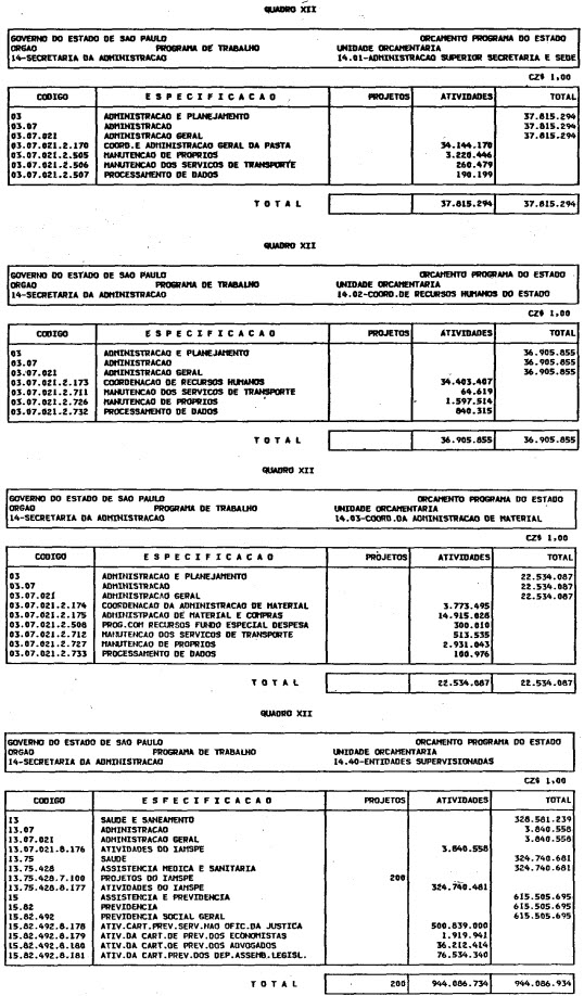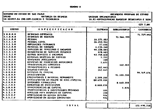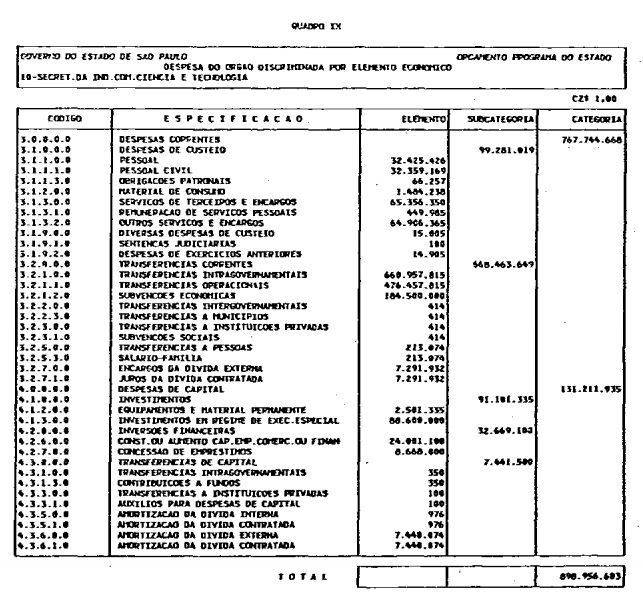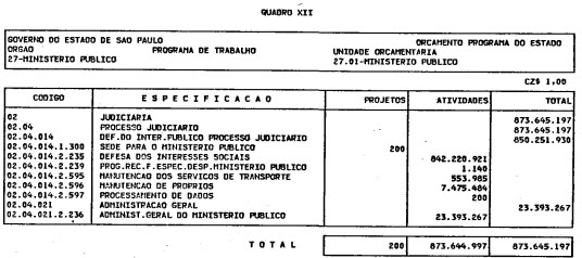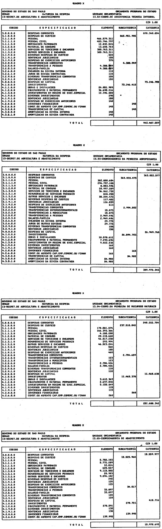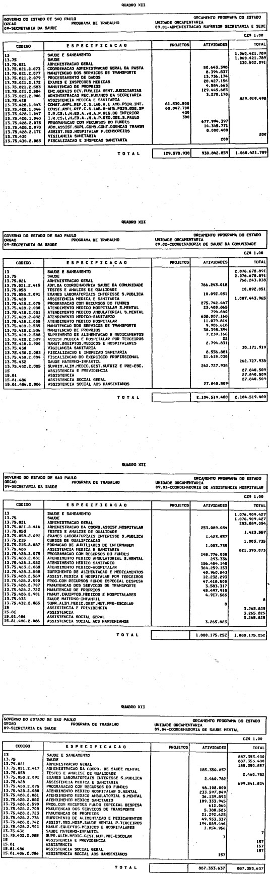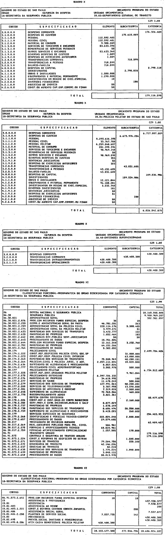 Artigo 1º - O Orçamento-Programa do Estado, para o exercício de 1987, discriminado nas tabelas explicativas que compreendem os quadros I a XII que integram esta lei e os de XIII a XXVII que a acompanham, orça a Receita e fixa a Despesa em valores iguais a Cz$ 138.066.415.735 (cento e trinta e oito bilhões, sessenta e seis milhões, quatrocentos e quinze mil, setecentos e trinta e cinco cruzados).