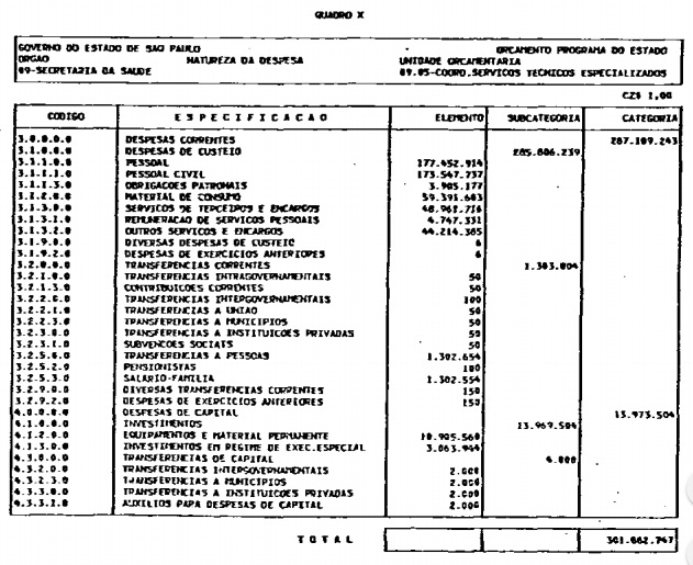040 - Planejamento e Orçamentação - reúne atividades voltadas para a elaboração da proposta orçamentária anual e orçamento plurianual de investimentos; assessoramento às Secretarias de Estado na elaboração de seus orçamentos e planos de investimentos; avaliação e definição financeira dos planos do Governo; acompanhamento e registro da realização físicas dos planos, programas e projetos do Governo.