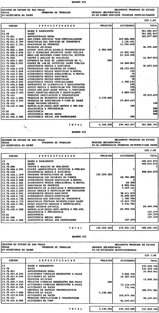 431 - Produtos Profiláticos e Terapêuticos - compreende as atividades de coleta,produção e distribuição de sangue e hemoderivados aos hospitais do Estado. Esta programação está a cargo da Fundação Hemocentro de São Paulo que atua em harmonia com o Programa Nacinal do Sangue e Hemoderivados-Pró-Sangue.