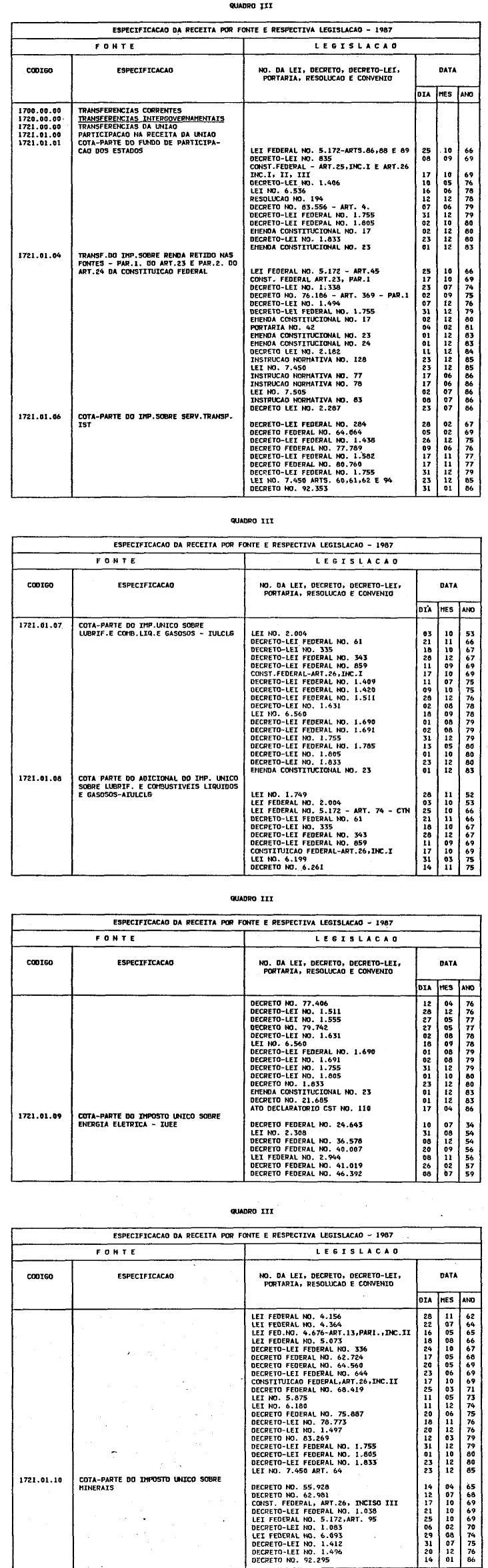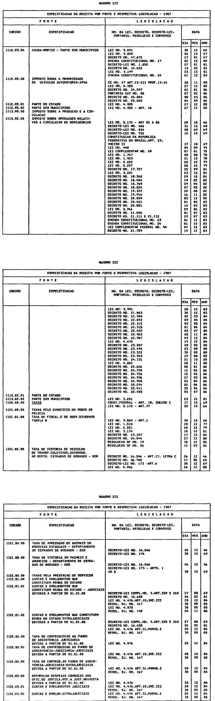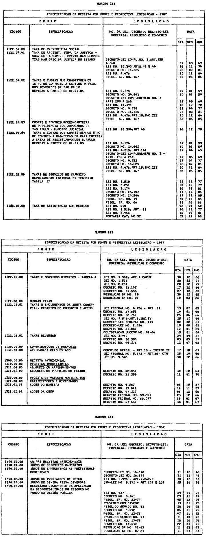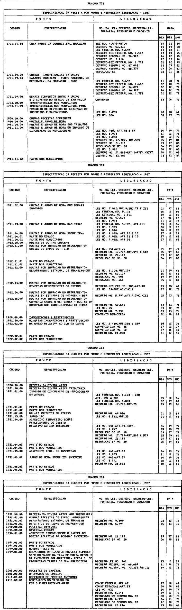 Artigo 2º - Arrecadar-se-á a Receita em conformidade da legislação em vigor e das especificações dos quadros integrantes desta lei, observada a seguinte classificação: