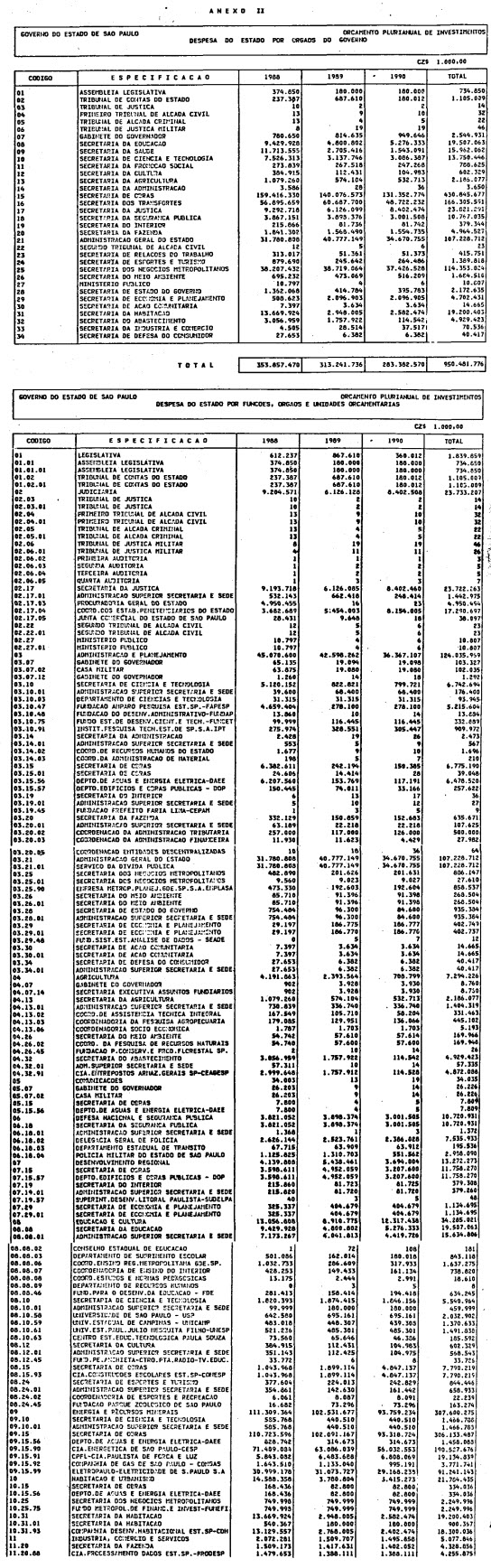 Artigo 2º - A programação das despesas de Capital e os recursos para o financiamento do Orçamento Plurianual de Investimentos para o triênio 1988 a 1990 estão discriminados nos Anexos que integram esta Lei.