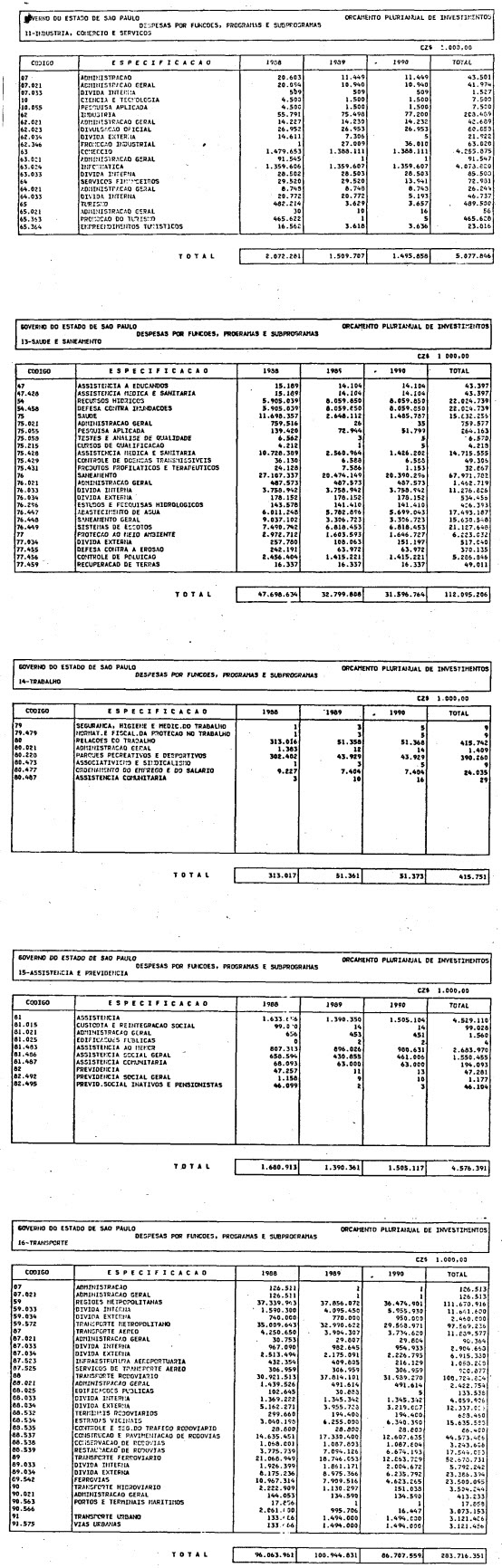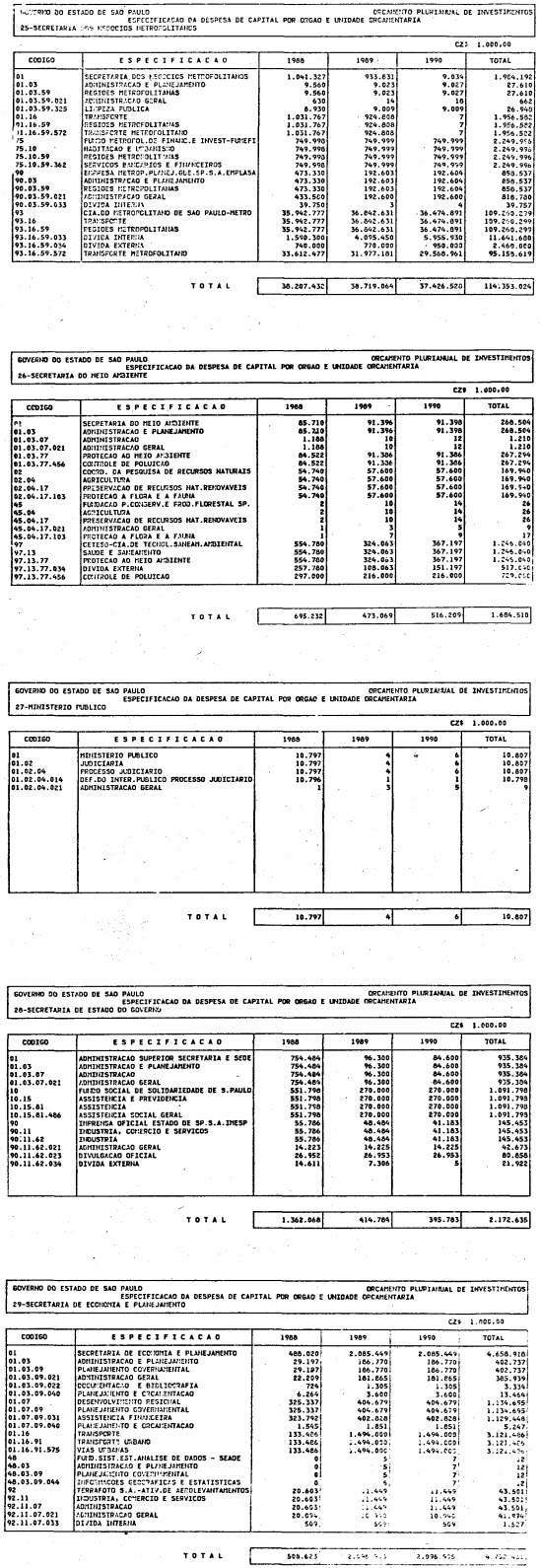 Artigo 1º - O Orçamento Plurianual de Investimentos para o triênio de 1988 a 1990, estima para o período, despesas de capital no montante de Cz$ 950.481.776.000,00 (novecentos e cinquenta bilhões, quatrocentos e oitenta e um milhões, setecentos e setenta e seis mil cruzados), a preços de 1988.