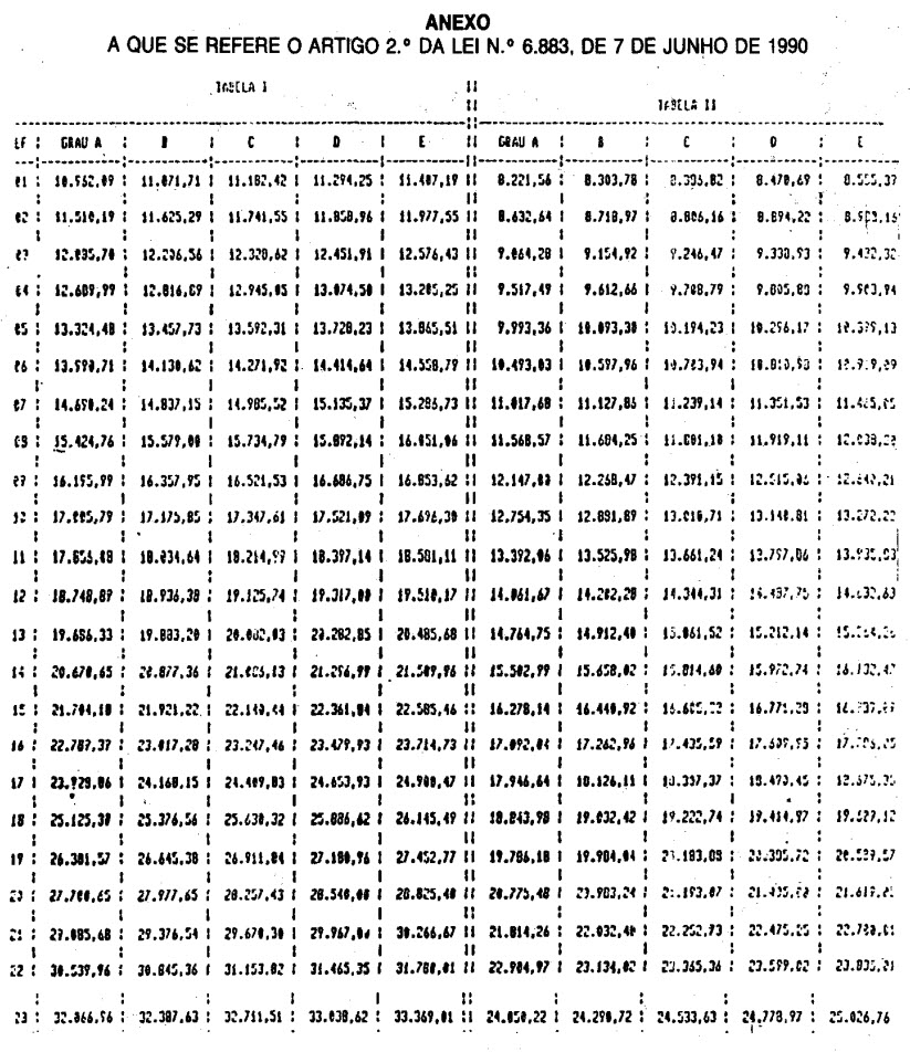 Artigo 2.º - Os valores da Escala de Vencimentos 8, a que se referem o Artigo 3.º da Lei Complementar n. 383, de 28 de dezembro de 1984 e o Artigo 3.º da Lei Complementar n. 439, de 26 de dezembro de 1985, com as alterações decorrentes da aplicação do Artigo 25 da Lei Complementar n. 467, de 2 de julho de 1986, ficam reajustados, no período de 1.º de abril de 1988 a 30 de junho de 1988, em 44% (quarenta e quatro por cento), na conformidade do Anexo desta lei.