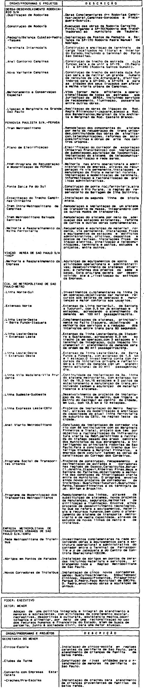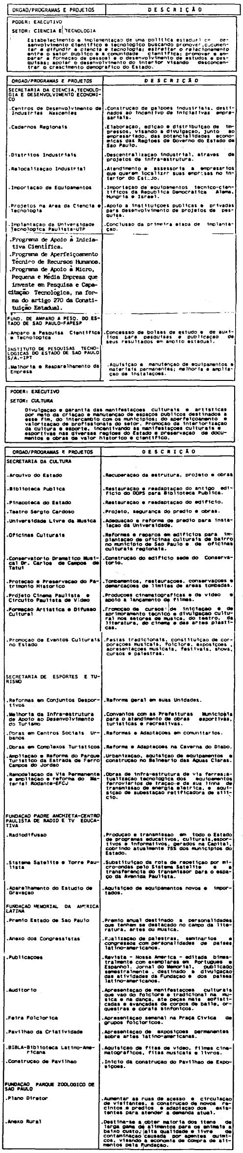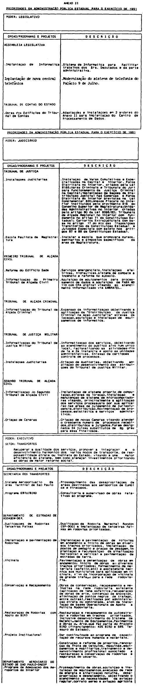 Artigo 4º - A proposta orçamentária do Estado para 1991 conterá: