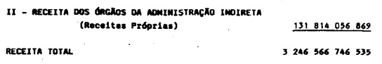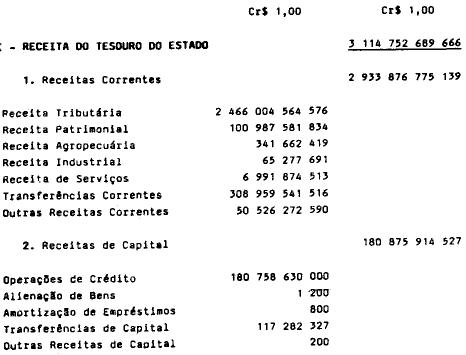 Artigo 2º - A Receita total é orçada e a Despesa total fixada em valores iguais a Cr$ 3.246.566.746.535,00 (três trilhões, duzentos e quarenta e seis bilhões, quinhentos e sessenta e seis milhões, setecentos e quarenta e seis mil, quinhentos e trinta e cinco cruzeiros).
