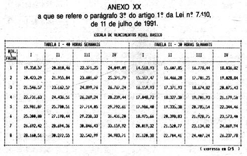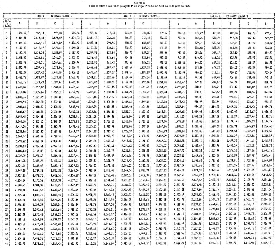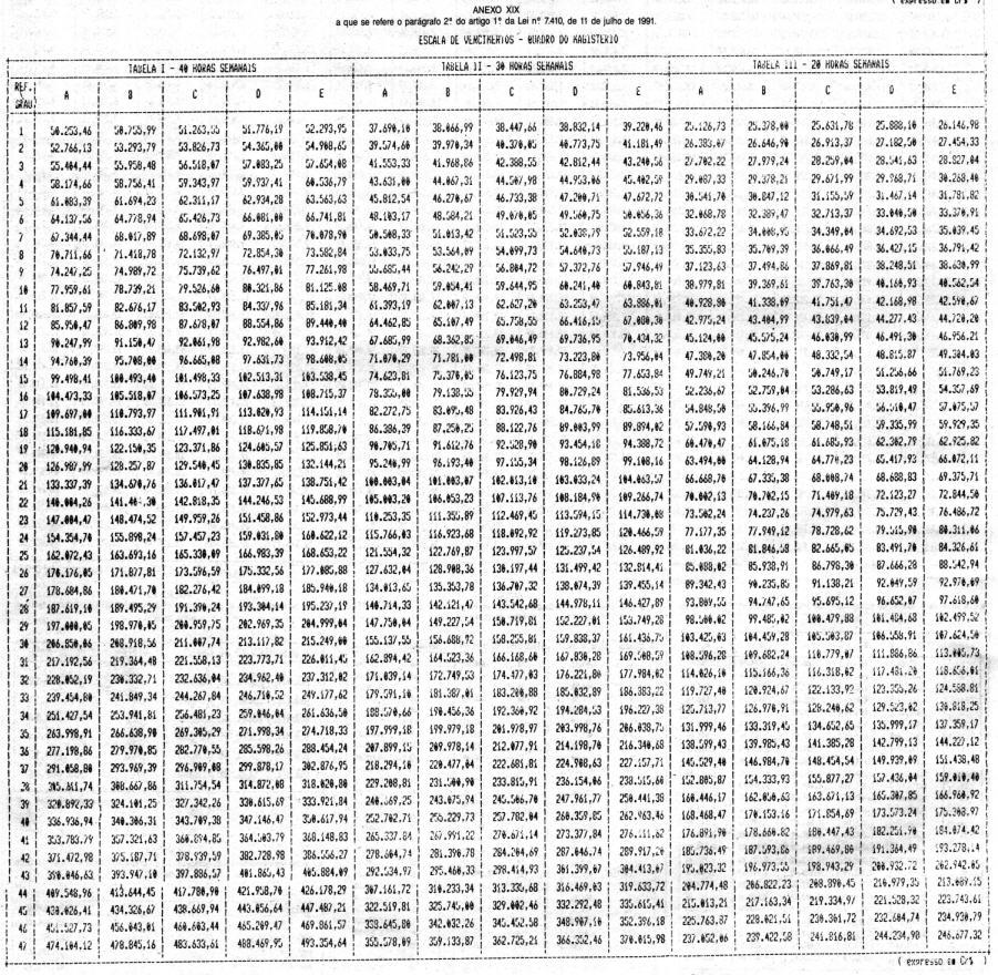 III - Cr$ 12.650,44 (doze mil, seiscentos e cinquenta cruzeiros e quarenta e quatro centavos), quando em jornada de 20 (vinte) horas semanais de trabalho.